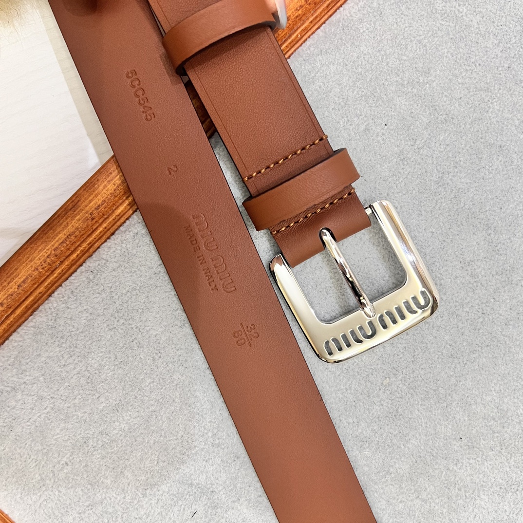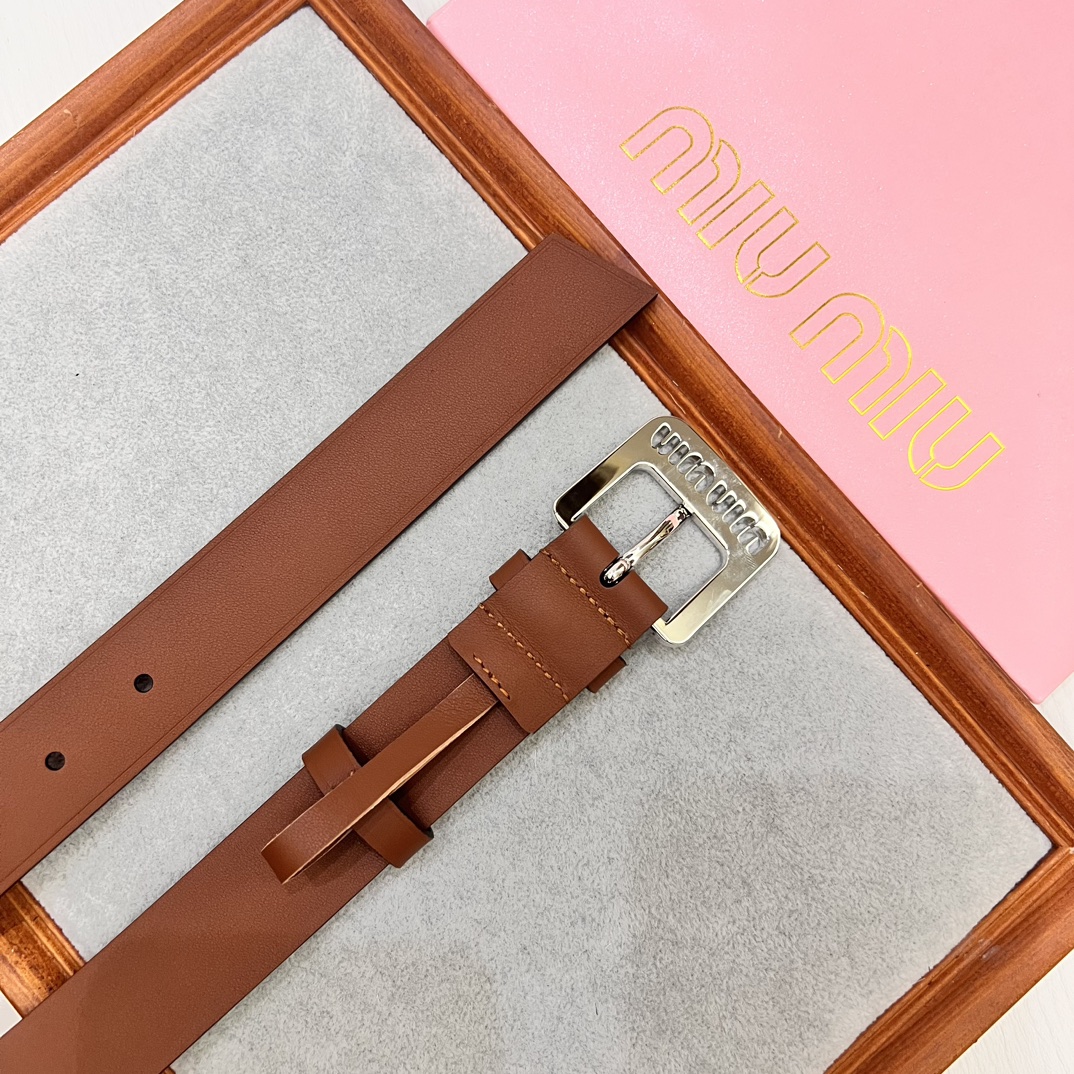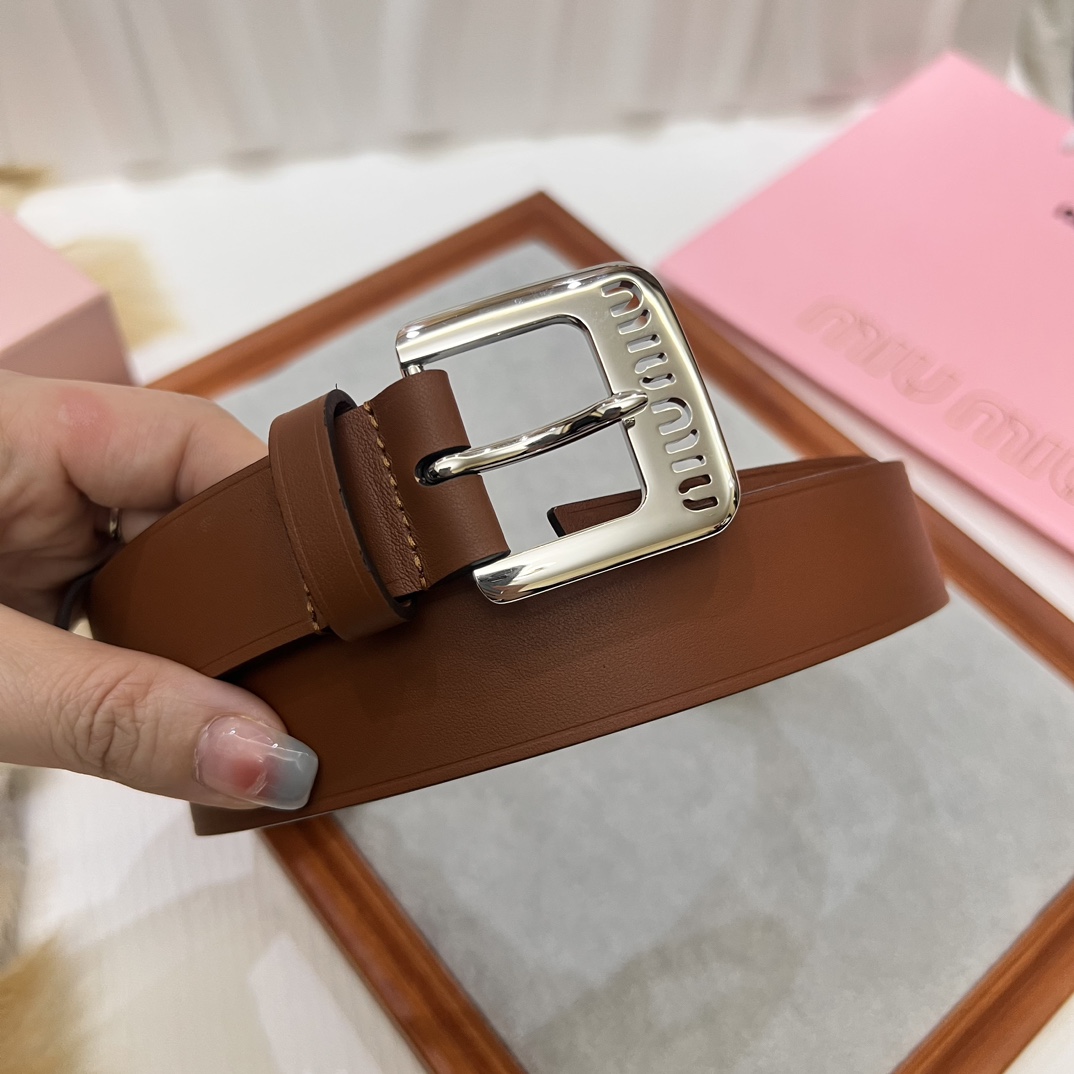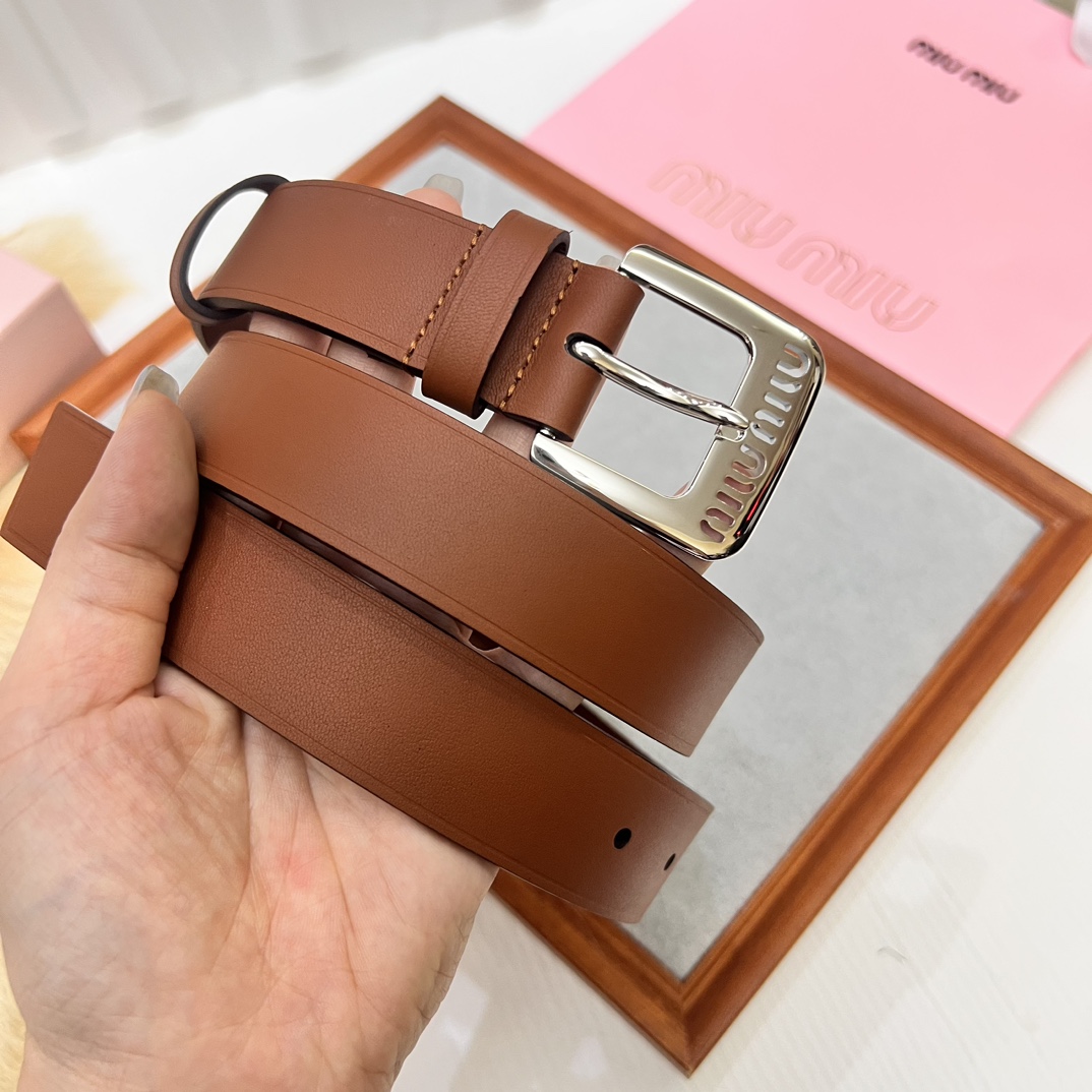 Upgraded original Miu Miu 23 metal镂空徽标 leather belt, minimalist style, soft calfskin, metal buckle, 3.0 width.