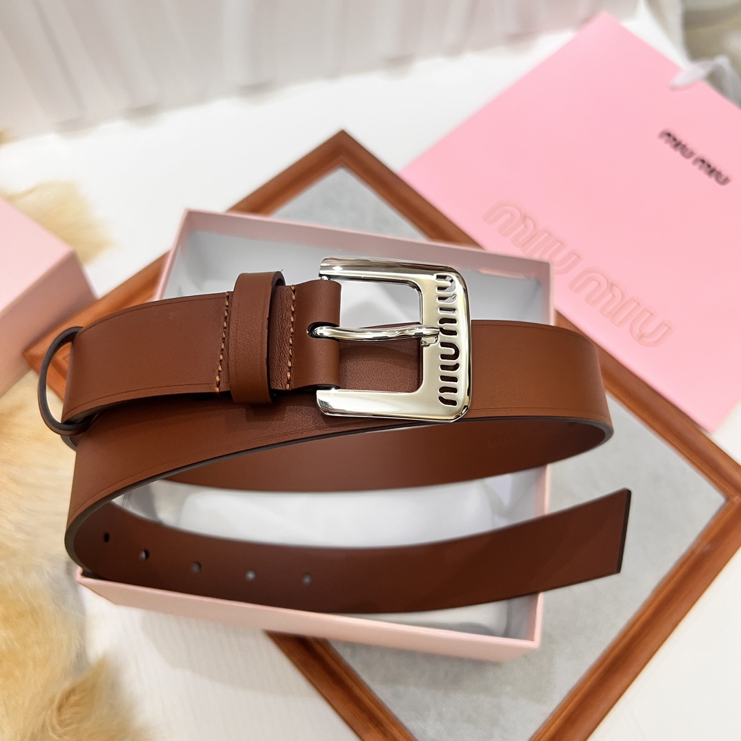 Home • Belt • Upgraded original Miu Miu 23 metal镂空徽标 leather belt, minimalist style, soft calfskin, metal buckle, 3.0 width.