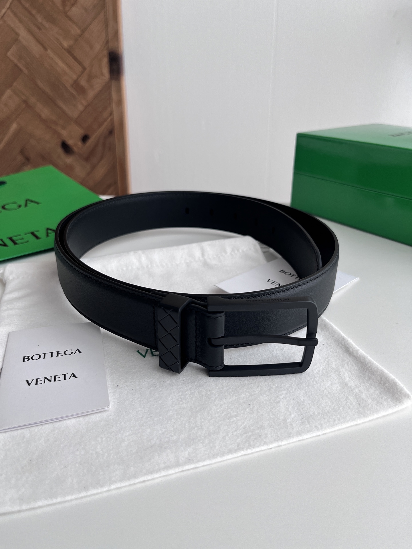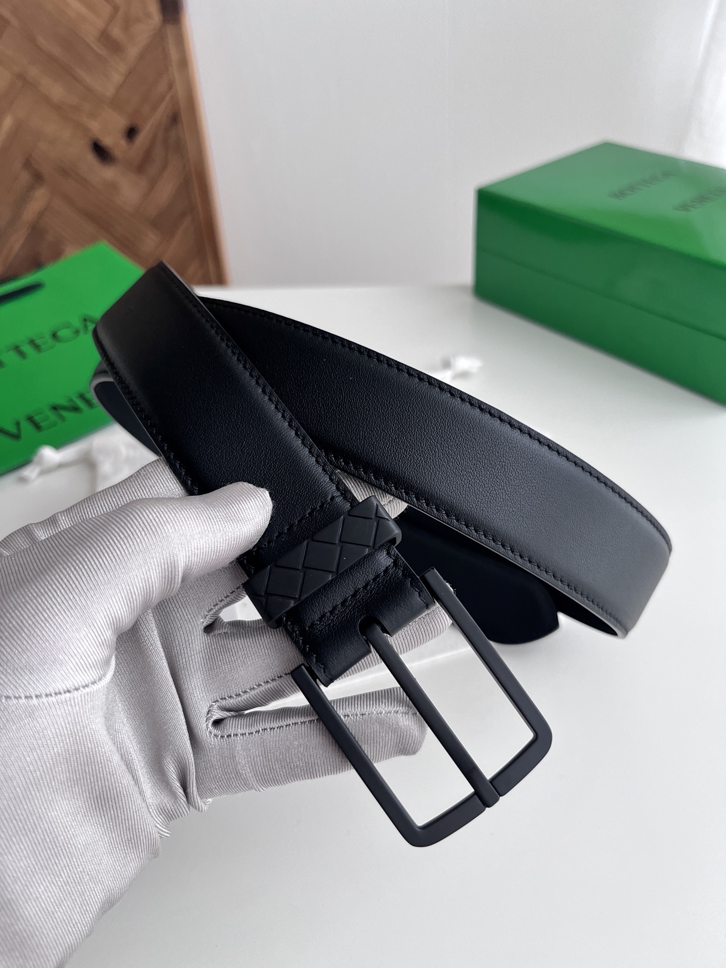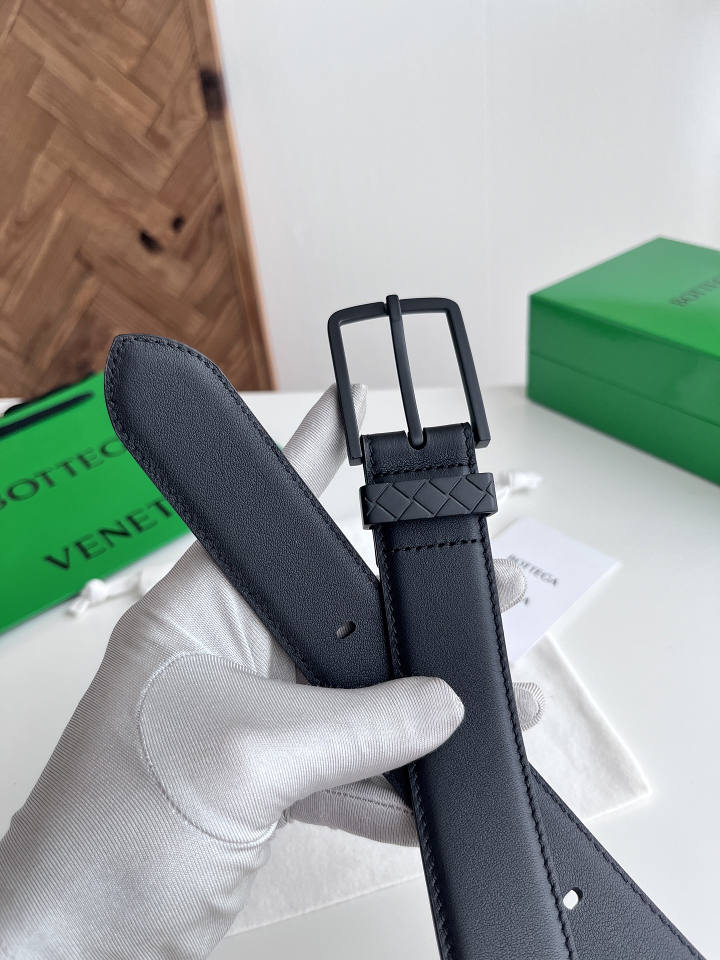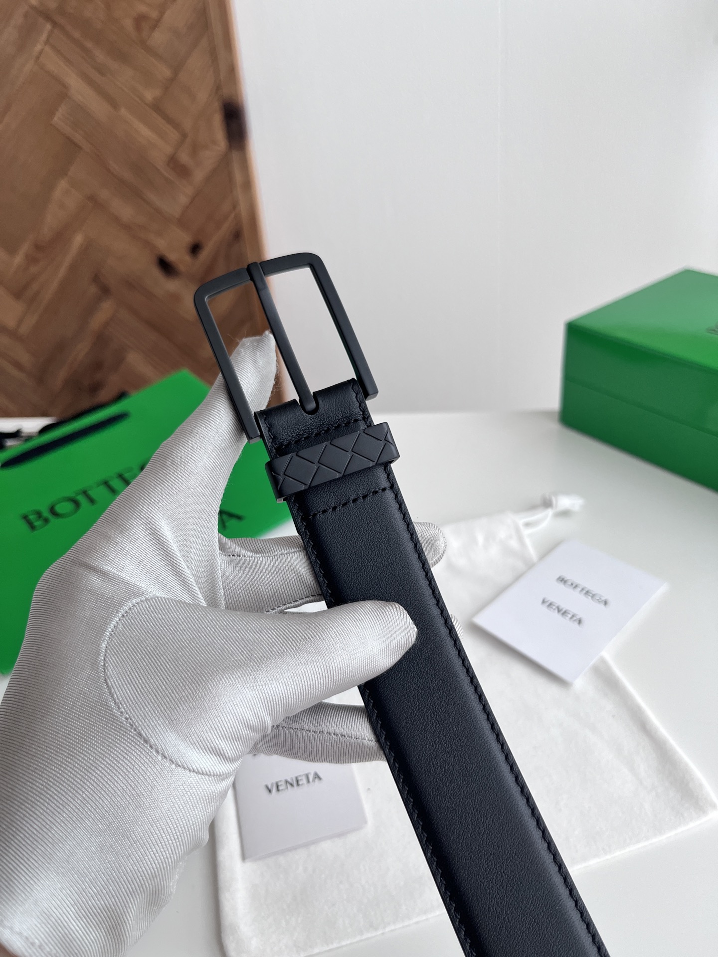 Bv 2025 latest men's belt double-sided Italian plain grain calfskin with slightly retro silver pin buckle side with logo belt steel ring with woven check design width 35MM