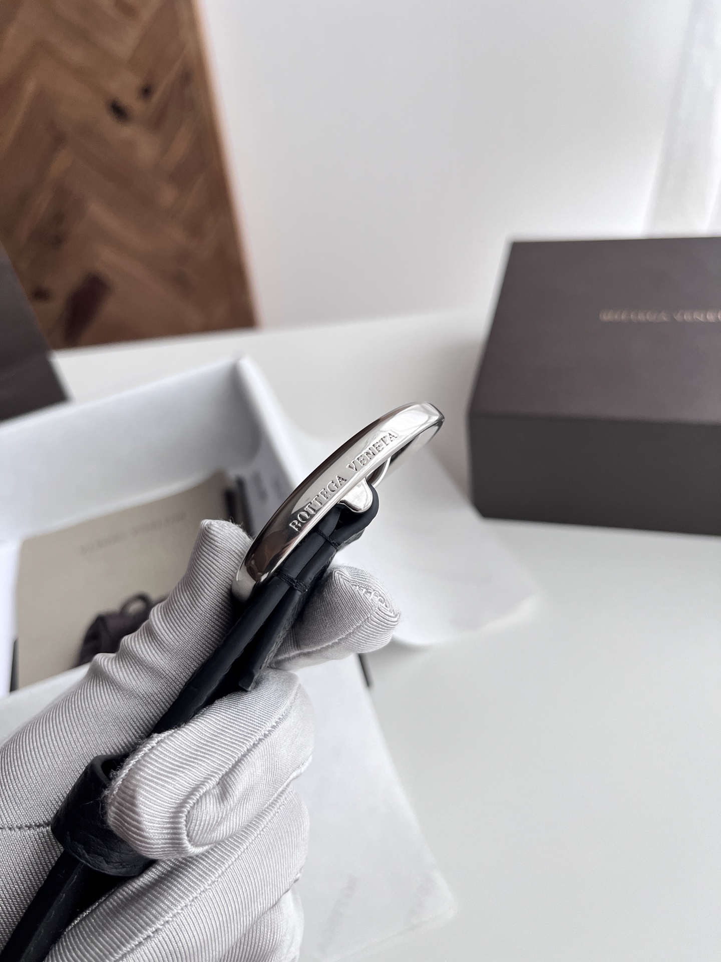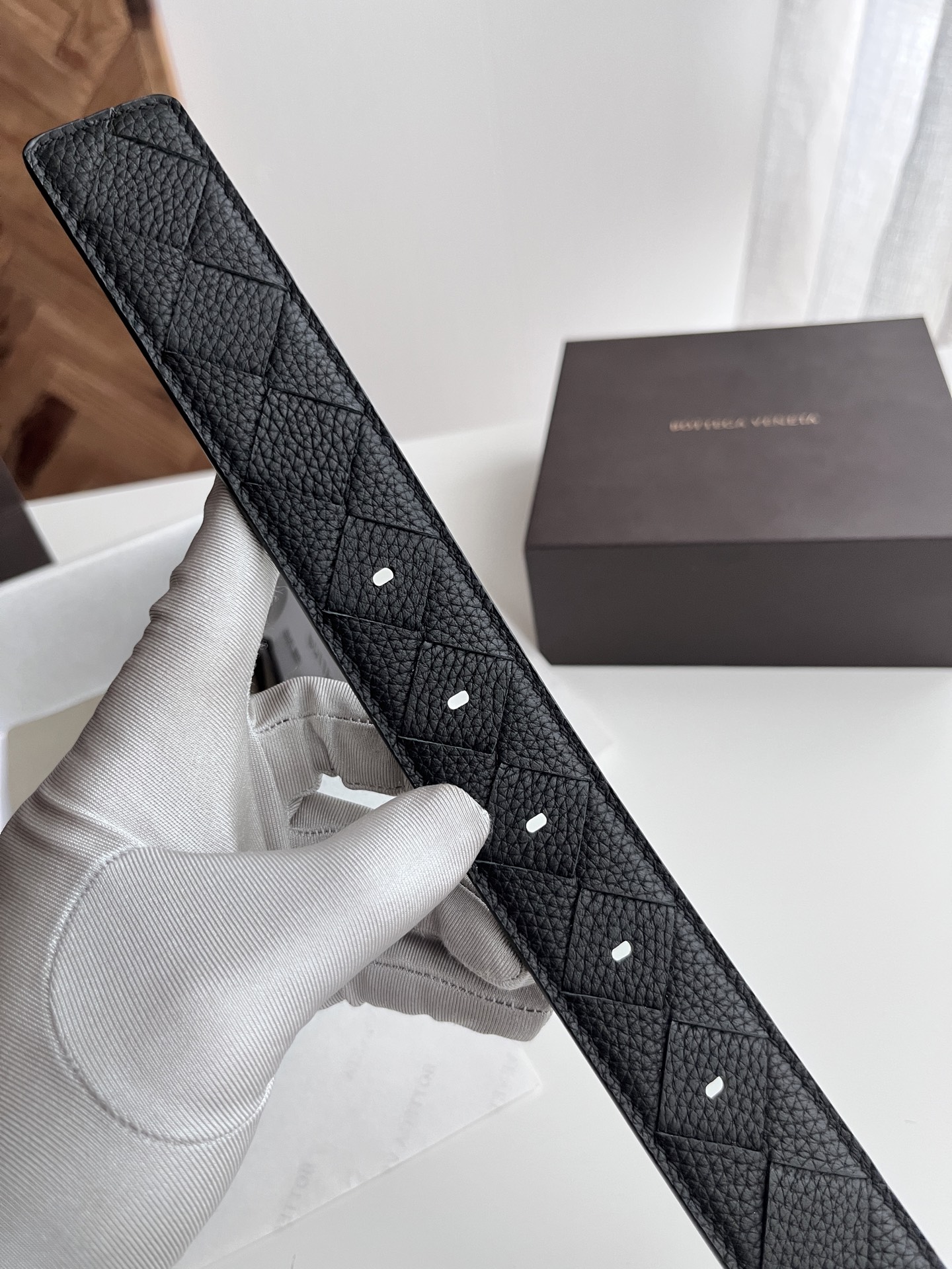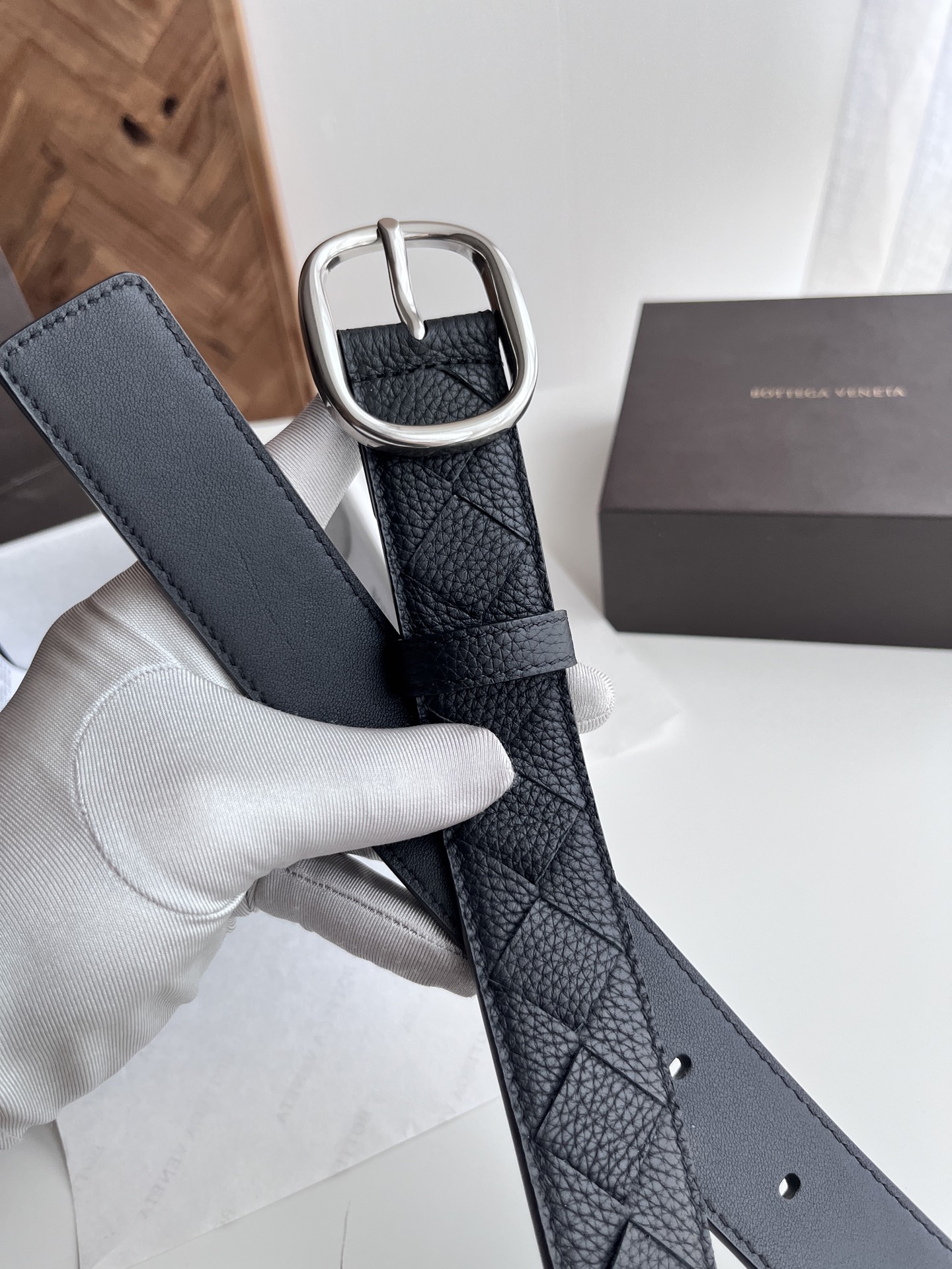 Bv 2025 latest men's woven belt, pure handmade intreccio large grid weaving, Italian lychee grain calfskin paired with an oval slightly retro silver pin buckle, side with logo, movable leather loop, width 35MM, color: black
