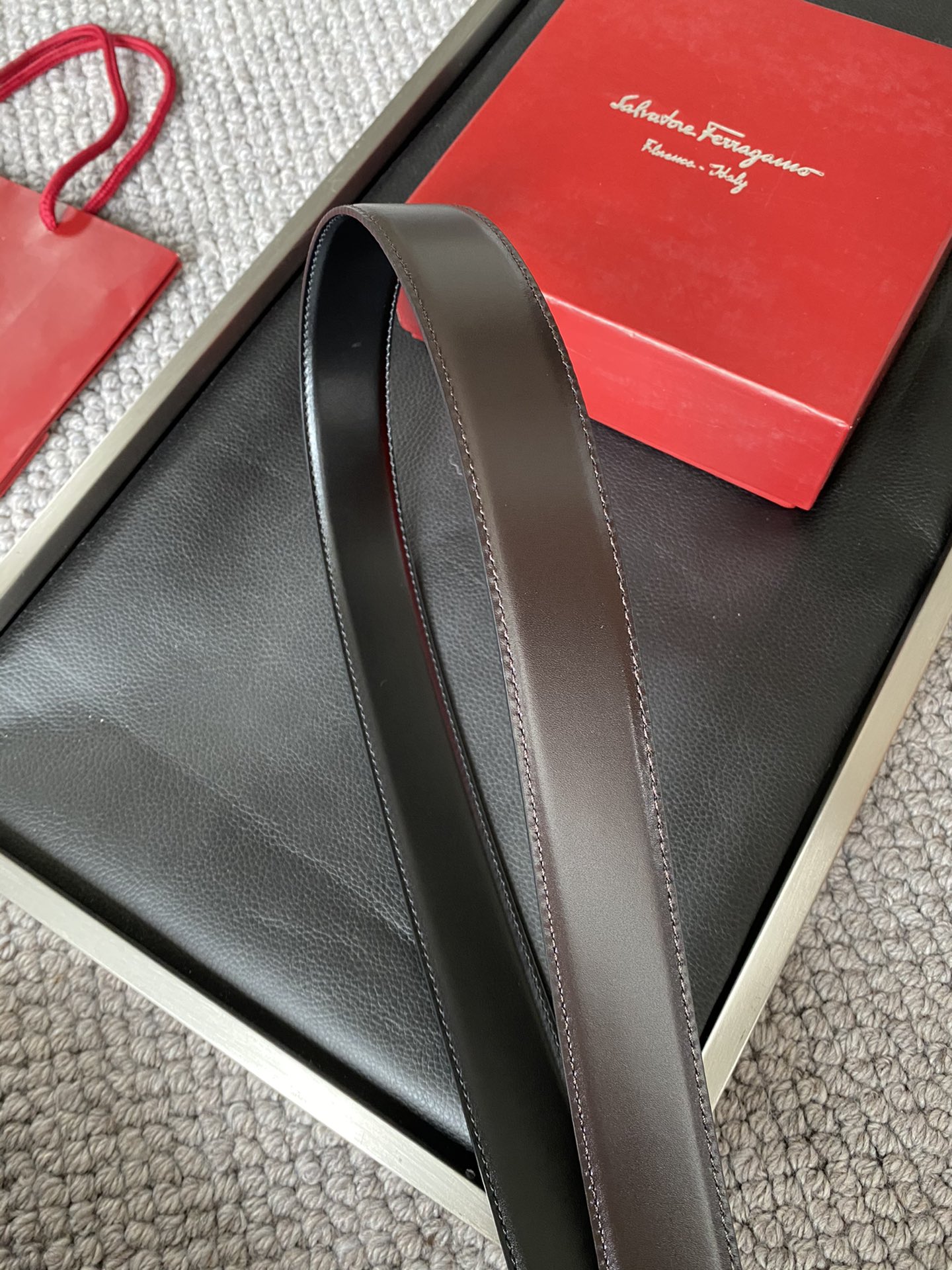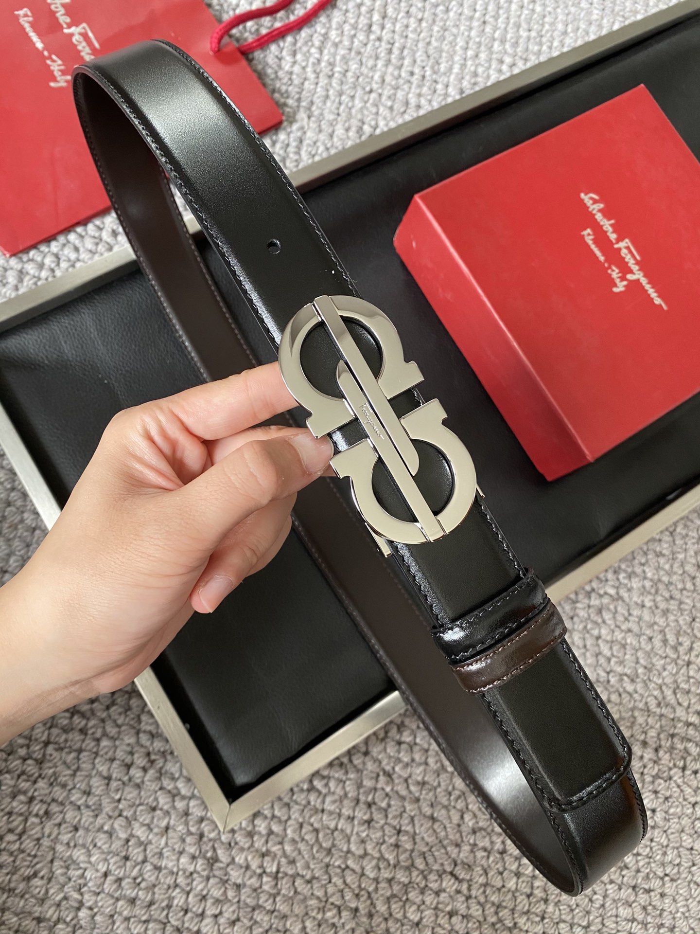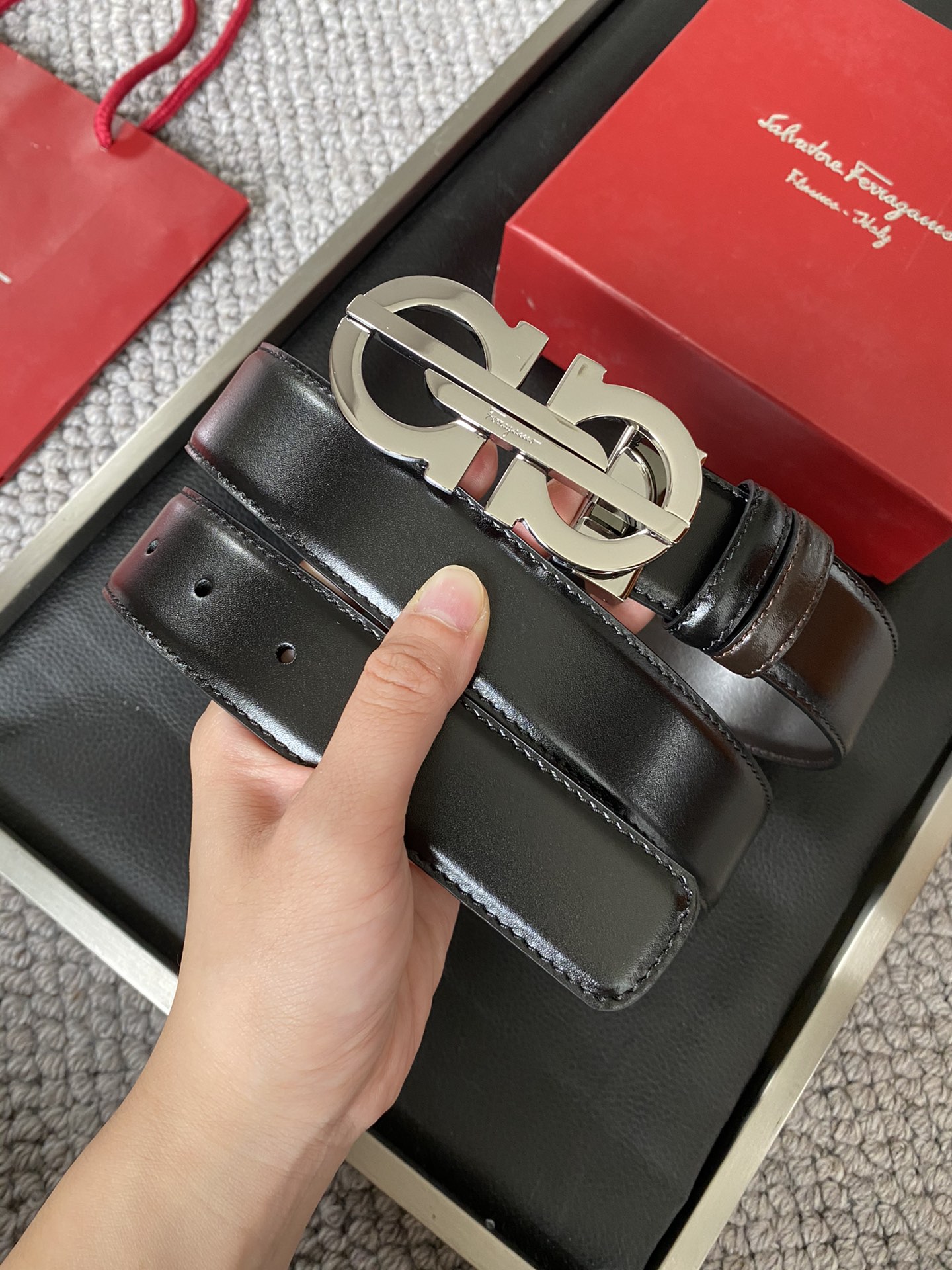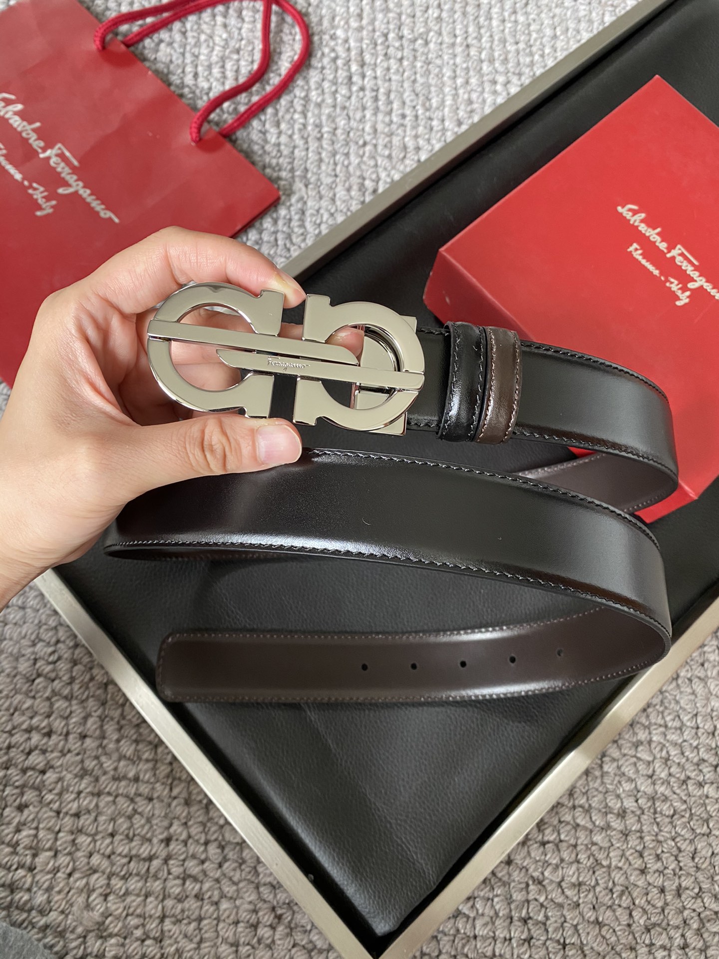 Ferragamo Ferragamo (Italy) men's belt automatic belt 3.5cm width imported calfskin, showing luxury! Classic design, top quality top
