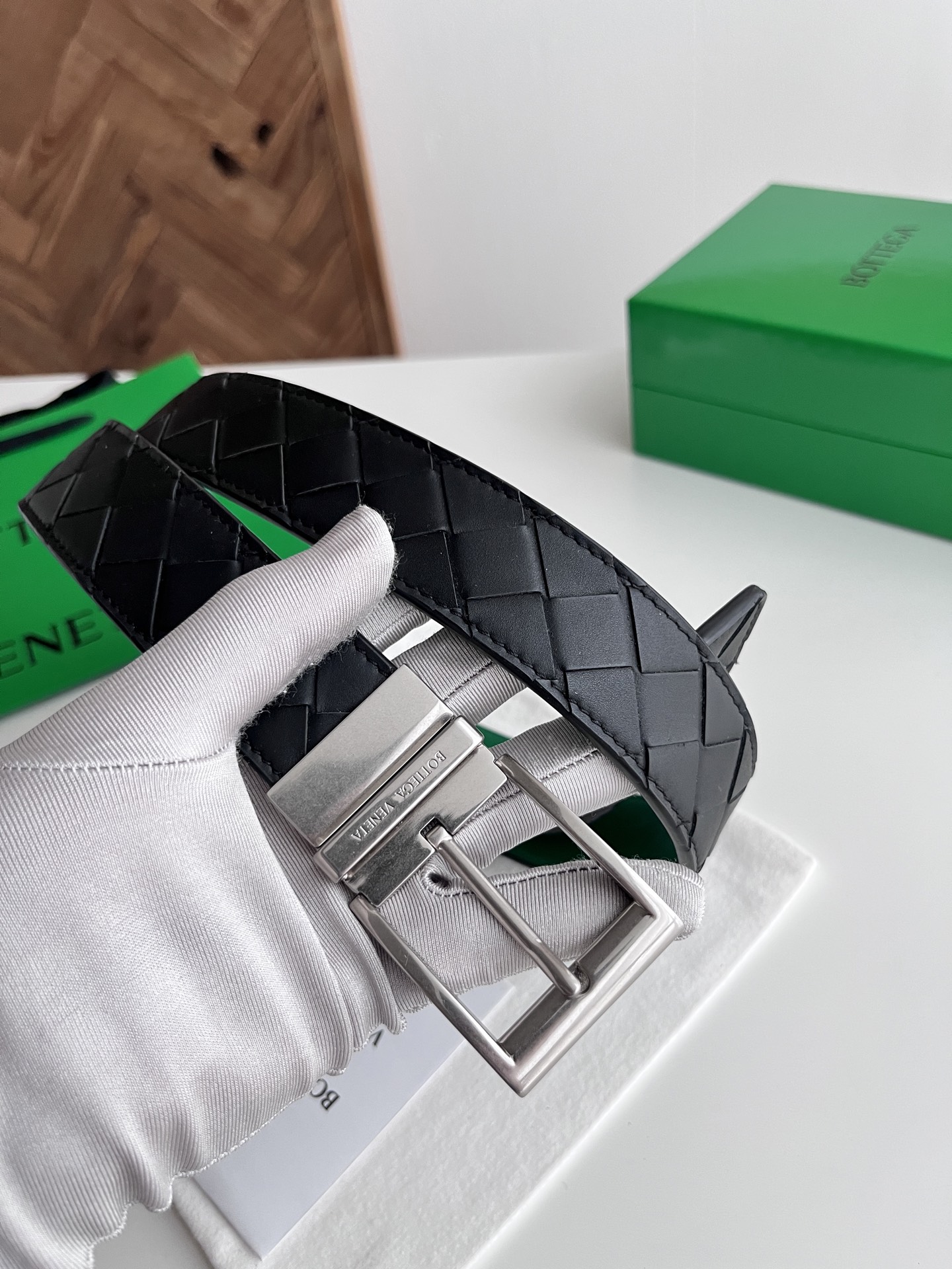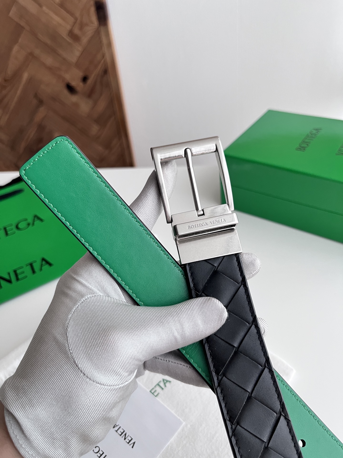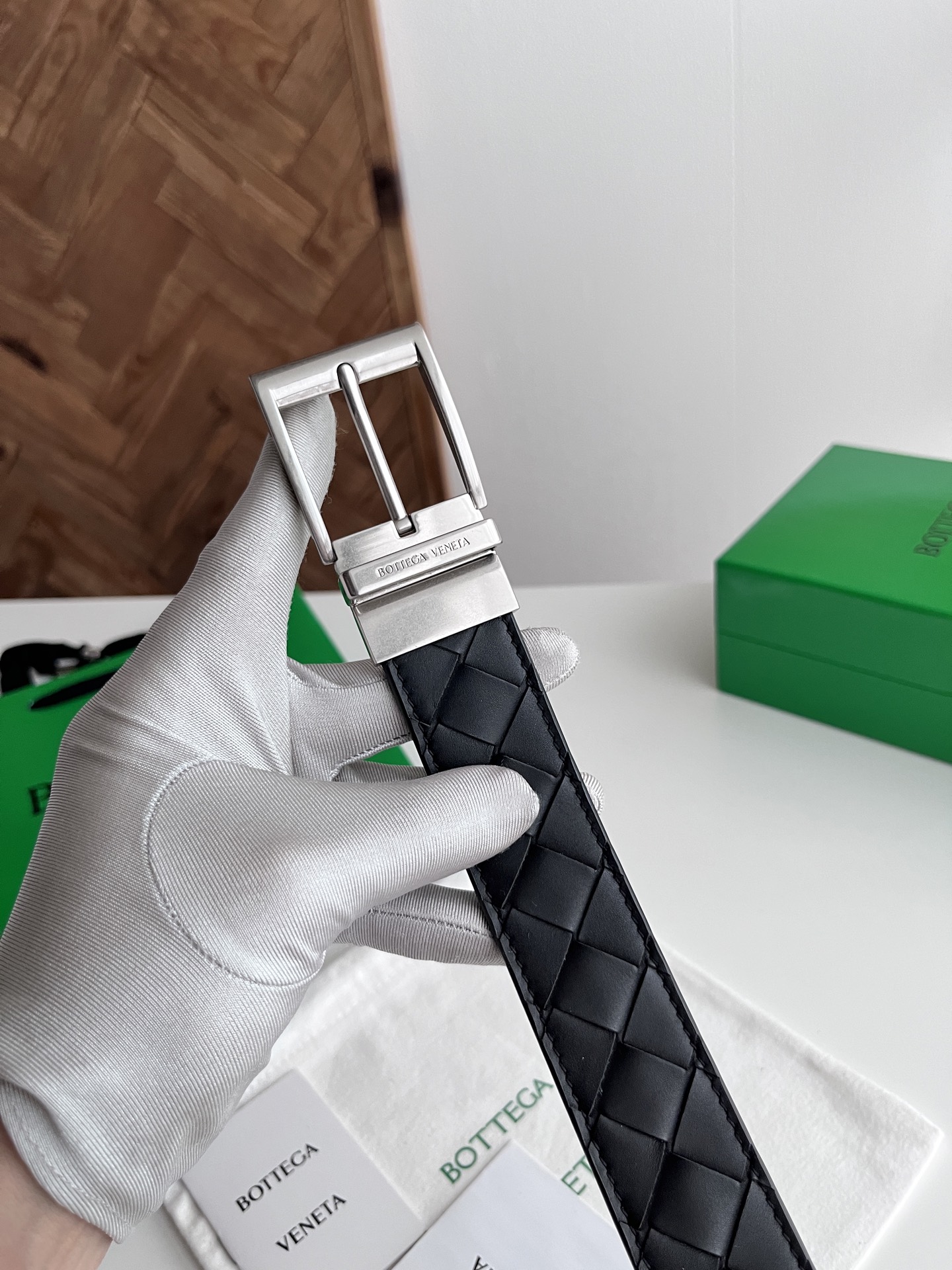 Bv 2025 latest men's woven belt double-sided use pure handmade intreccio large grid weaving double-sided Italian calfskin with slightly retro silver rotating pin buckle front with logo belt width 35MM