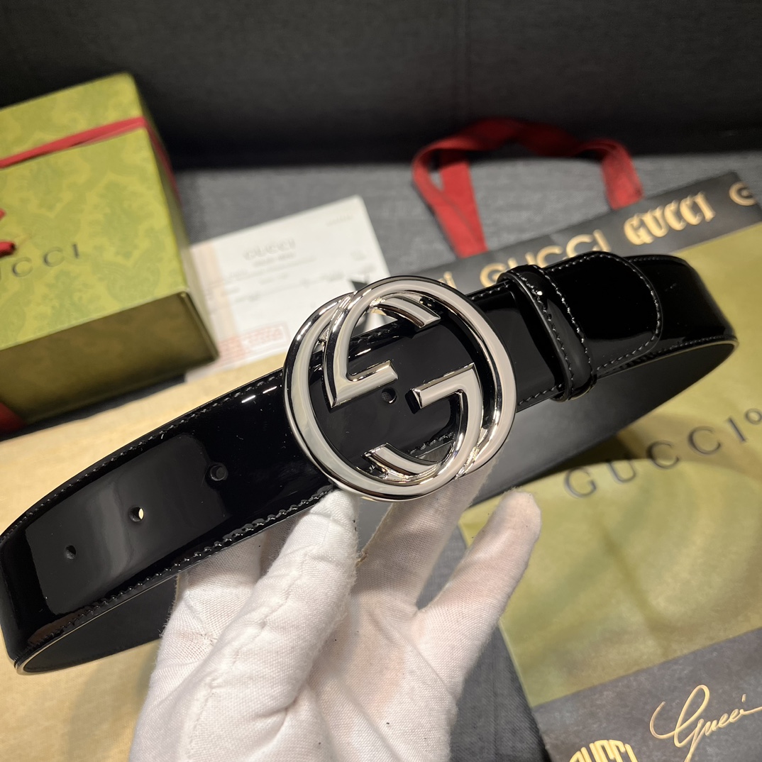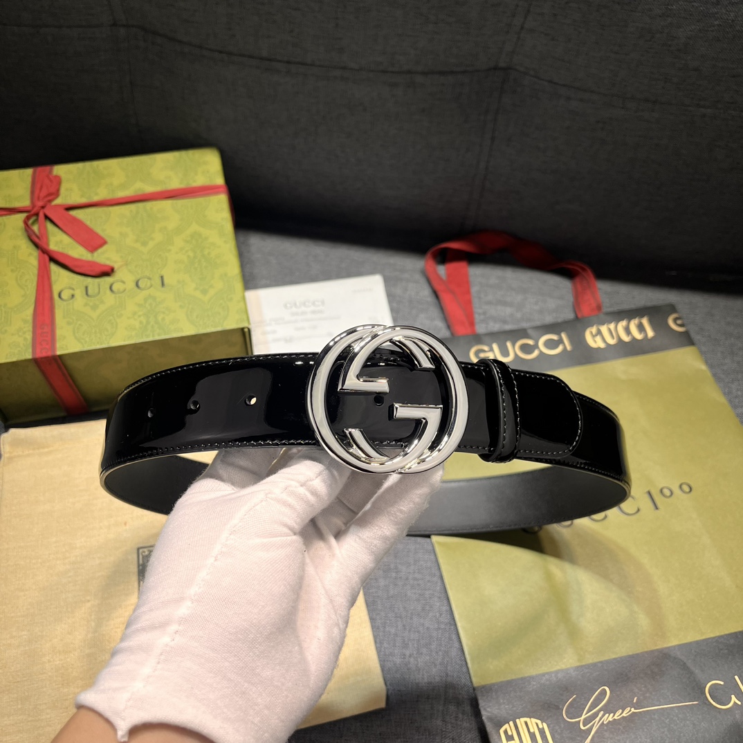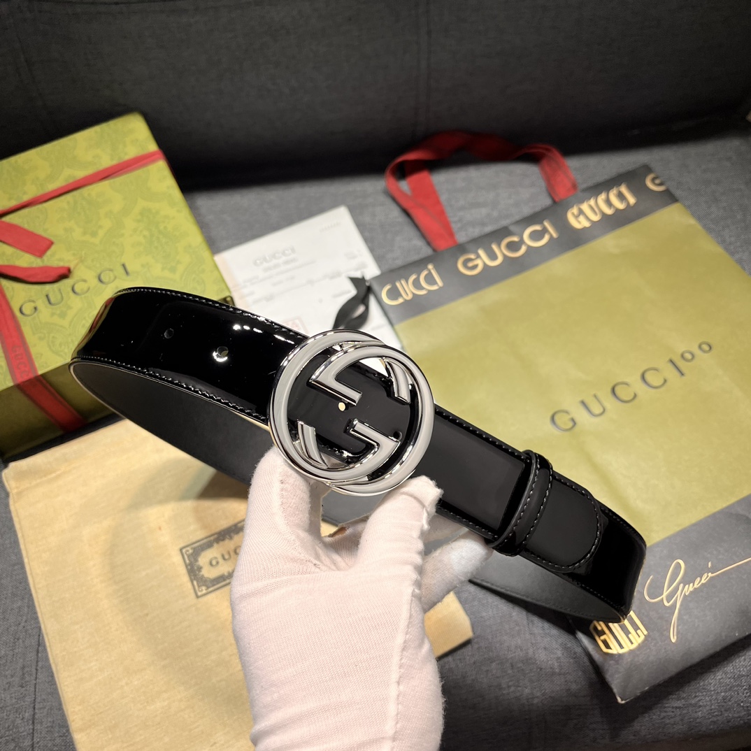 Gucci Width 4.0cm New The new collection combines archival details with modern elements to create eye-catching highlights. It skillfully incorporates the classic interlocking letter motif as an accessory, paying tribute to the brand's founder, Mr. Guccio Gucci. This belt is crafted from top-layer leather and features an intricately designed GG buckle.