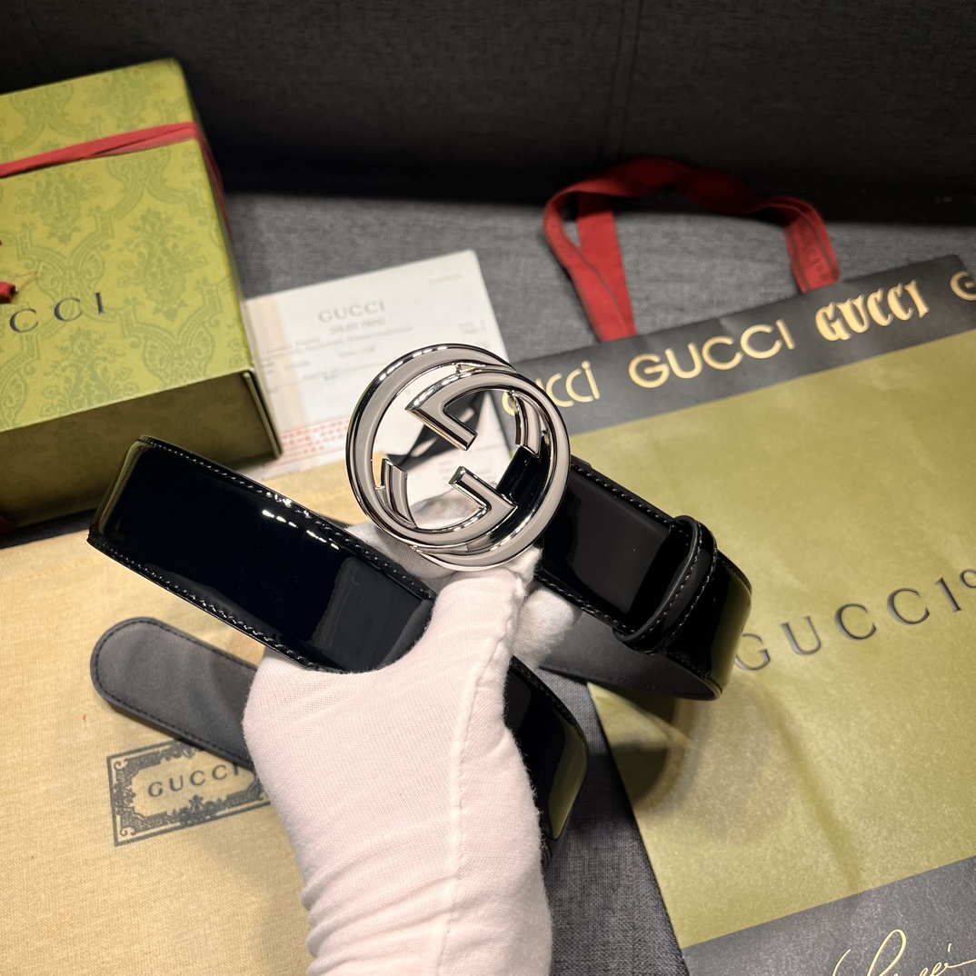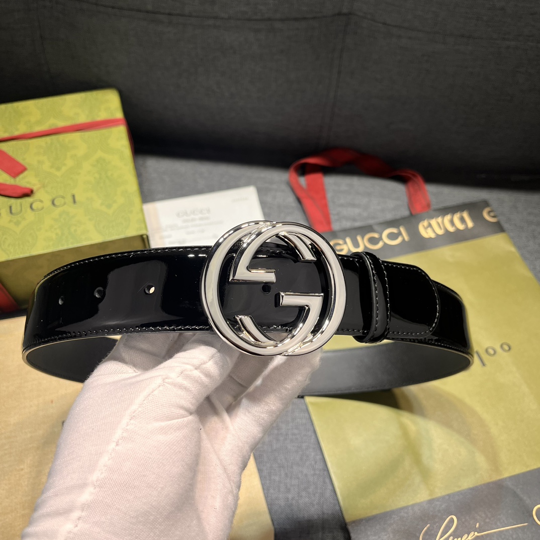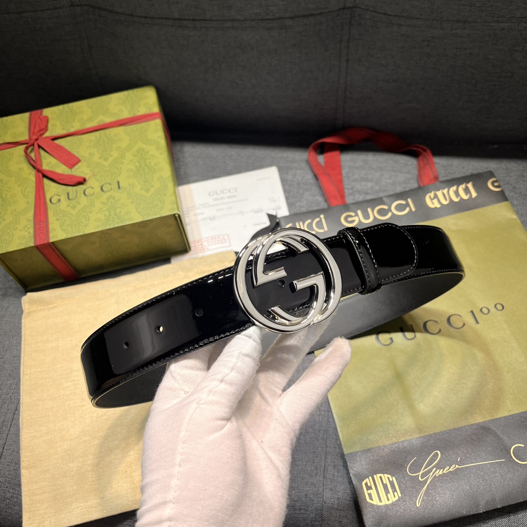Gucci Width 4.0cm New The new collection combines archival details with modern elements to create eye-catching highlights. It skillfully incorporates the classic interlocking letter motif as an accessory, paying tribute to the brand's founder, Mr. Guccio Gucci. This belt is crafted from top-layer leather and features an intricately designed GG buckle.