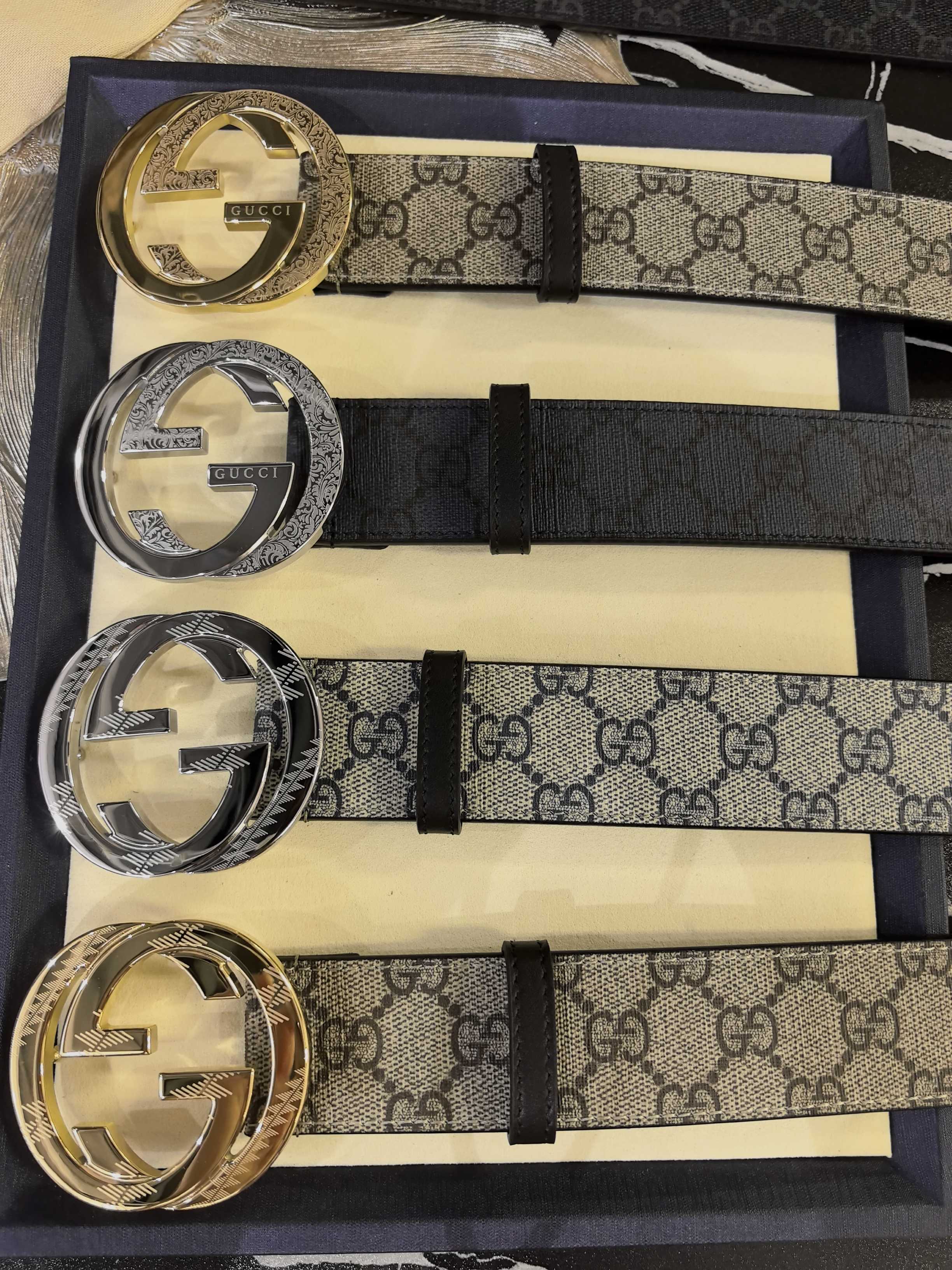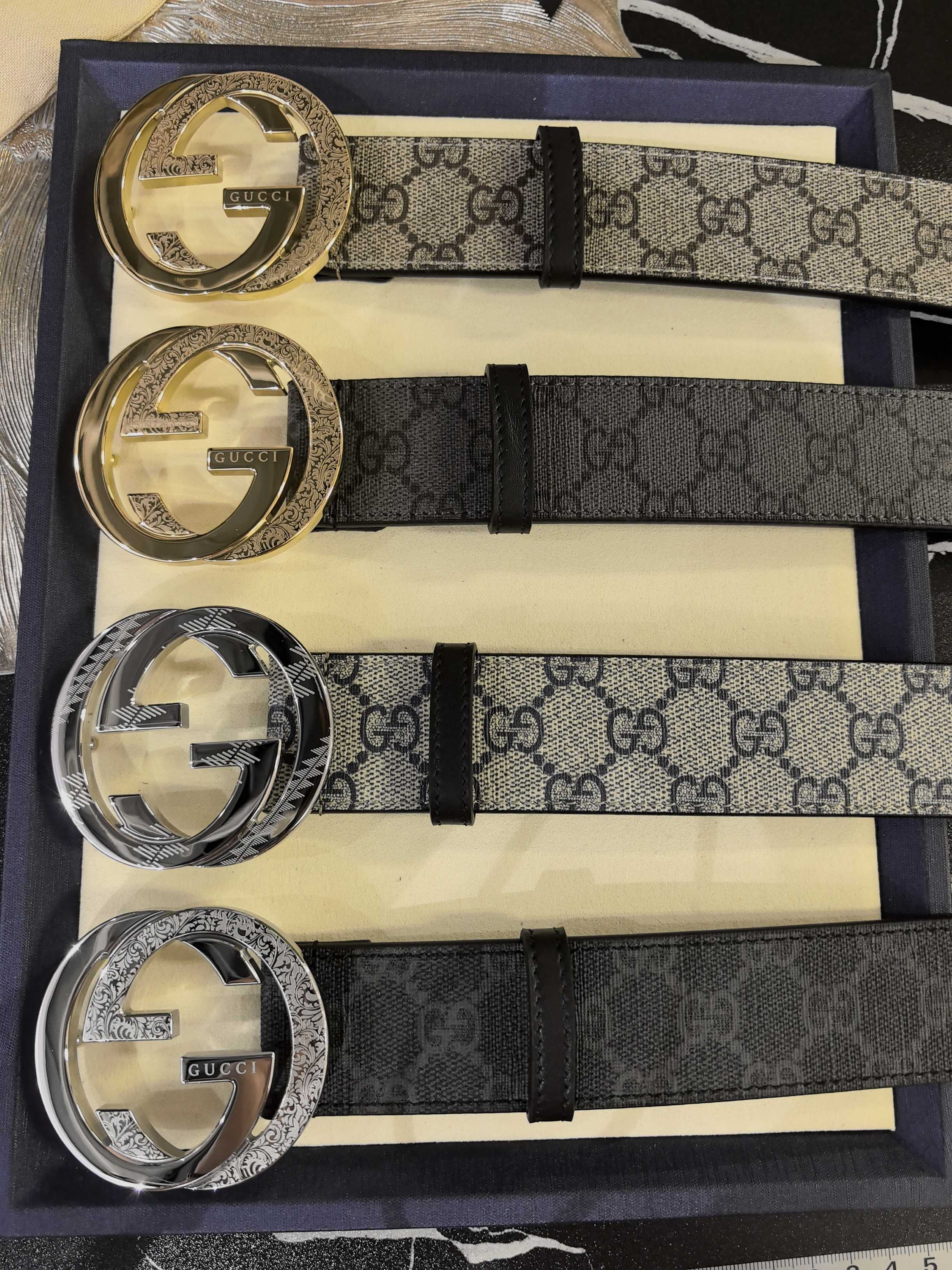 Gucci black leather, 4.0 cm, French materials, top quality.