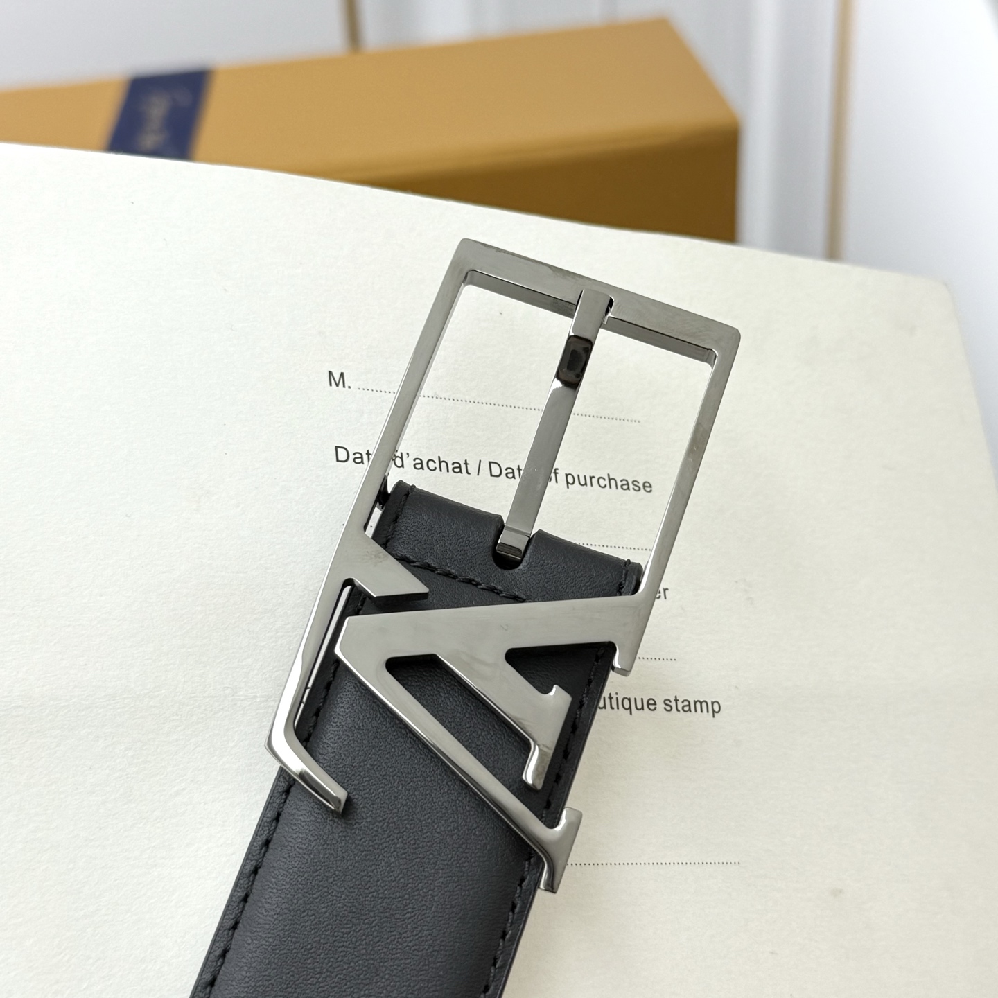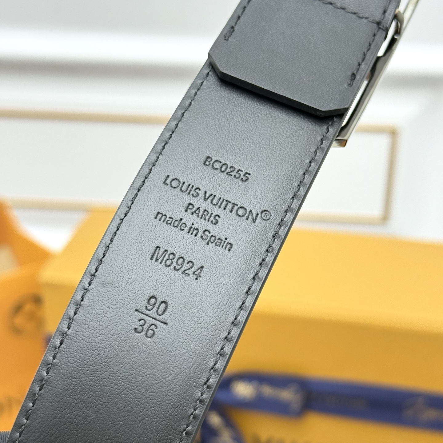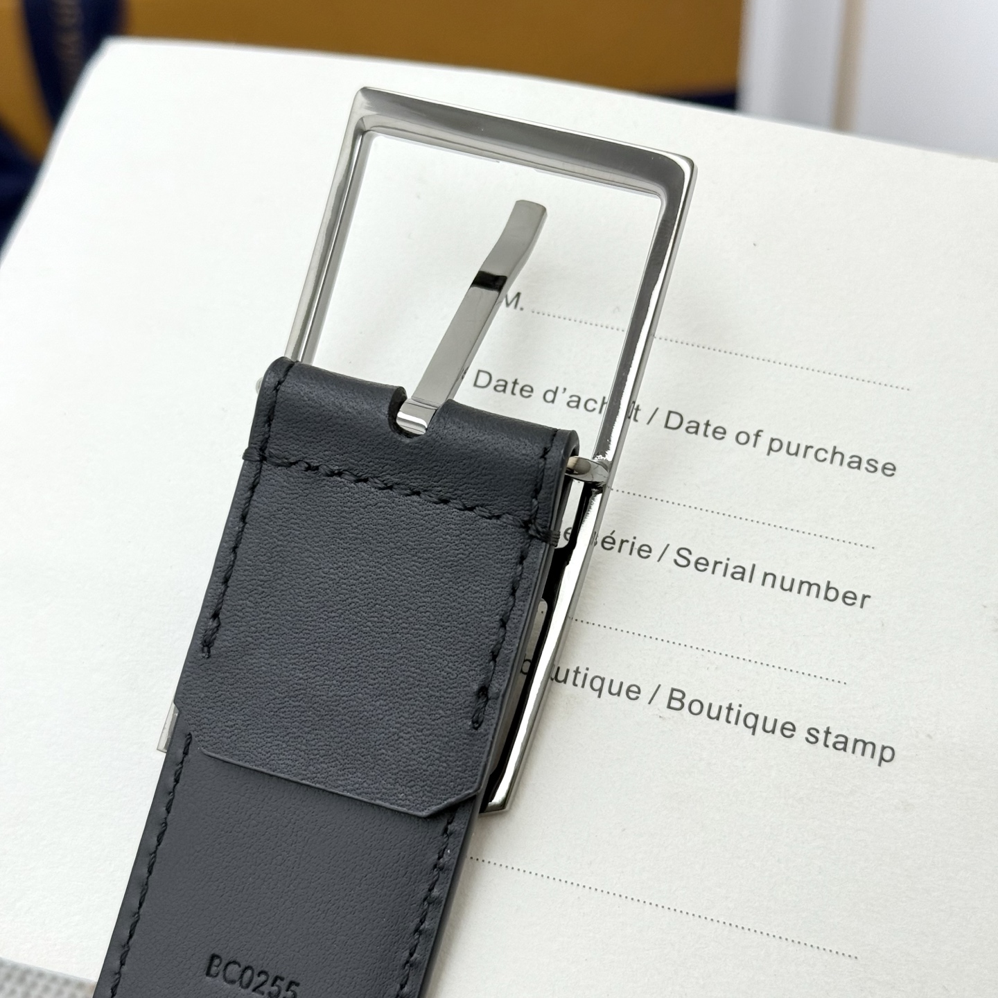 M8924 Heritage Italian original factory leather material. The belt is made from grained and smooth leather, showcasing an elegant style with a brushed metal curved buckle. An LV decorative pin adorns the end, making it suitable for pairing with formal attire. Width: 3.5cm