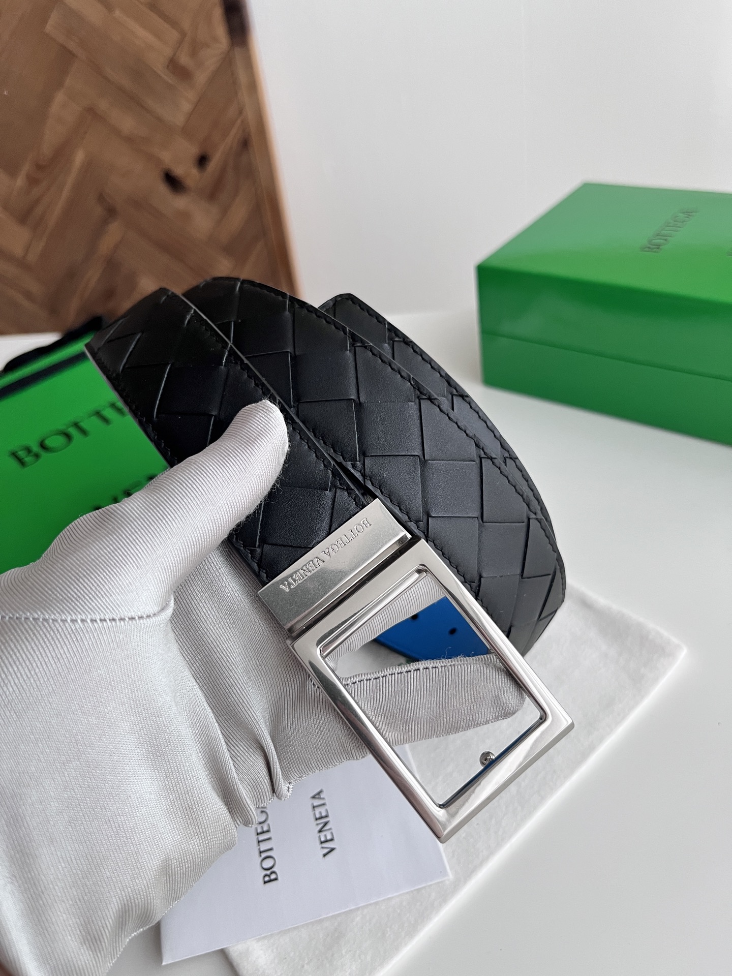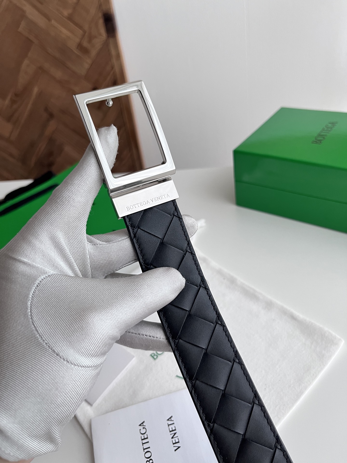 Bv 2025 latest men's woven belt double-sided use pure handmade intreccio large grid weaving double-sided Italian calfskin paired with slightly retro silver rotating pin buckle front has logo belt width 35MM
