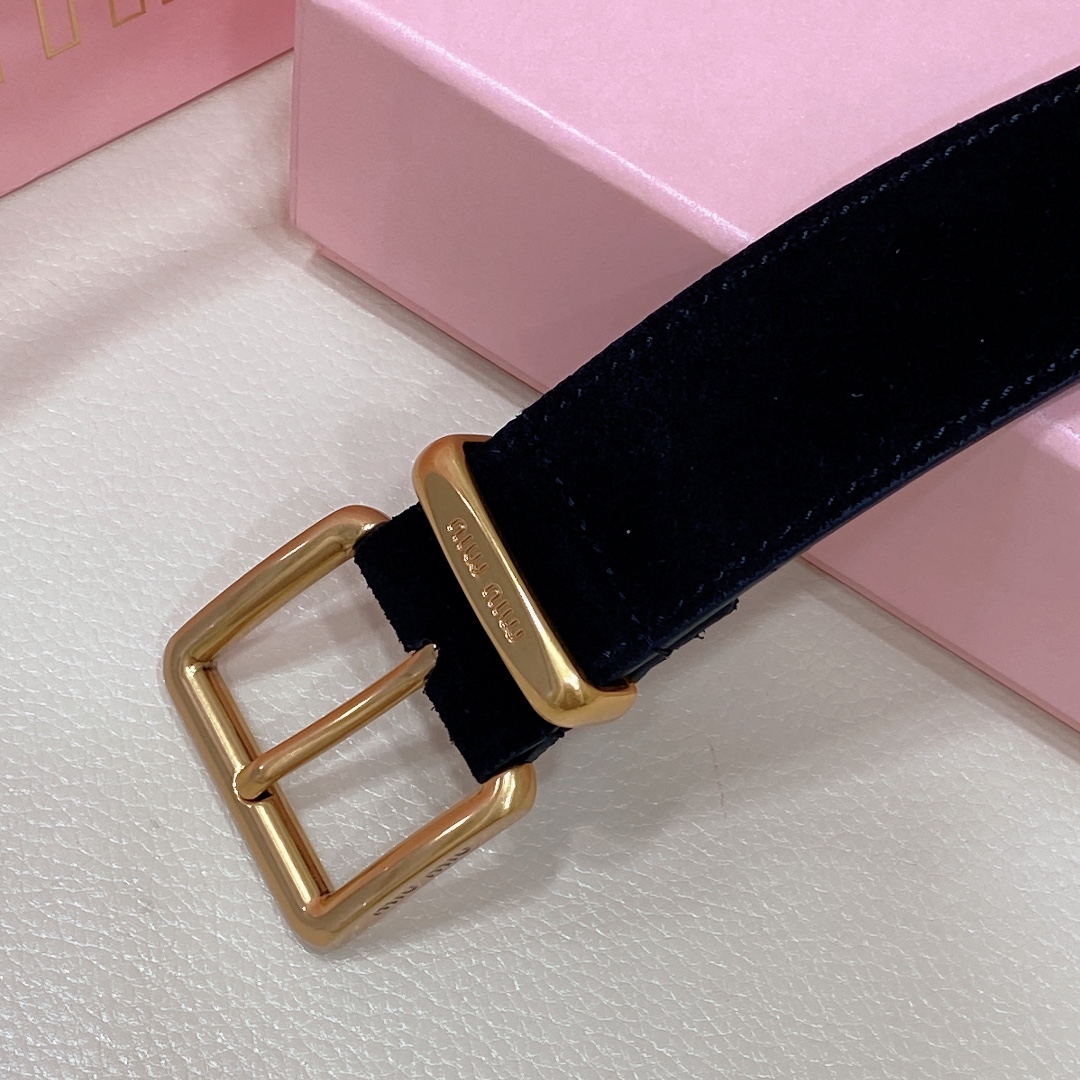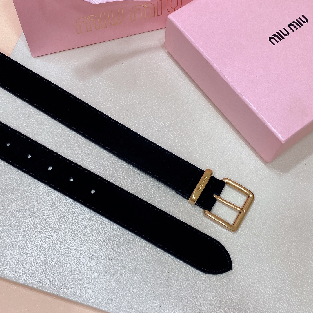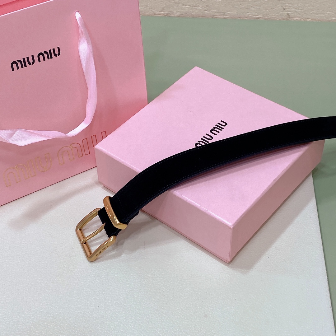 miumiu 25 metal buckle. The belt loop is adorned with a laser-engraved logo. This leather belt features a simple and elegant design, with the belt loop accompanying the Miu Miu logo. Imported cowhide belt 3.5cm