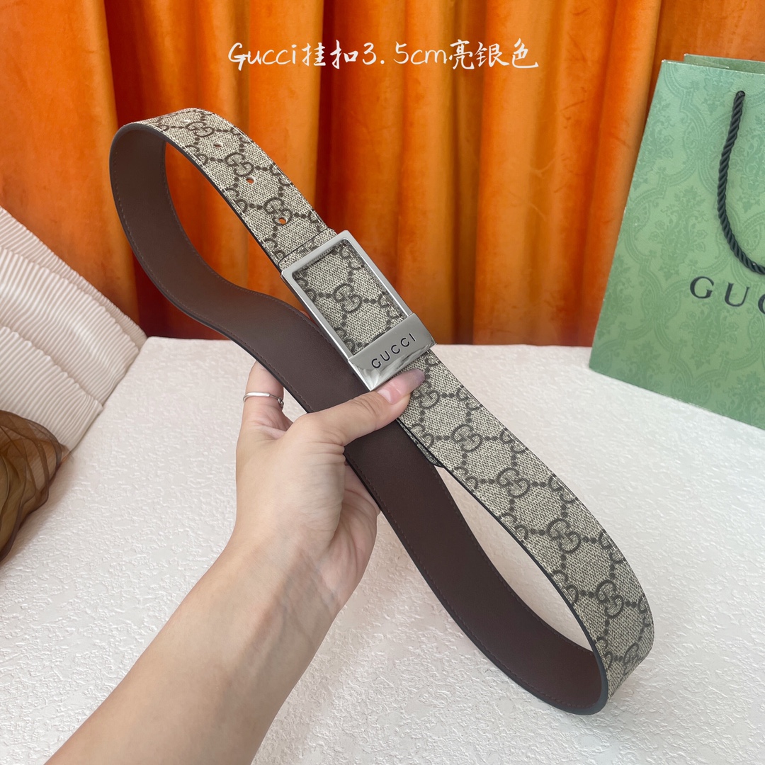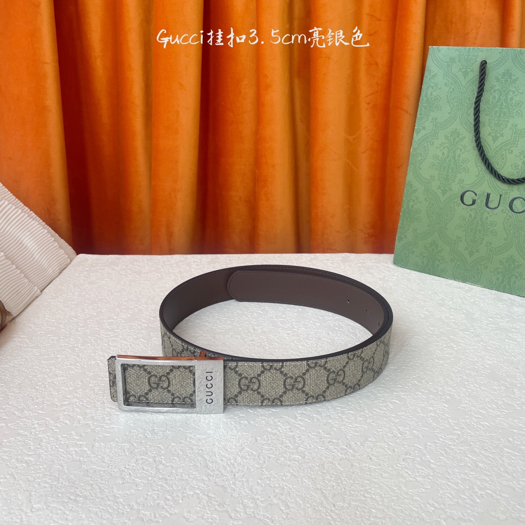 Gucci classic PVC print with original leather base, stylish buckle, 3.5cm wide, timeless and versatile.