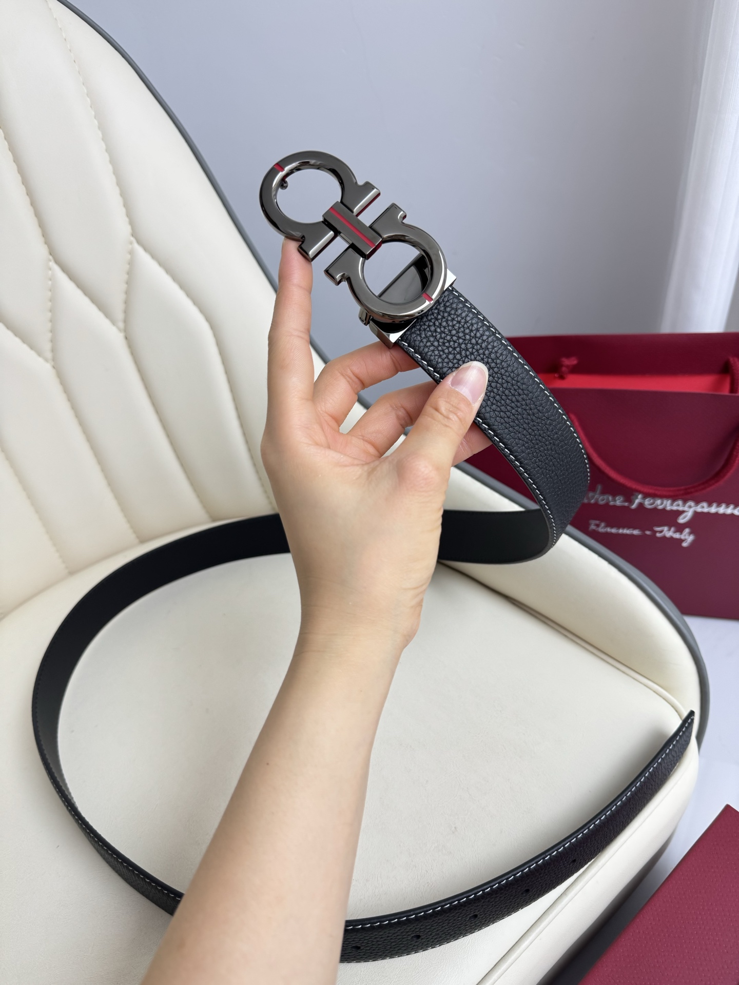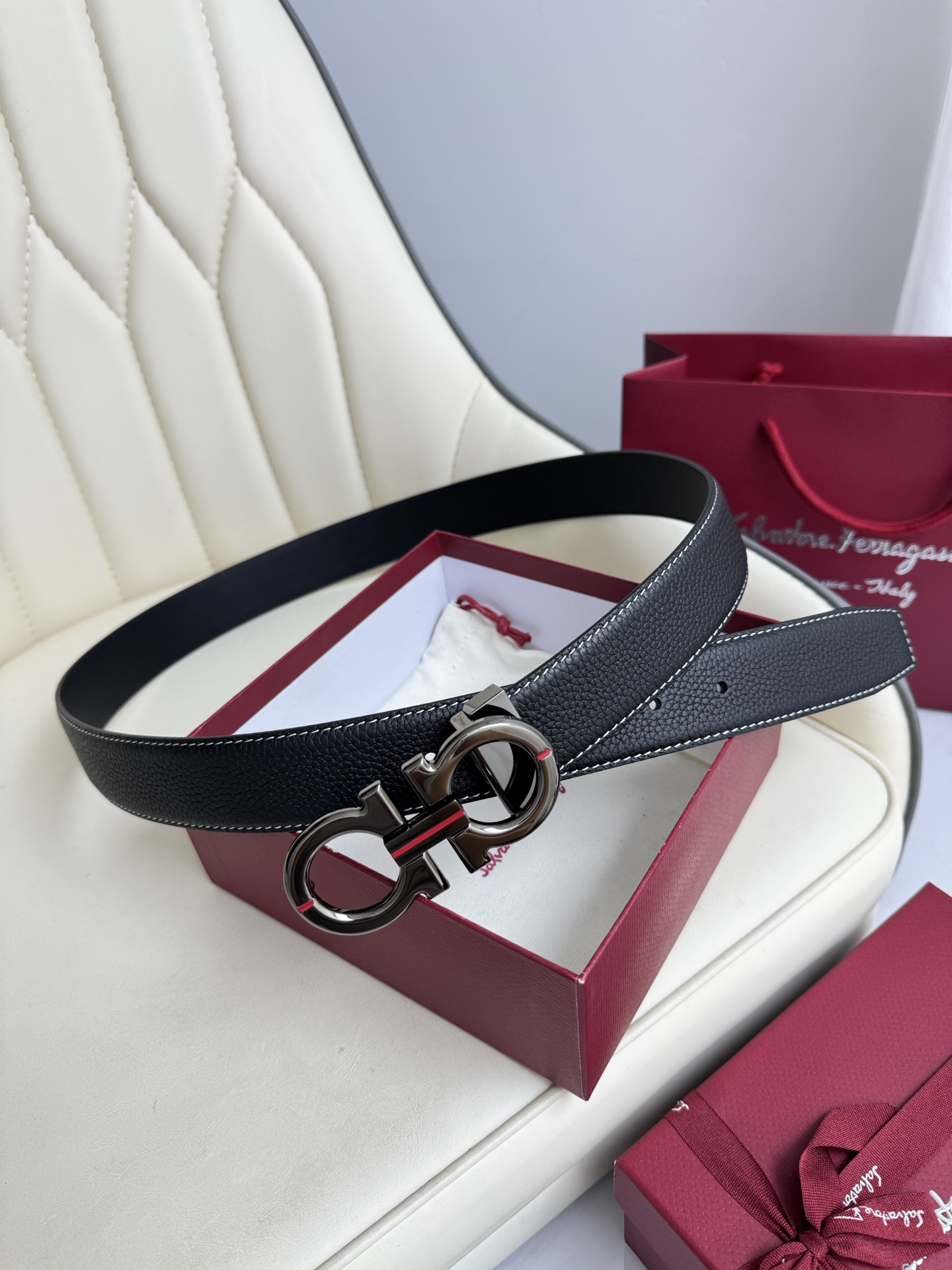 (Ferragamo) Double-sided original imported top grain cowhide, double-sided use, vacuum electroplated copper buckle, exquisite workmanship, boutique quality! Fashionable, casual, versatile, and highly popular! Comes with a full set of boutique packaging, width 3.5