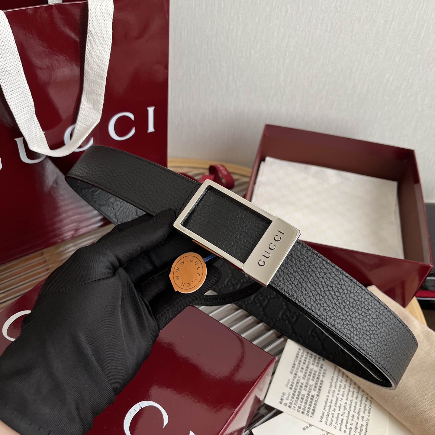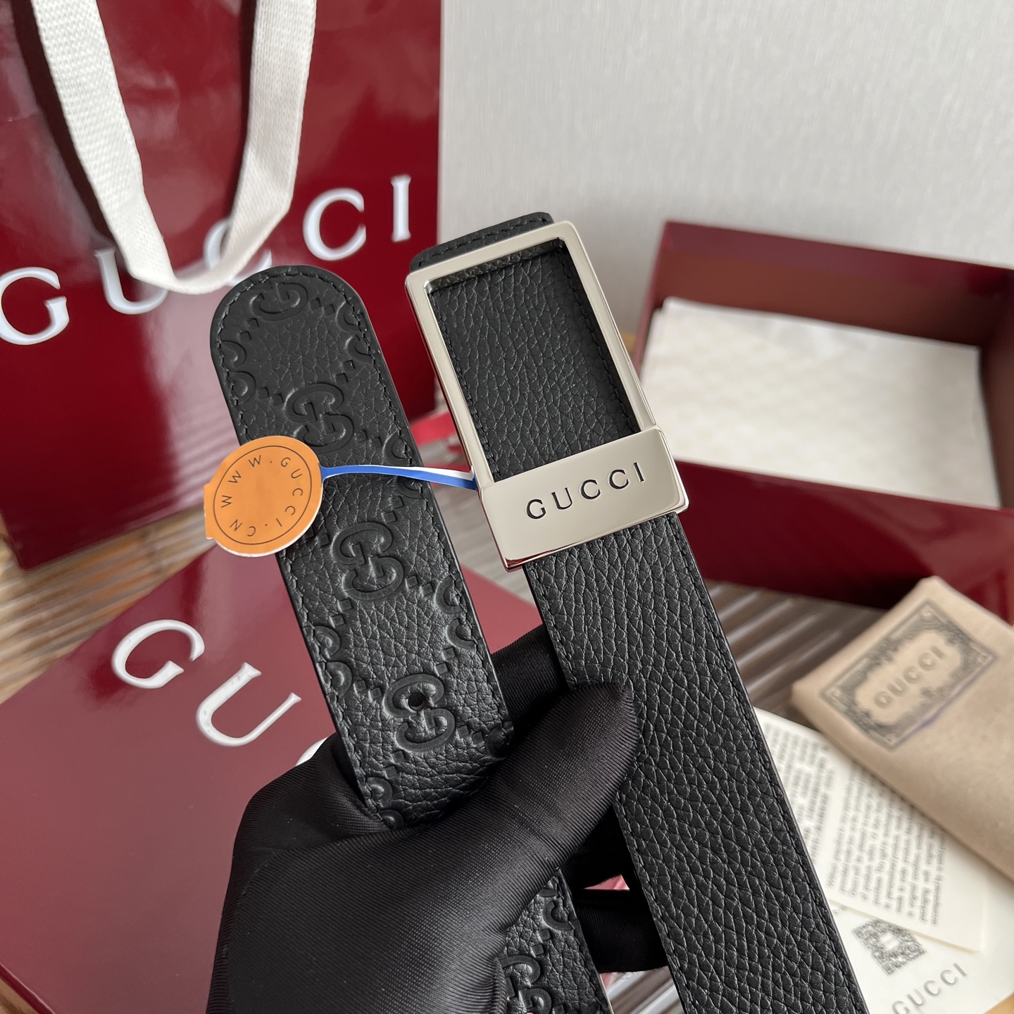 G's top-tier original single original version reissue production width 3.5 integrates new ideas into the classics. The strap is made of imported lychee material and decorated with a double G logo. The original factory lychee pattern cowhide base is paired with a square hollowed-out letter buckle. Counter version counter.