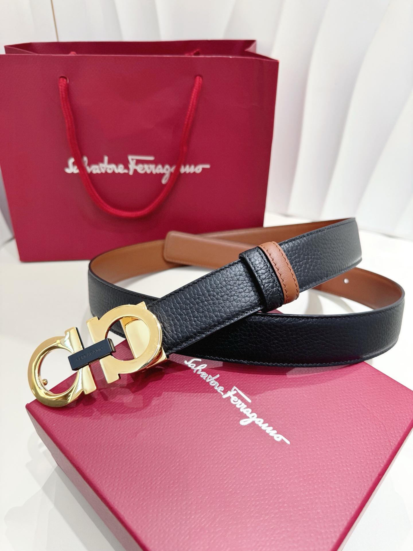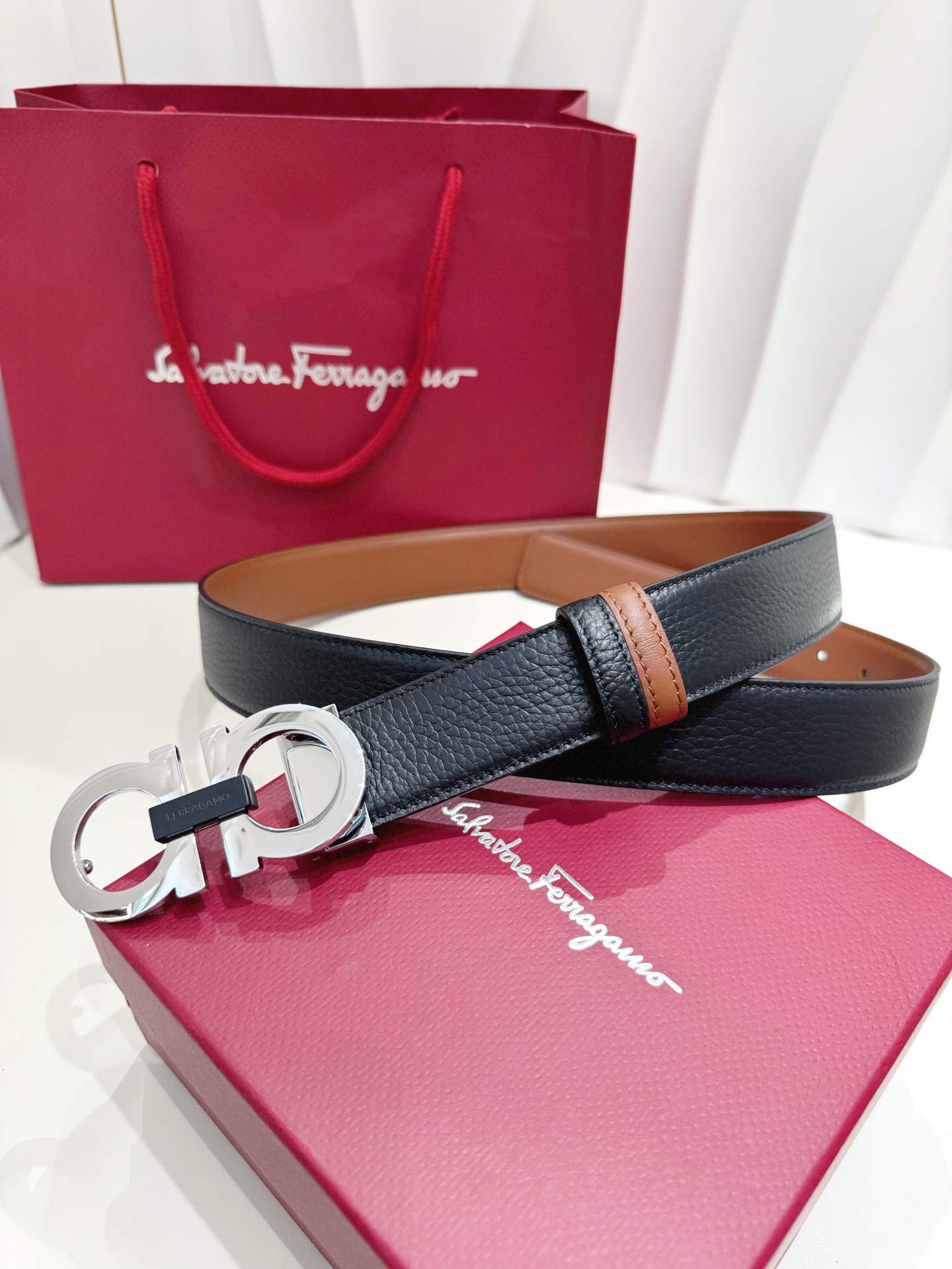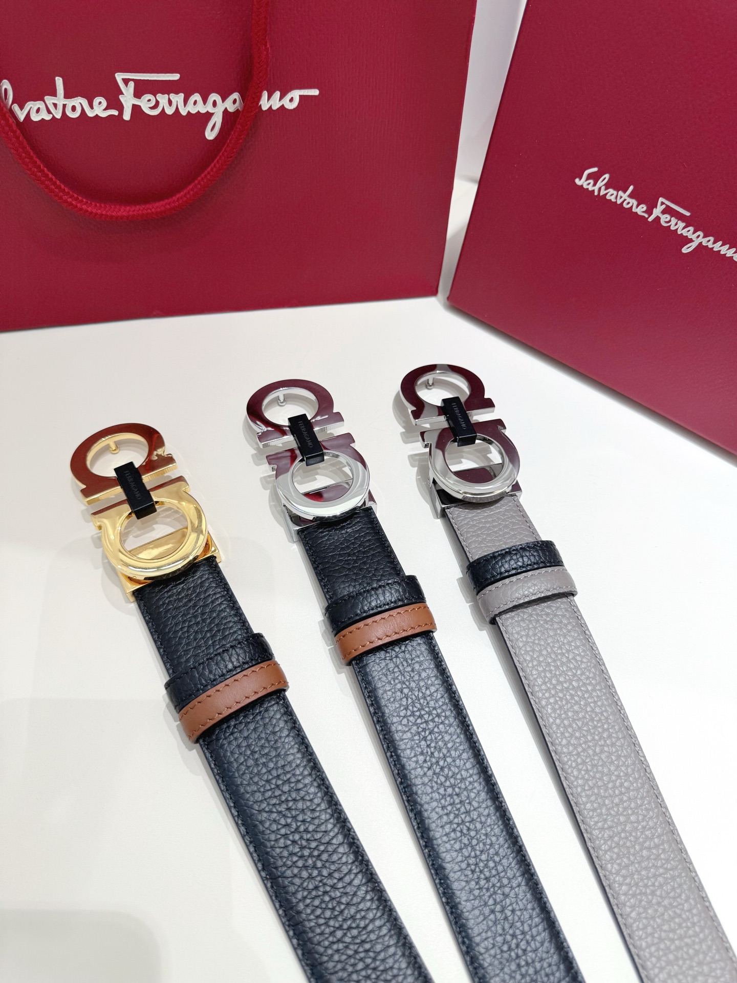 Home • Belt • Ferragamo classic double-loop design, imported premium leather, adjustable size, elegant lines. Width: 3.5.