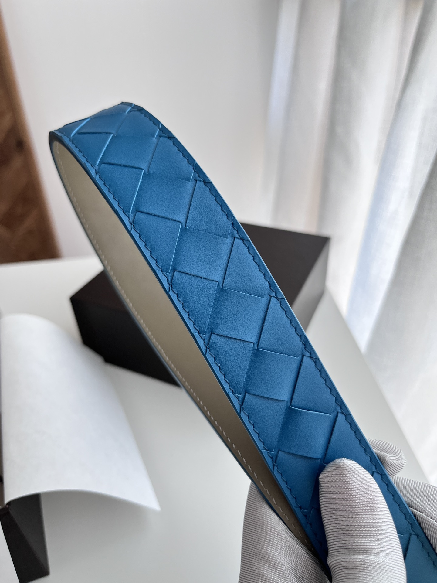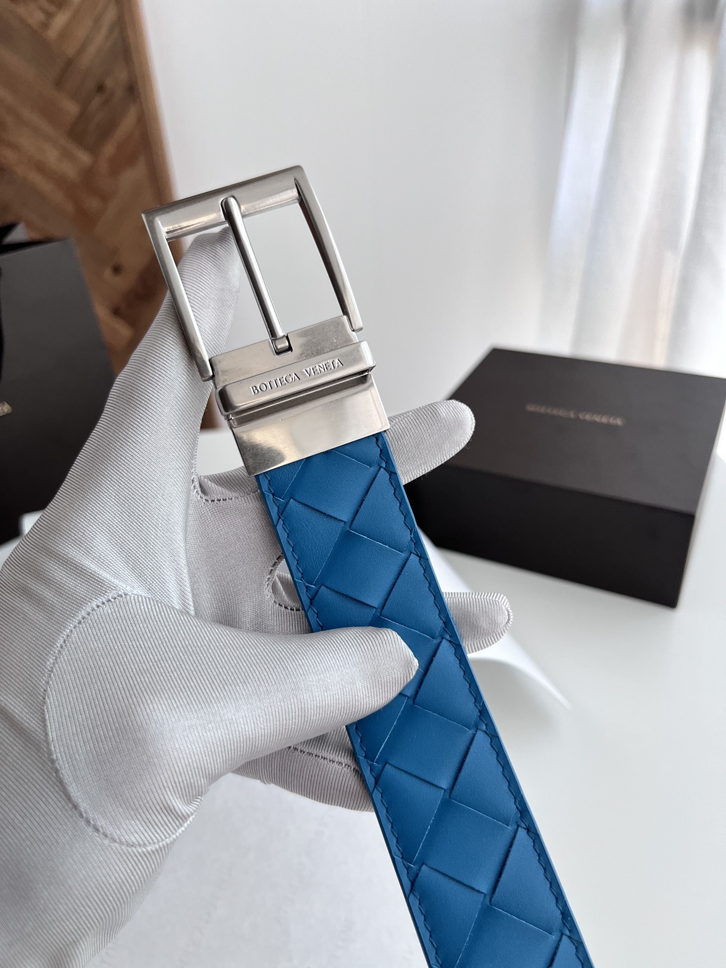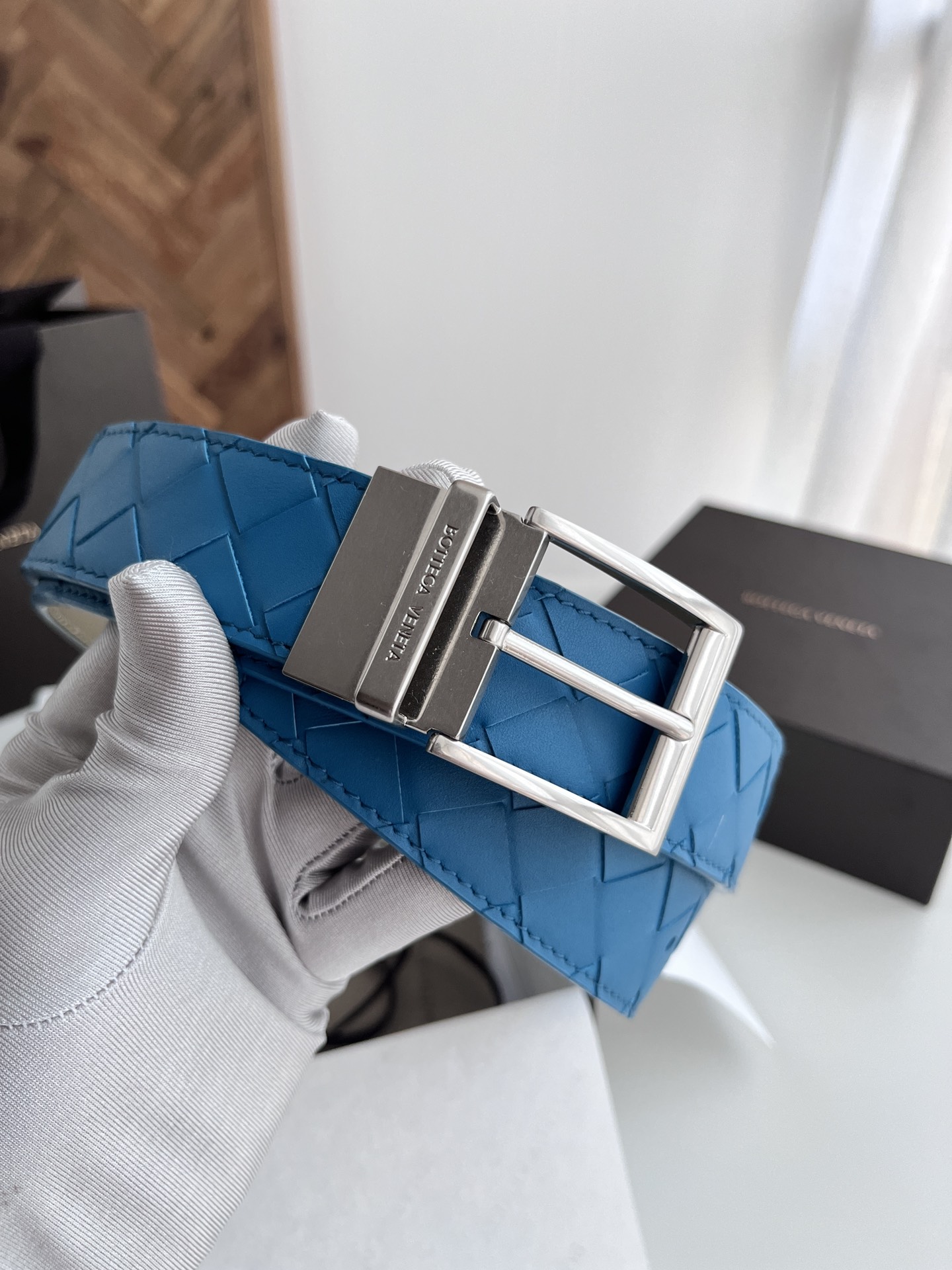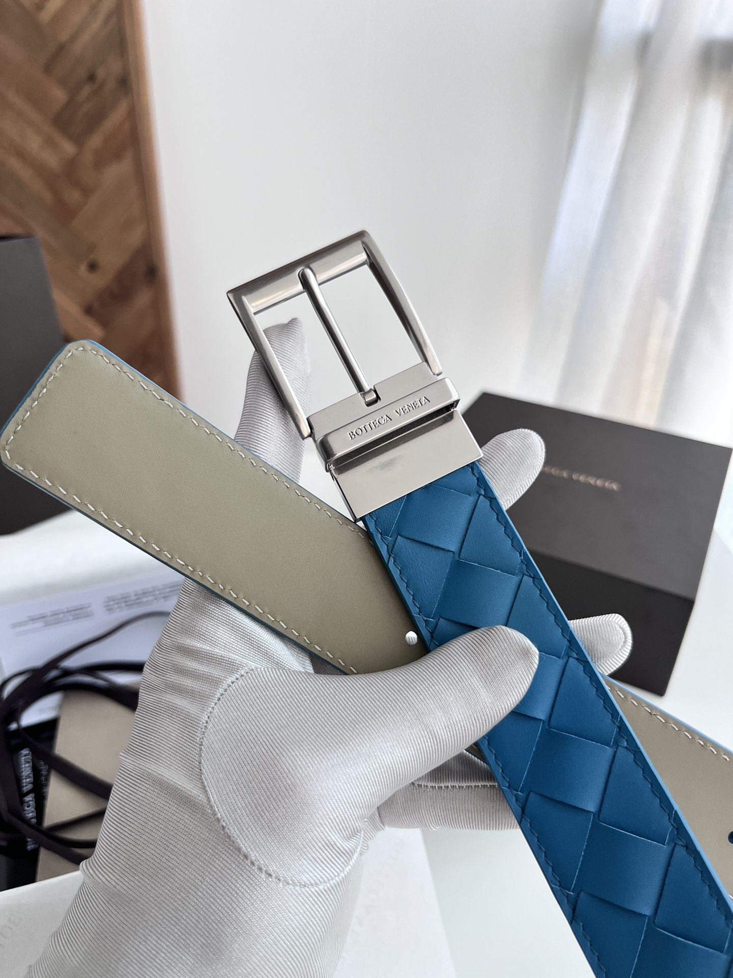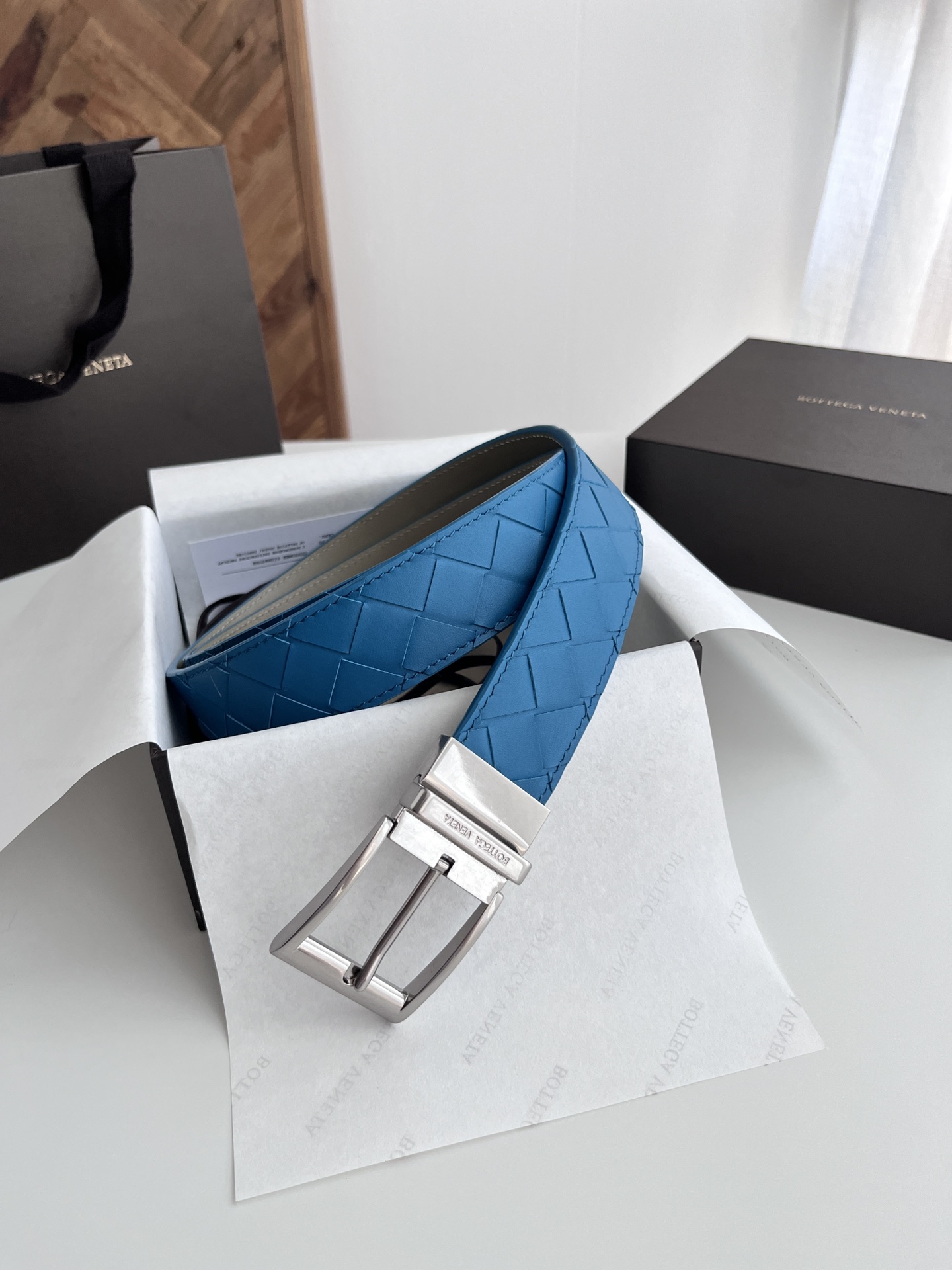 Bv latest men's woven belt double-sided use pure handmade intreccio large grid weaving double-sided Italian calfskin with slightly retro silver rotatable pin buckle front has logo width 35MM