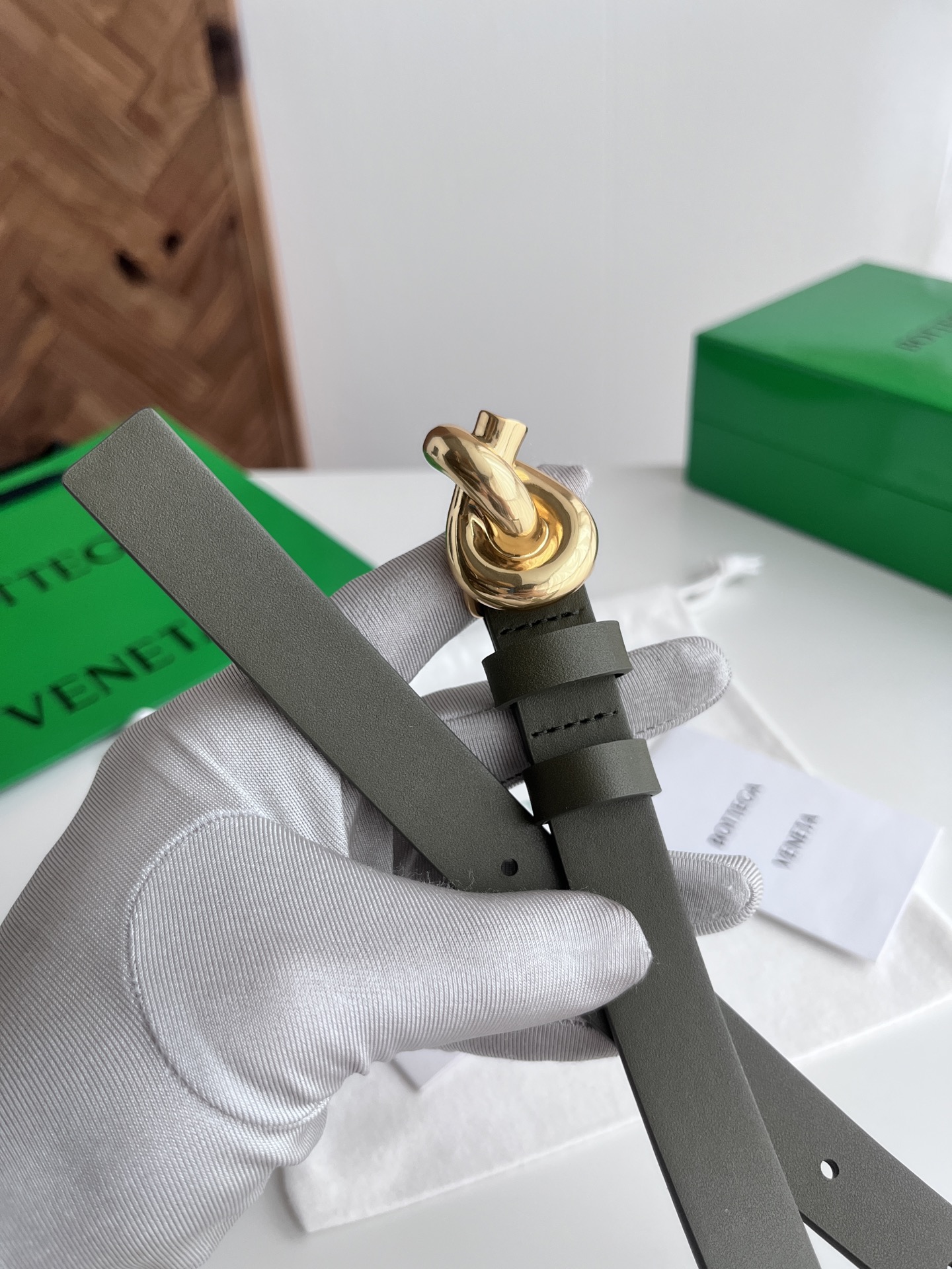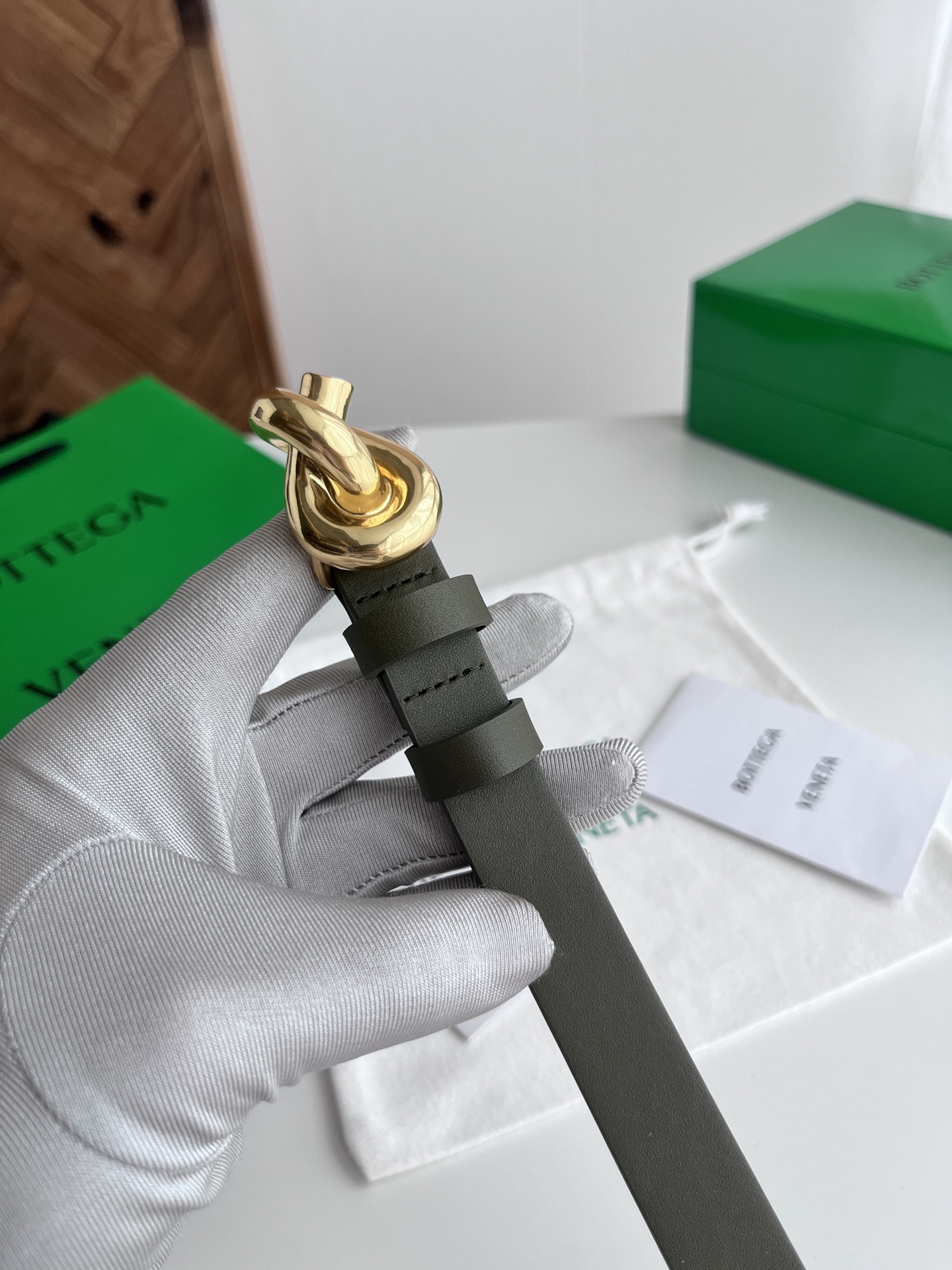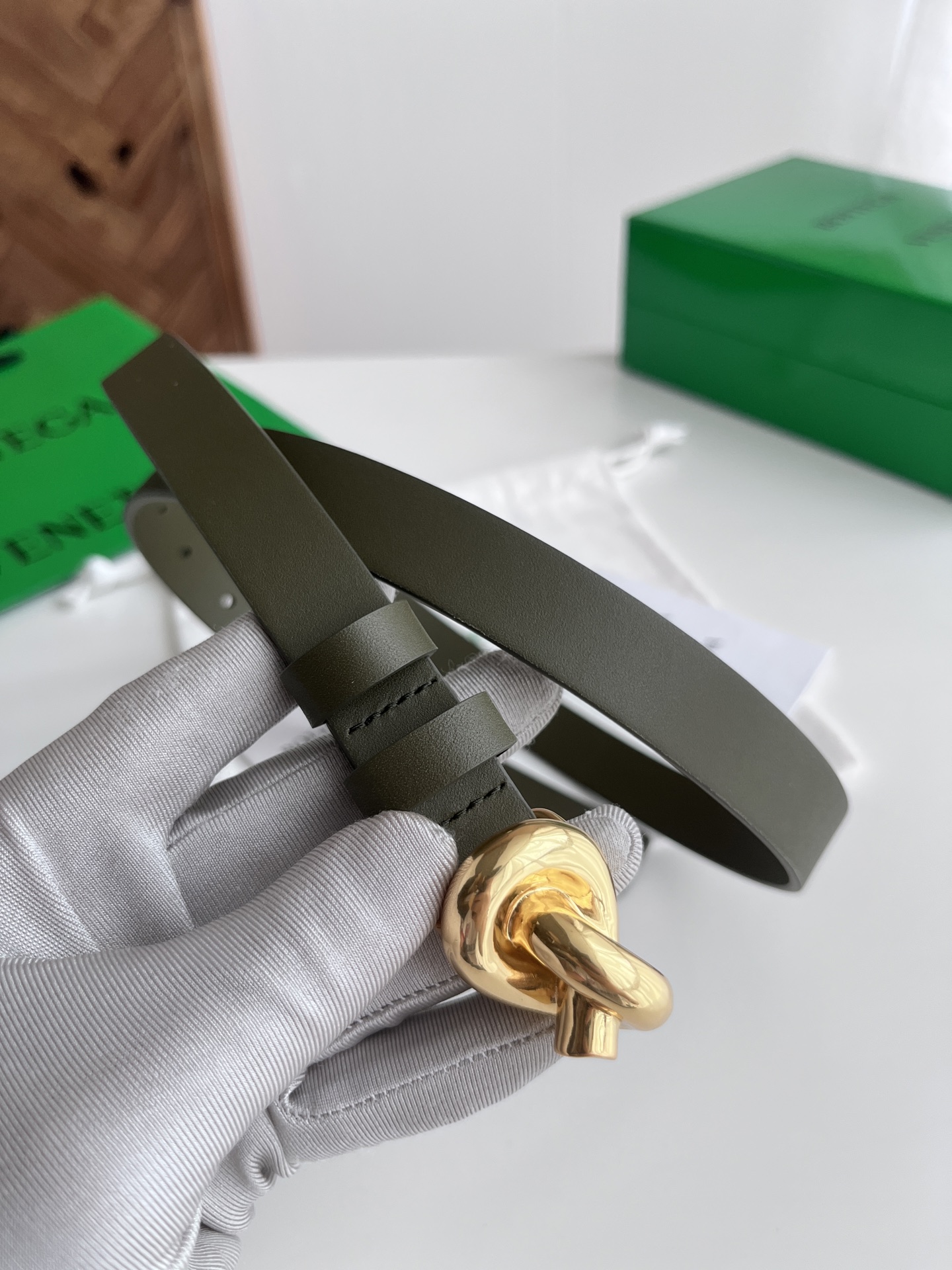 Bv 2025 latest women's flat belt double-sided Italian calfskin with knot design slightly retro gold buckle with double leather rings belt width 2CM