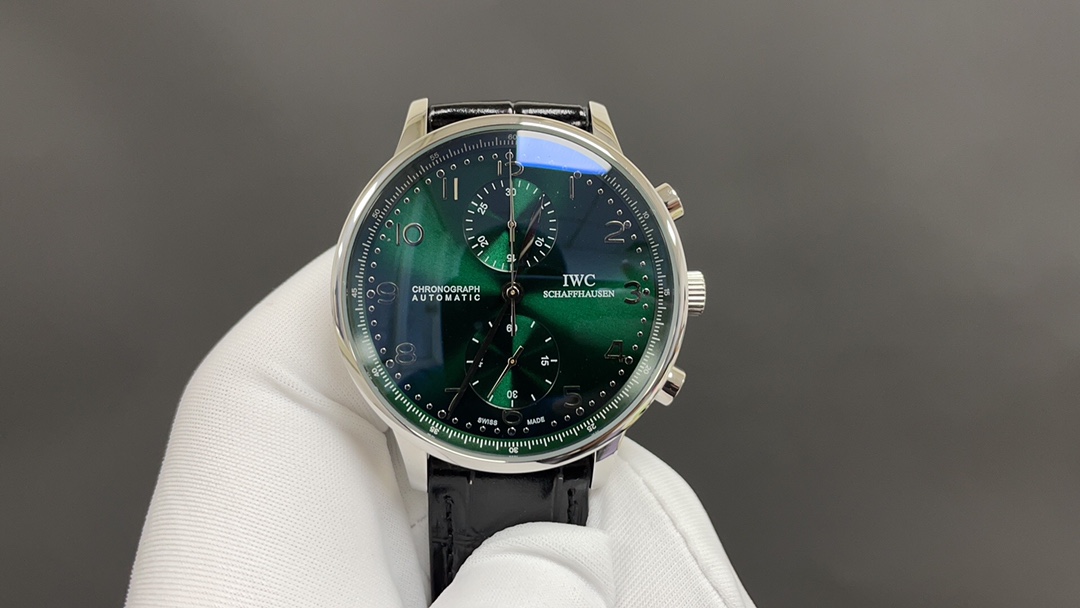 IWC Portuguese Chronograph Green 7750 Top Quality Shipping Real Shot