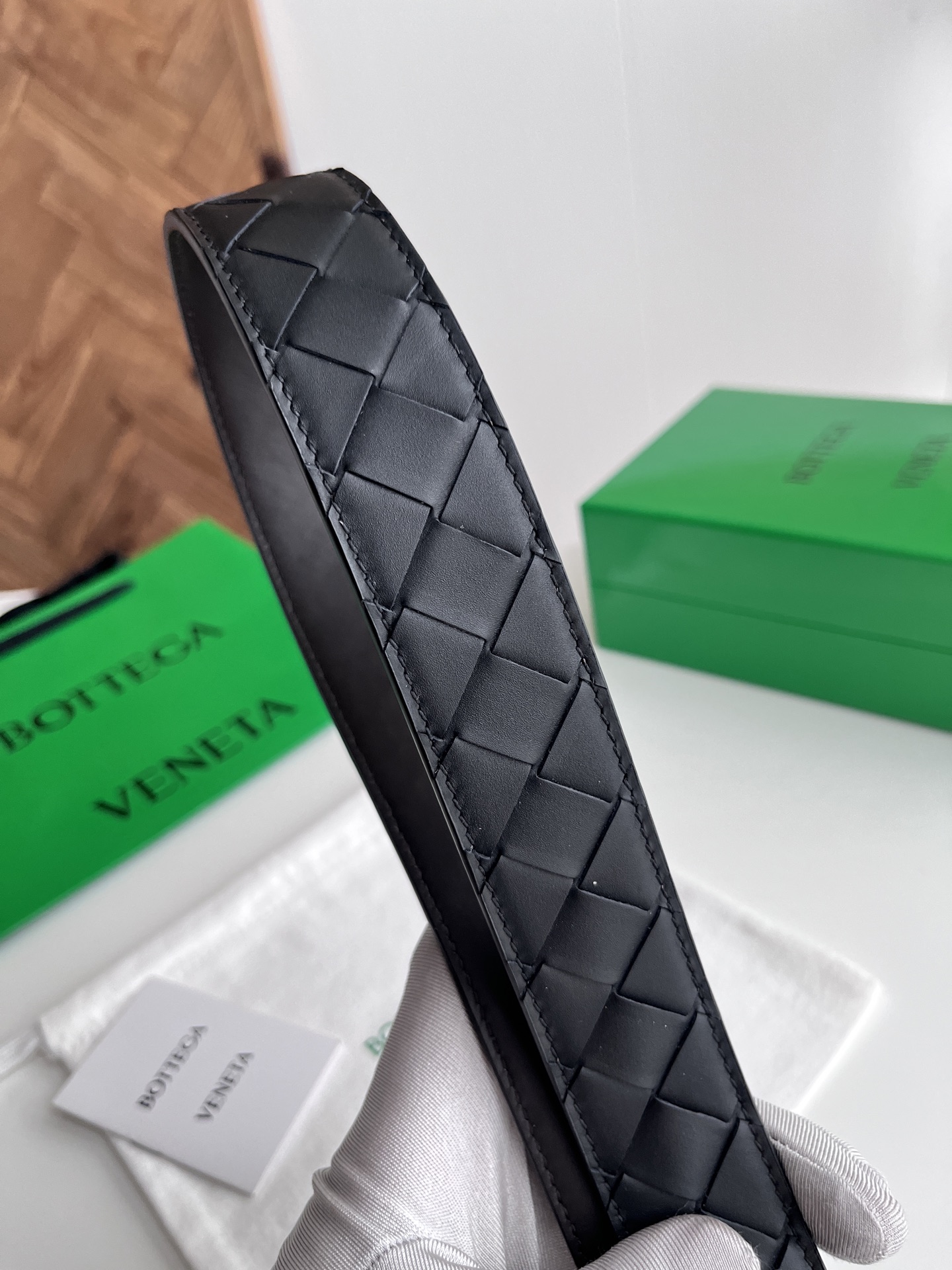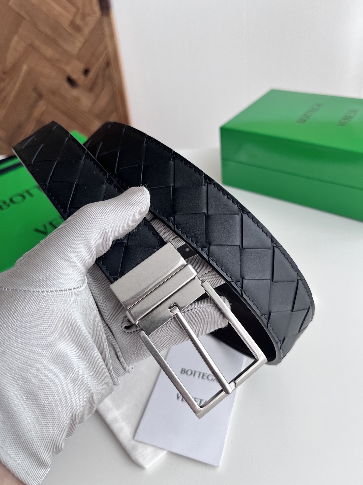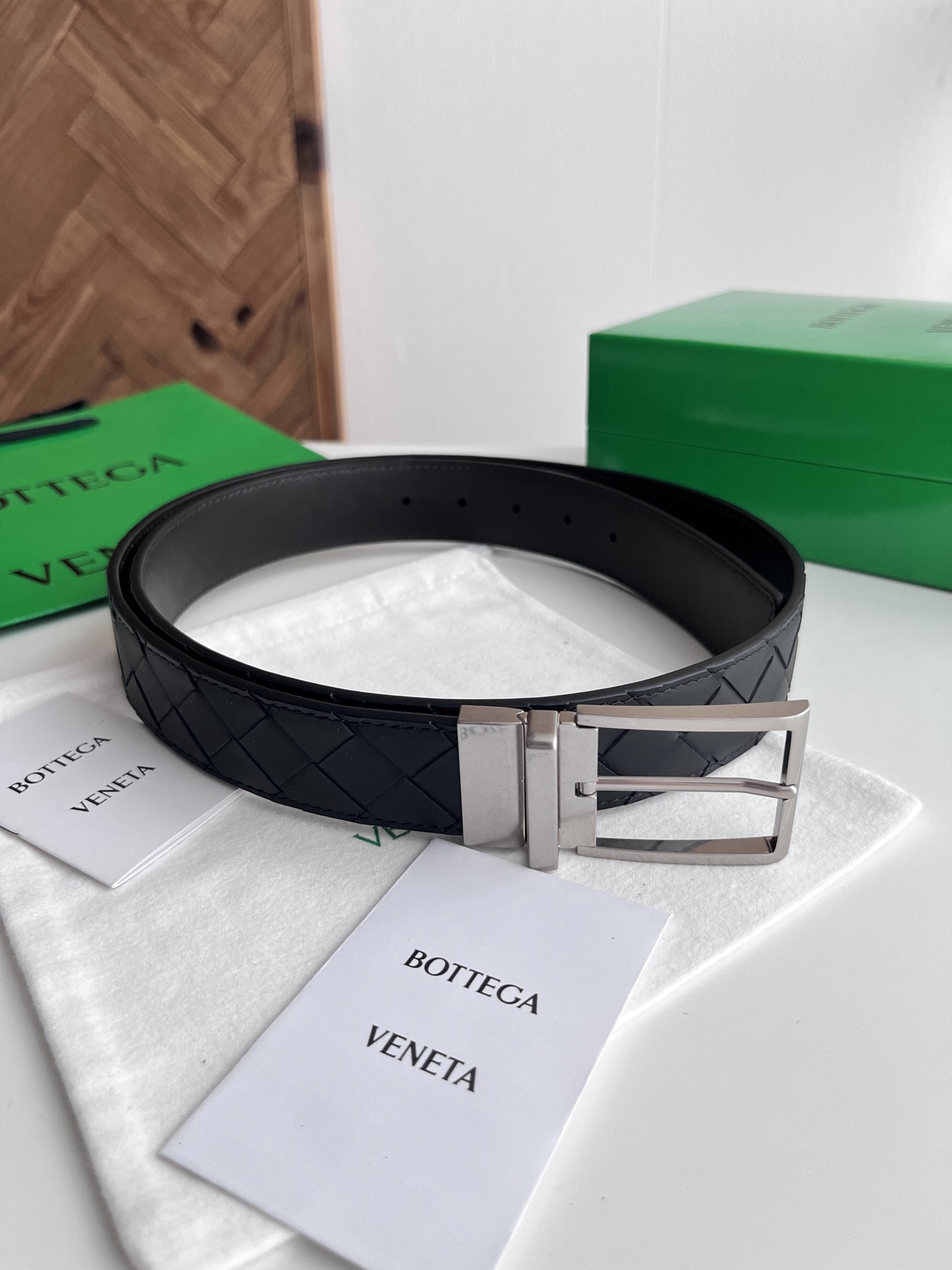 Bv 2025 latest men's woven belt double-sided use pure handmade intreccio large grid weaving double-sided Italian calfskin with vacuum gun color rotatable buckle side with logo belt width 35MM