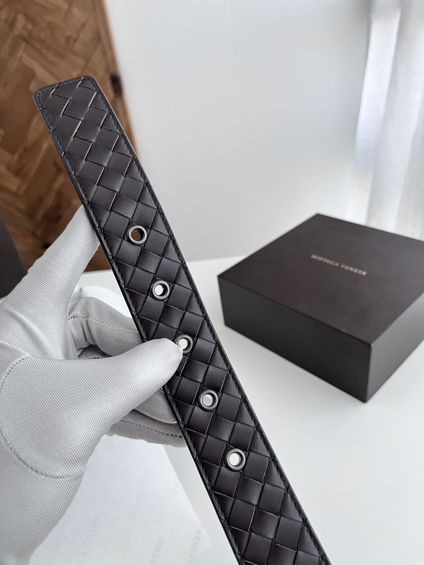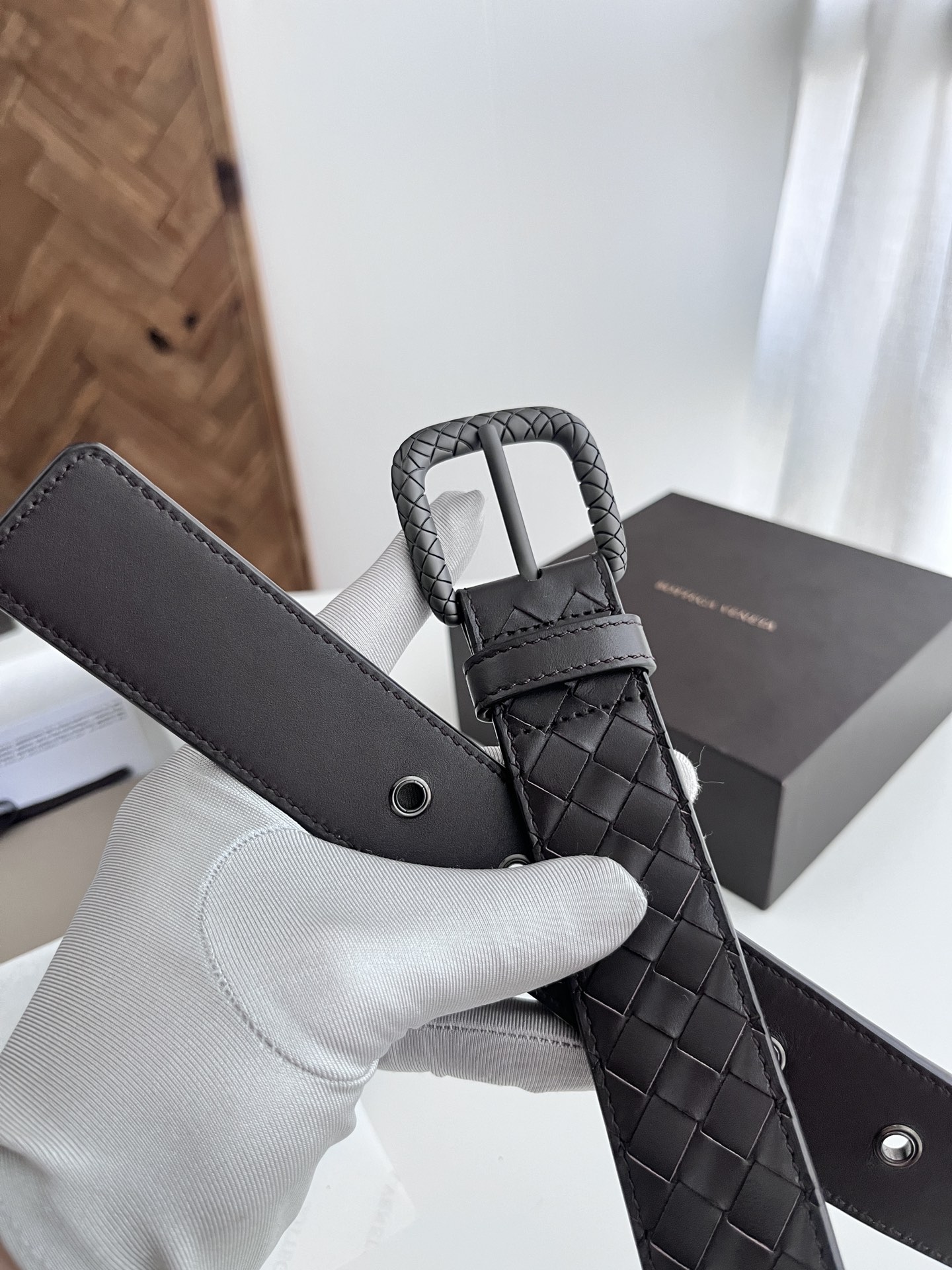 Bv 2024 men's woven leather belt, double-sided calfskin, 35mm width.