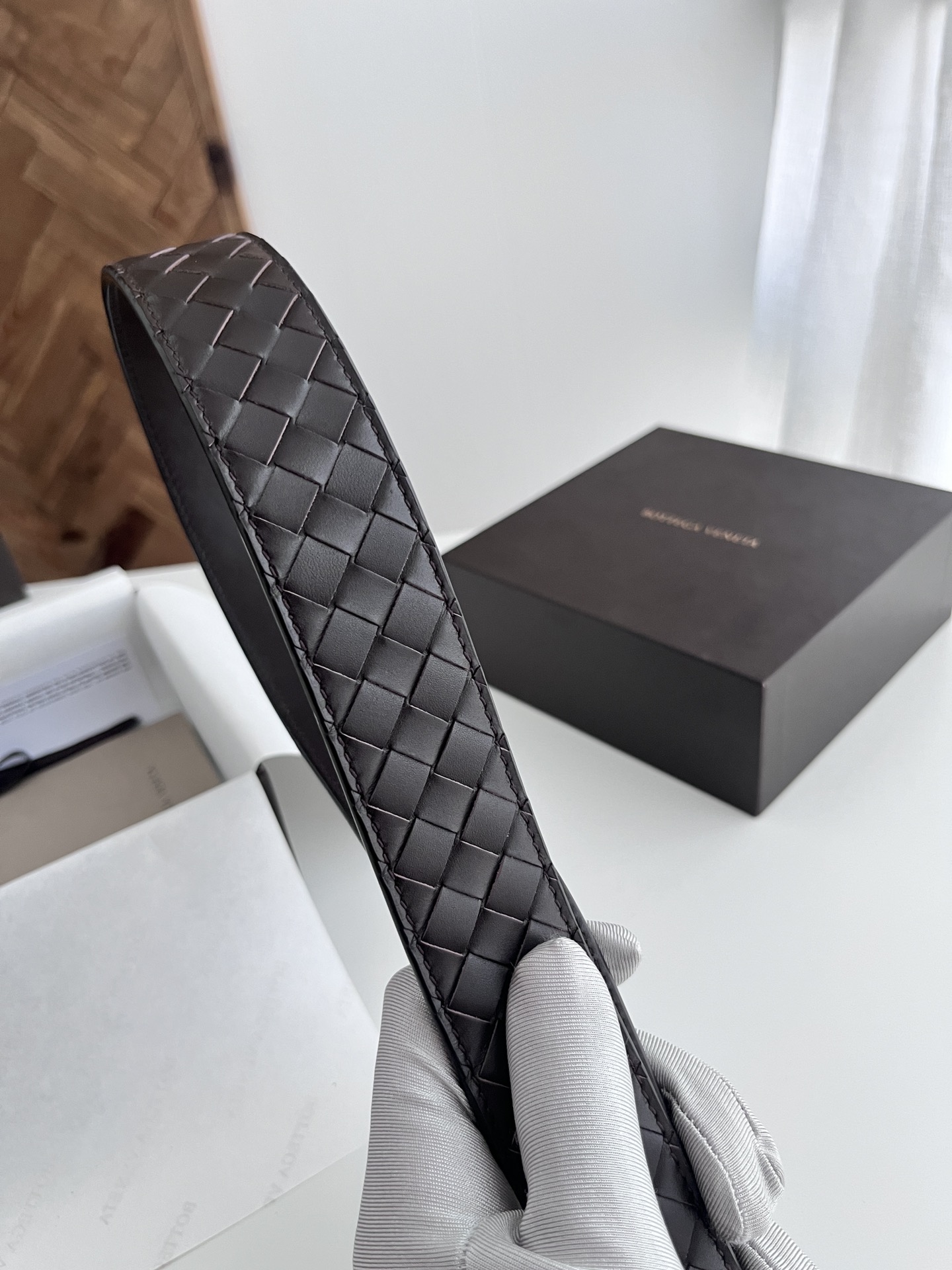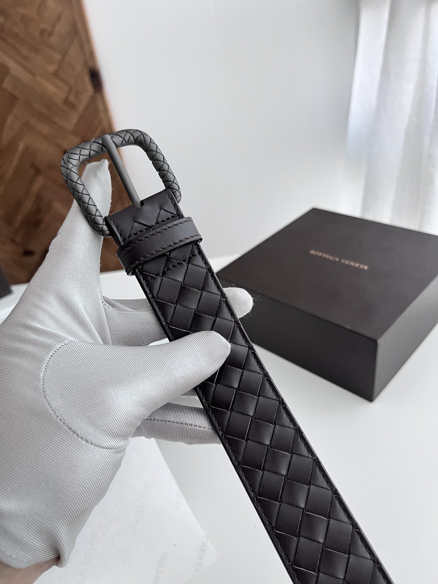 Home • Belt • Bv 2024 men's woven leather belt, double-sided calfskin, 35mm width.