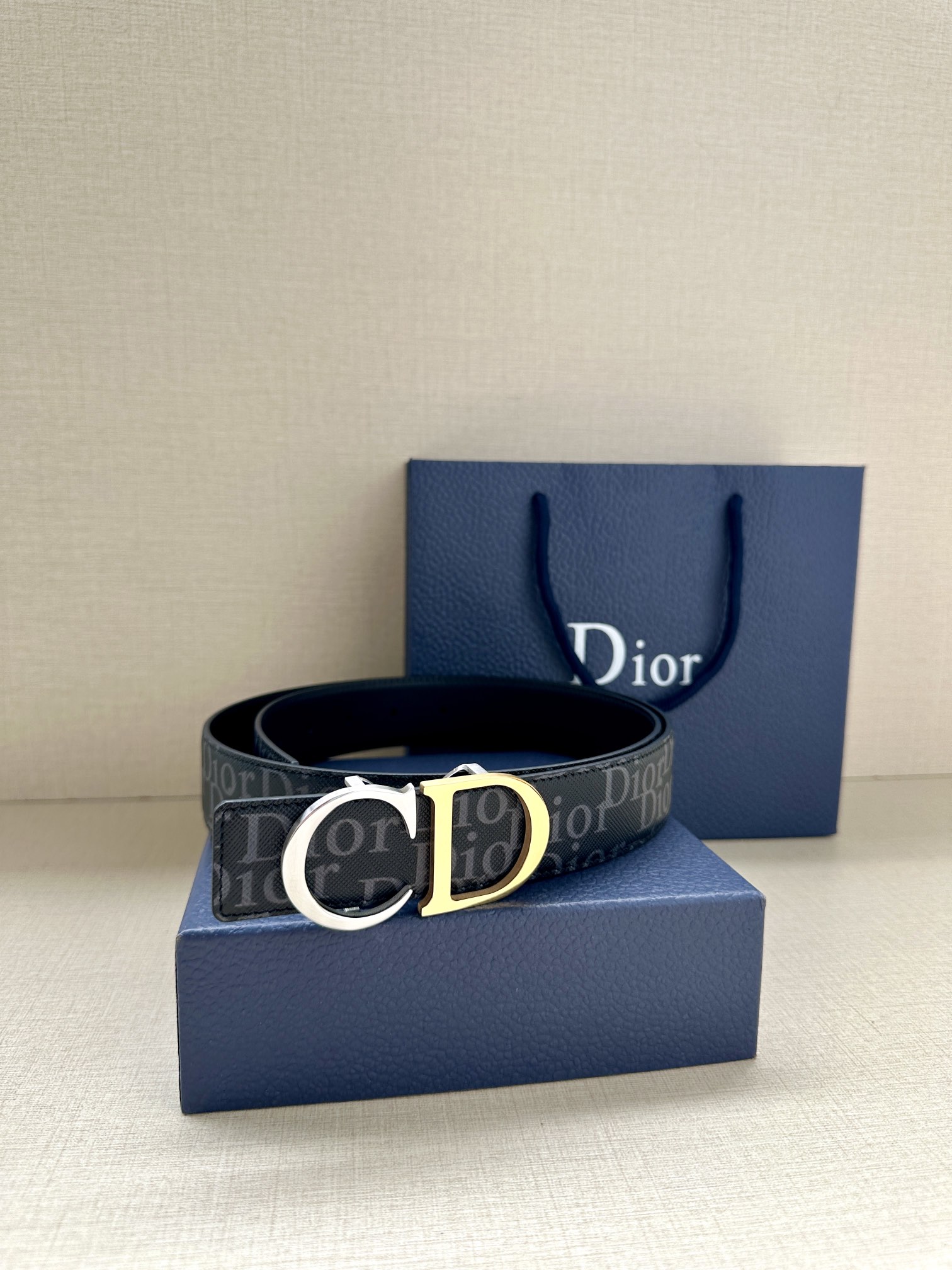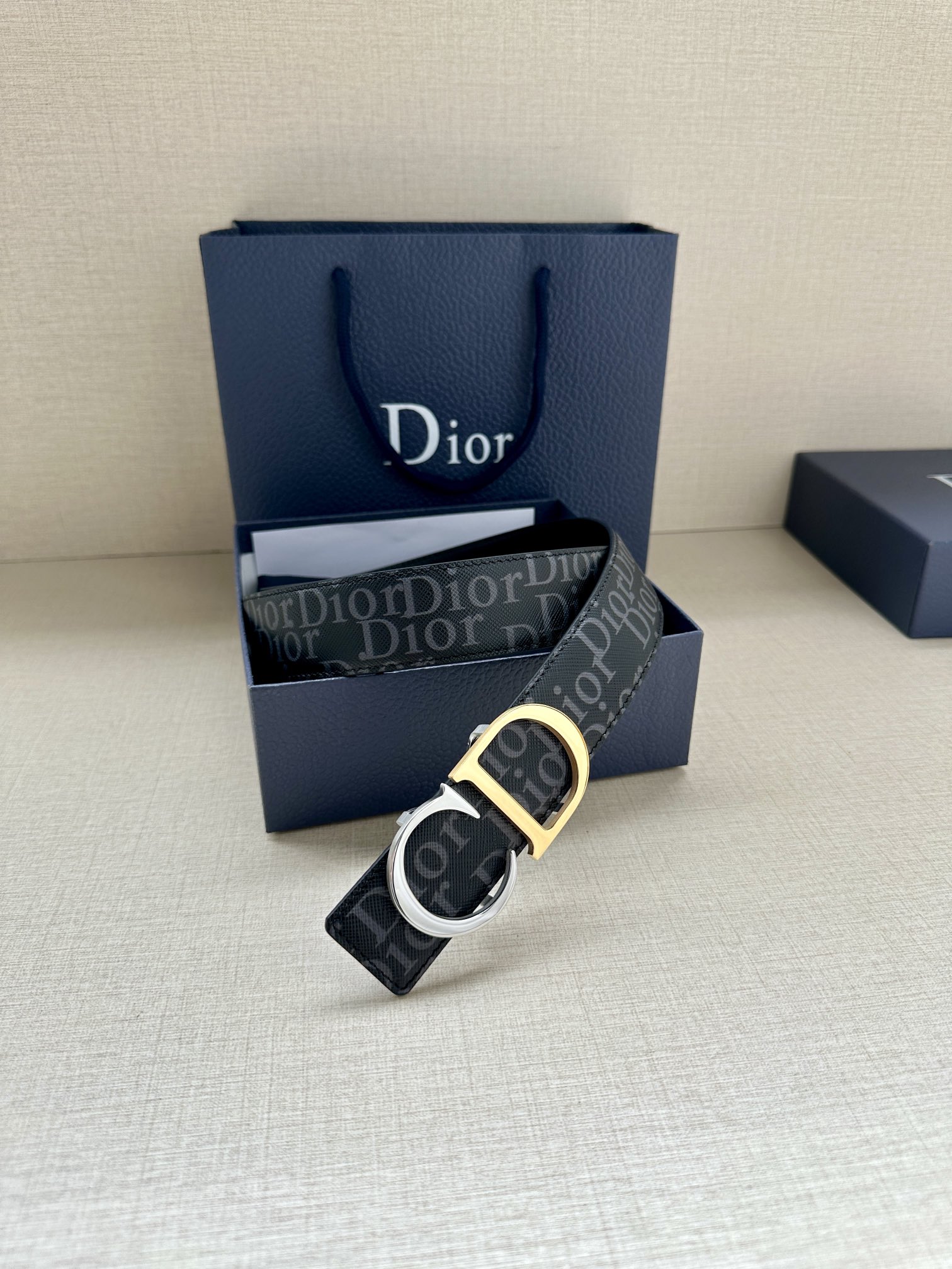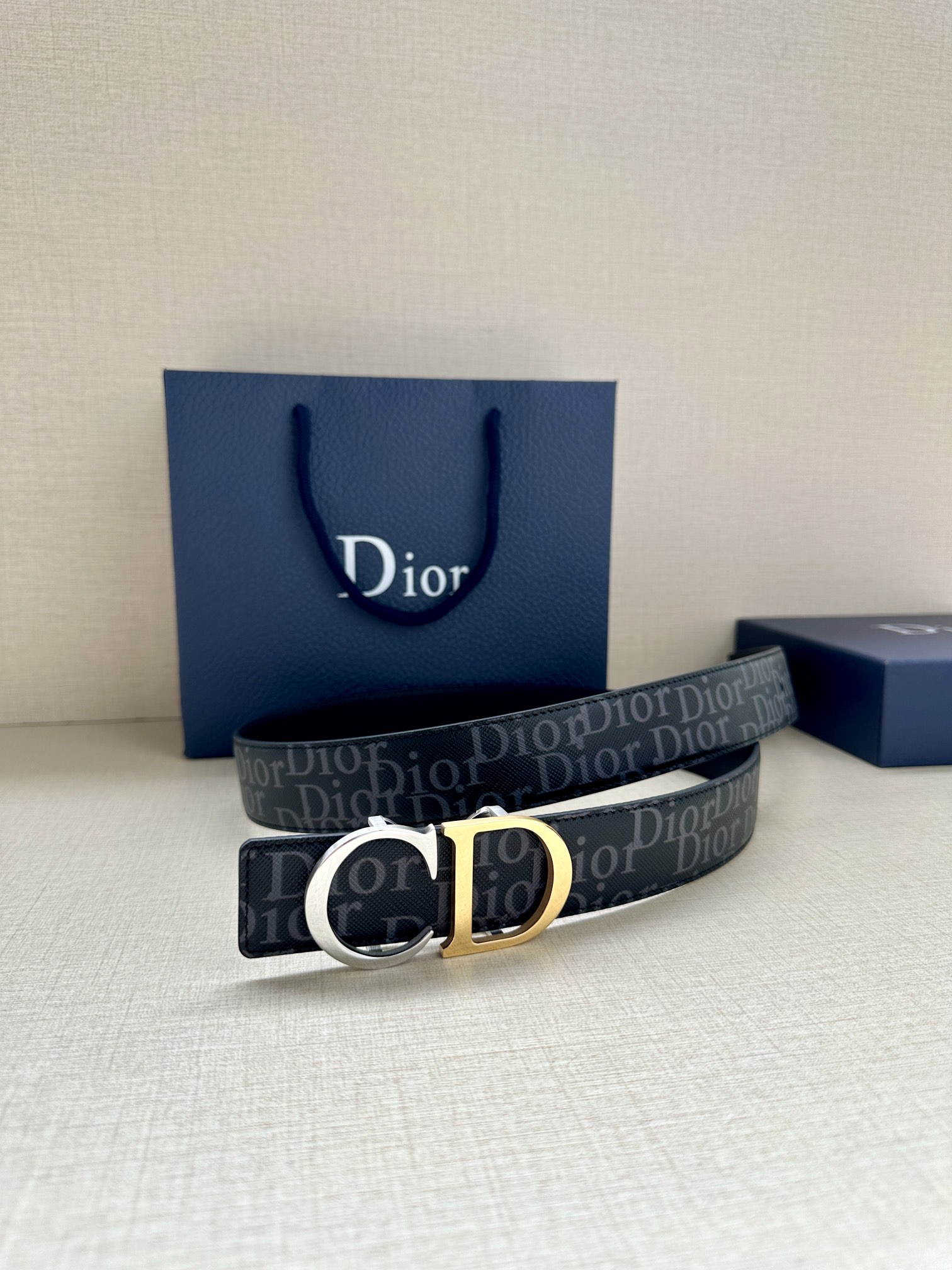 This 35mm reversible belt combines elegance with contemporary style. Featuring a double-sided design, one side is crafted from black Oblique Galaxy printed leather, while the other side is made of smooth black calfskin. The Oblique Galaxy printed leather showcases a cut-out Oblique pattern on the smooth calfskin, highlighting Dior's exceptional craftsmanship. Enhanced with reflective lining, it can be paired with various 35mm belt buckles to create a distinctive and versatile accessory.