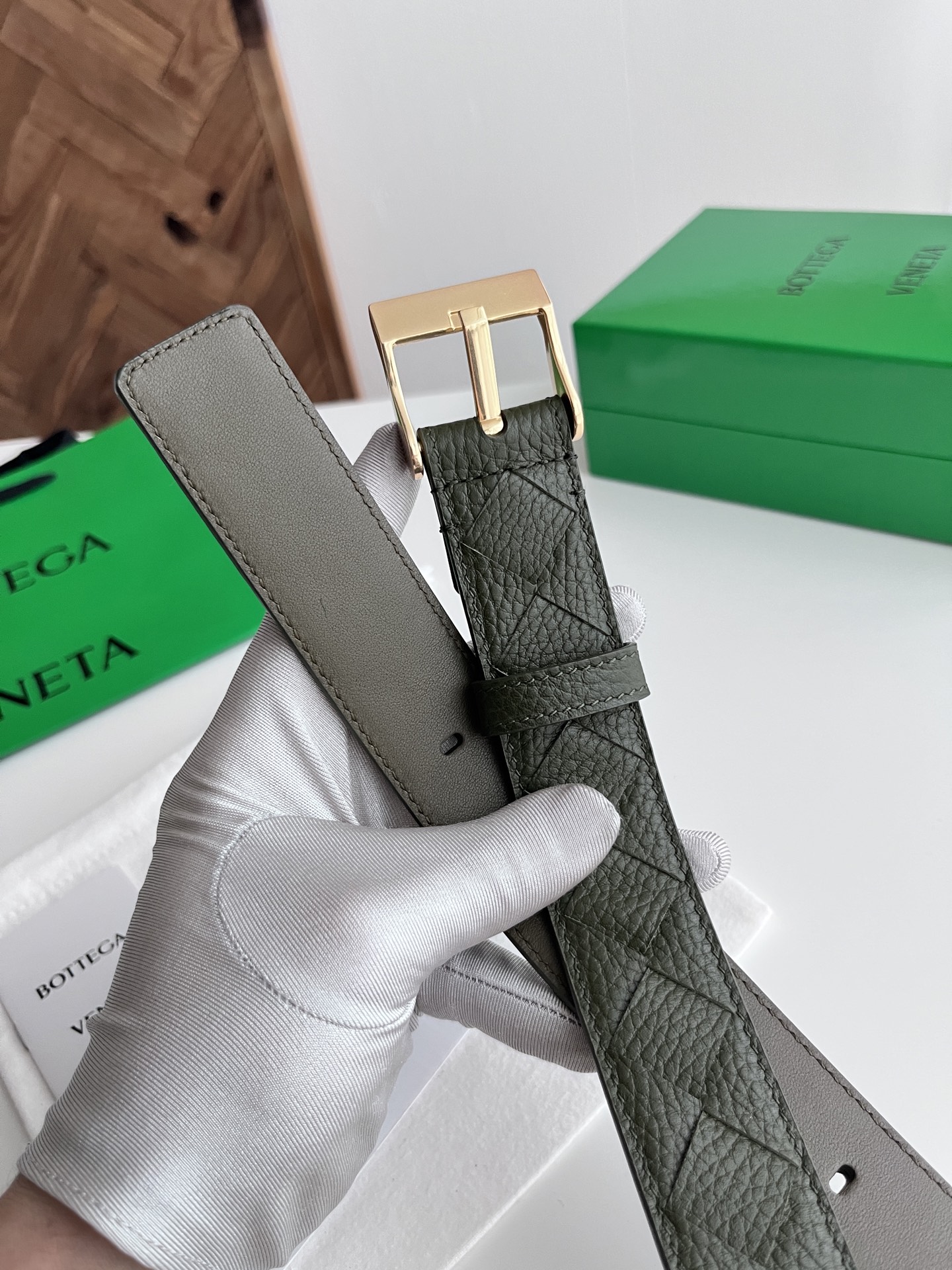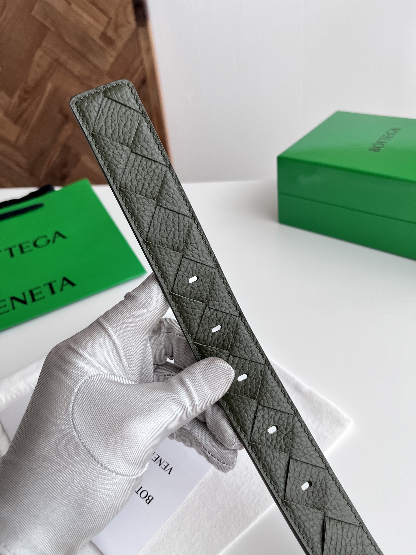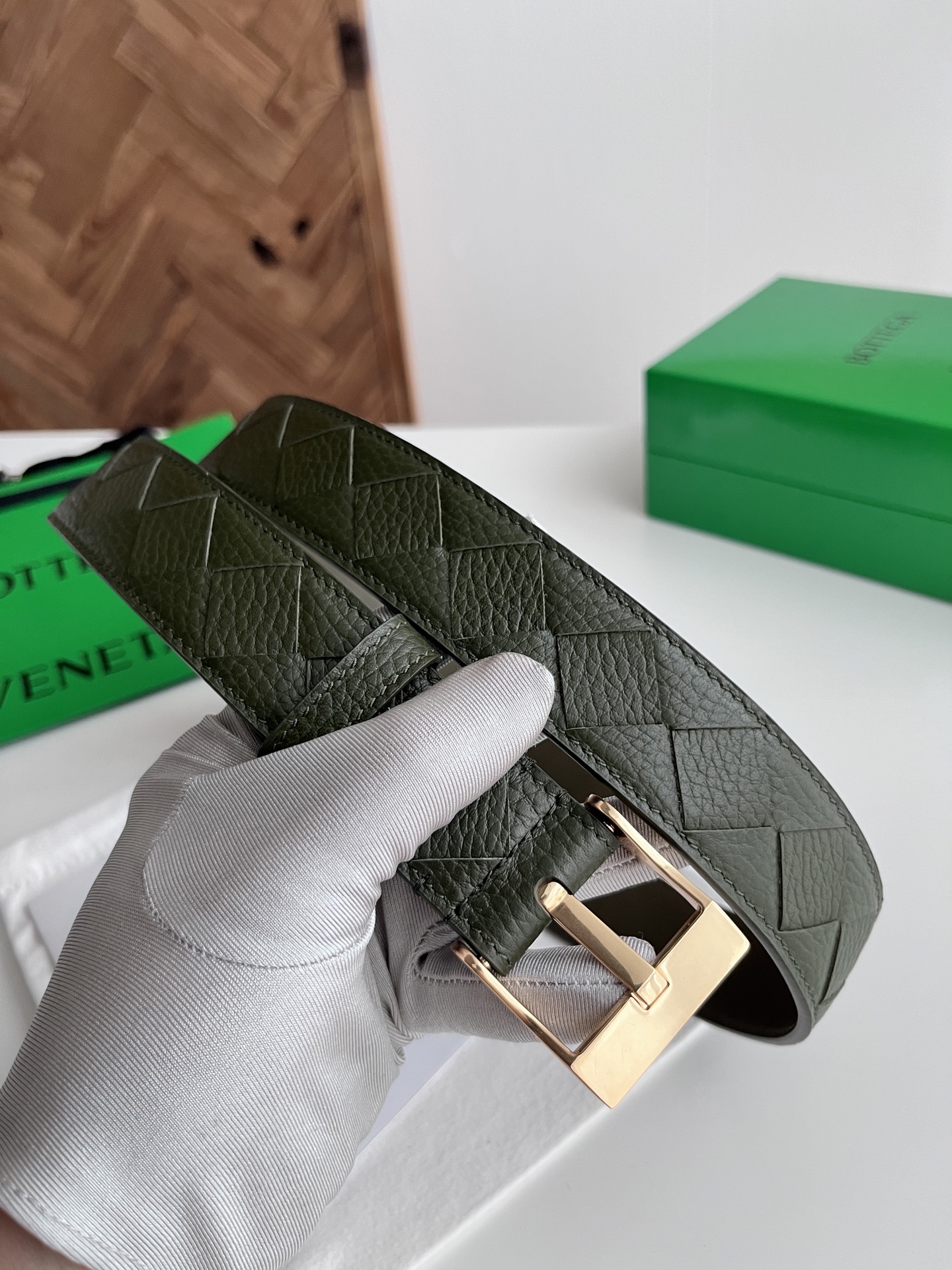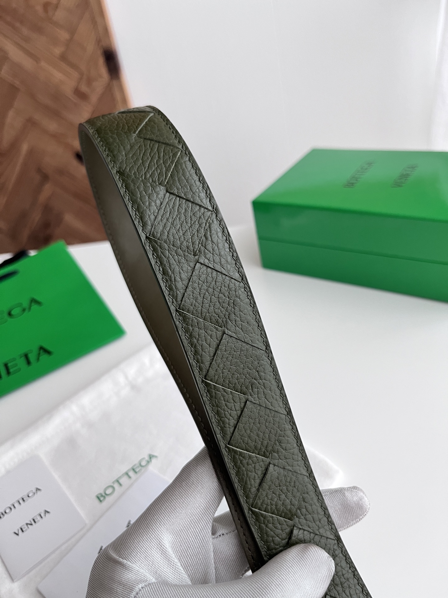 BV 2025 New Men's Belt Pure Handmade Large Intreccio Weave Italian Pebbled Calfskin Paired with New Buckle Design Vacuum Gun Color Pin Buckle Belt Width 3.5cm