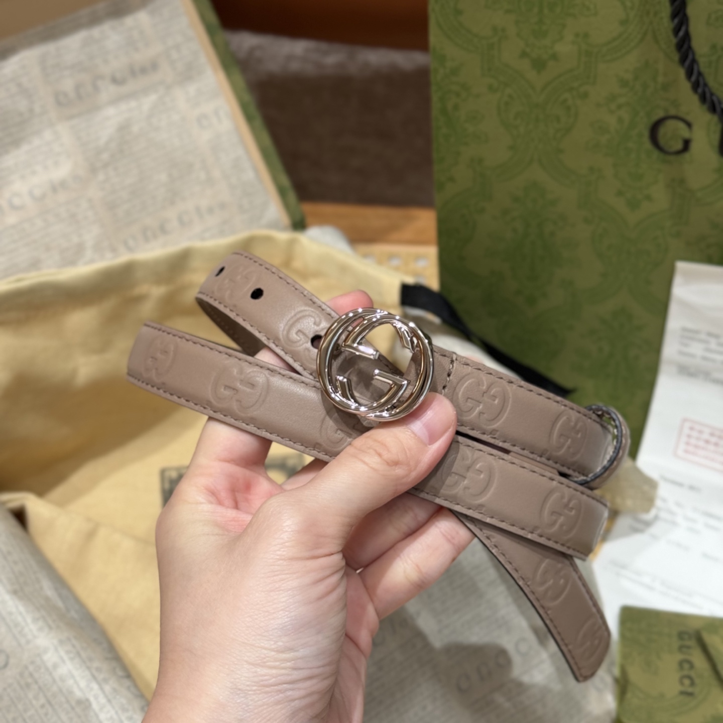 Classic double G buckle design, durable, glossy finish for a more exquisite look. Made from Italian top-grain leather with a delicate texture, suitable for any occasion, perfectly matching any style. Width 2cm, a must-have item in the wardrobe.