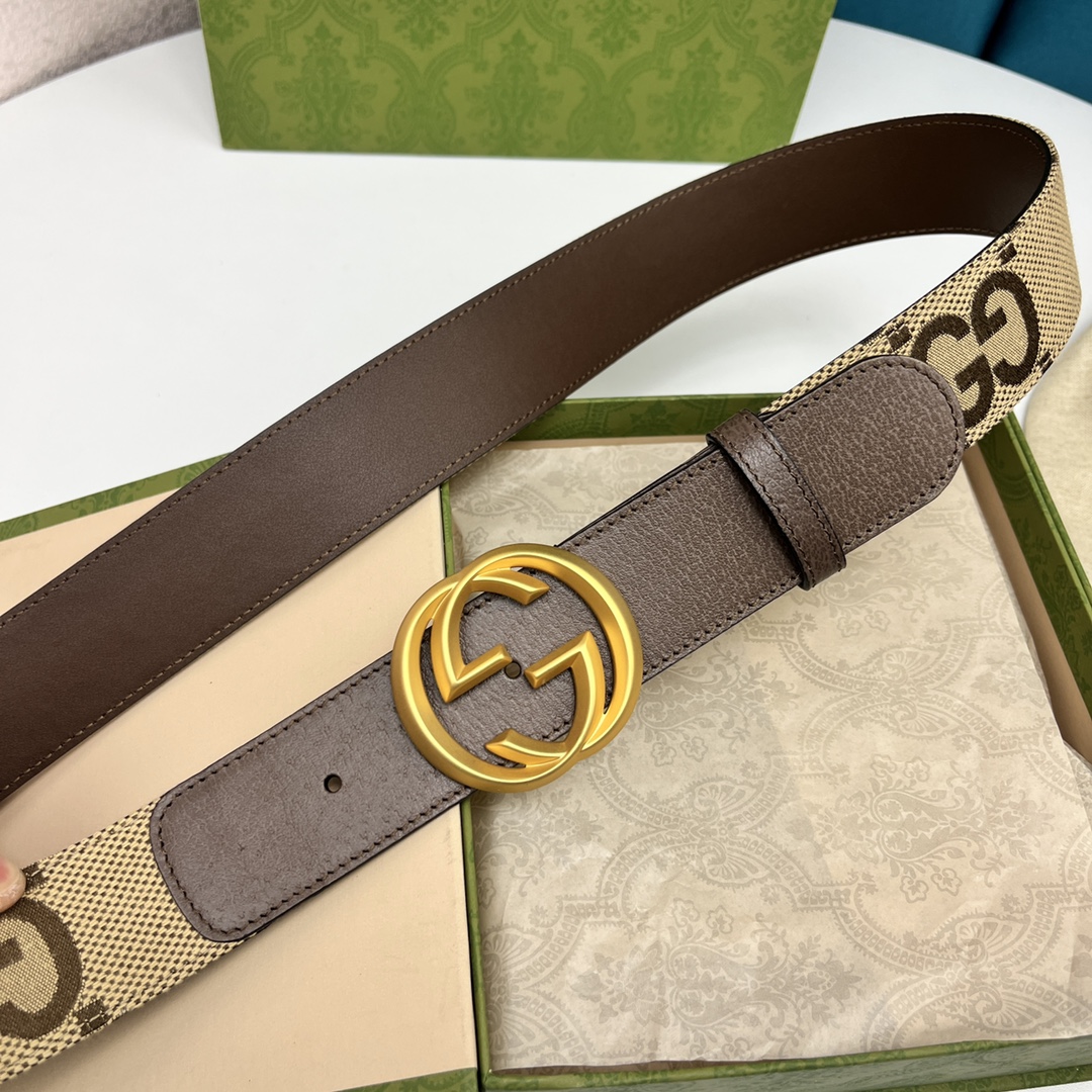 Custom Large G Pattern Canvas Hand-stitched Combined with Original Factory Brown Calfskin Exquisite GG Buckle This Belt is Suitable for Both Low-rise and High-rise Wear