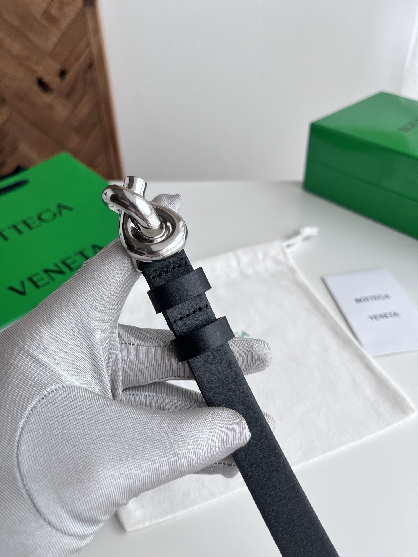 Bv 2025 latest women's flat belt double-sided Italian calfskin with knot design slightly retro gold buckle with double leather rings belt width 2CM