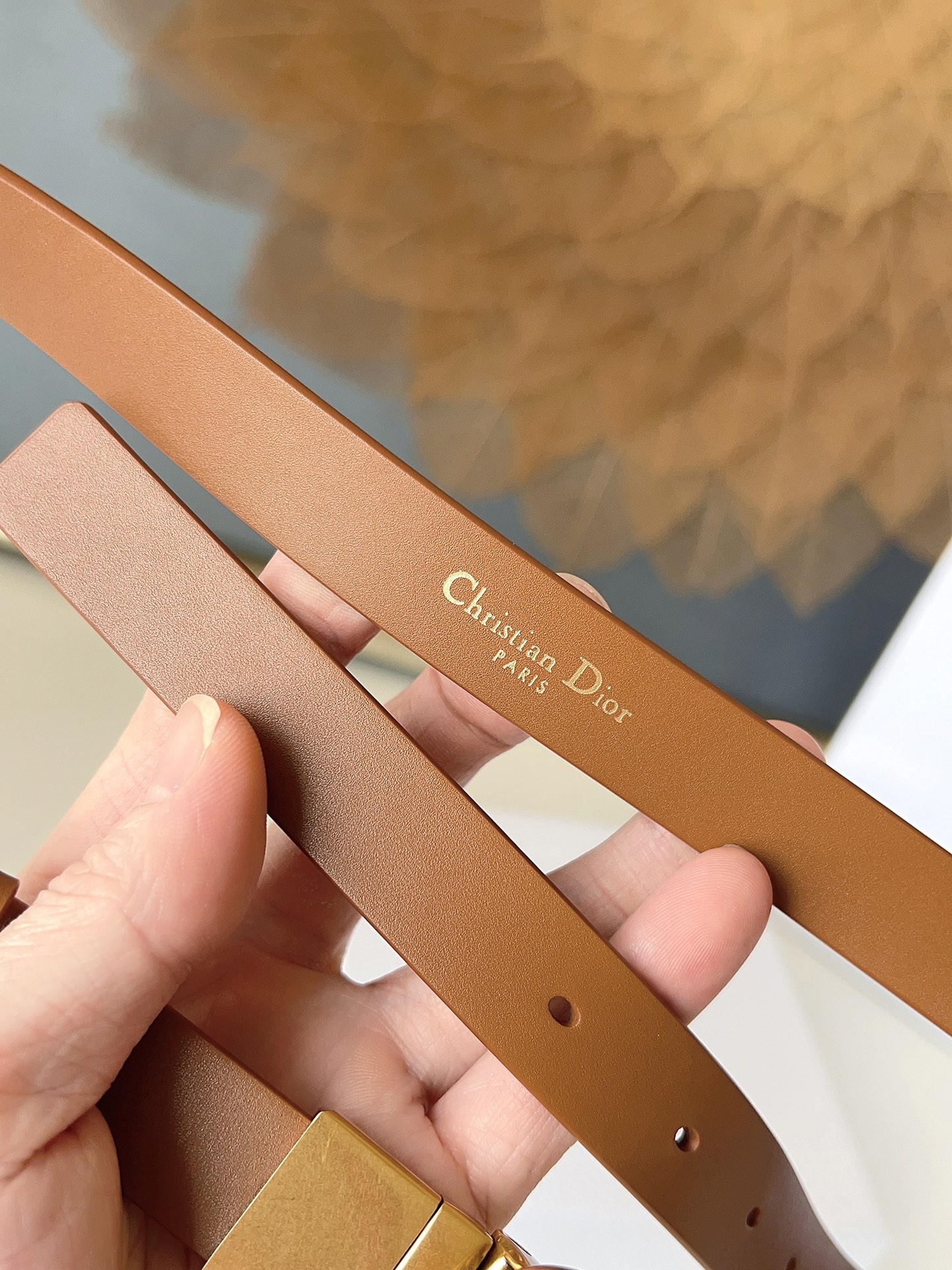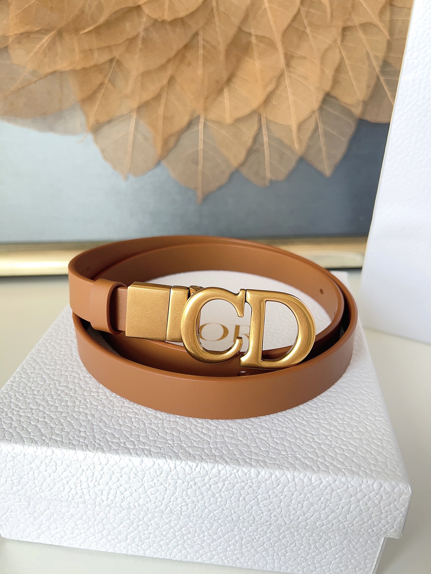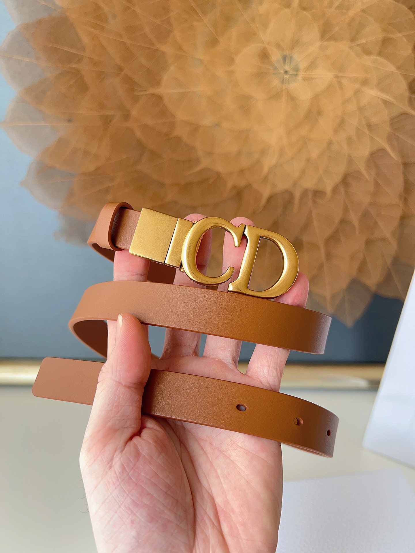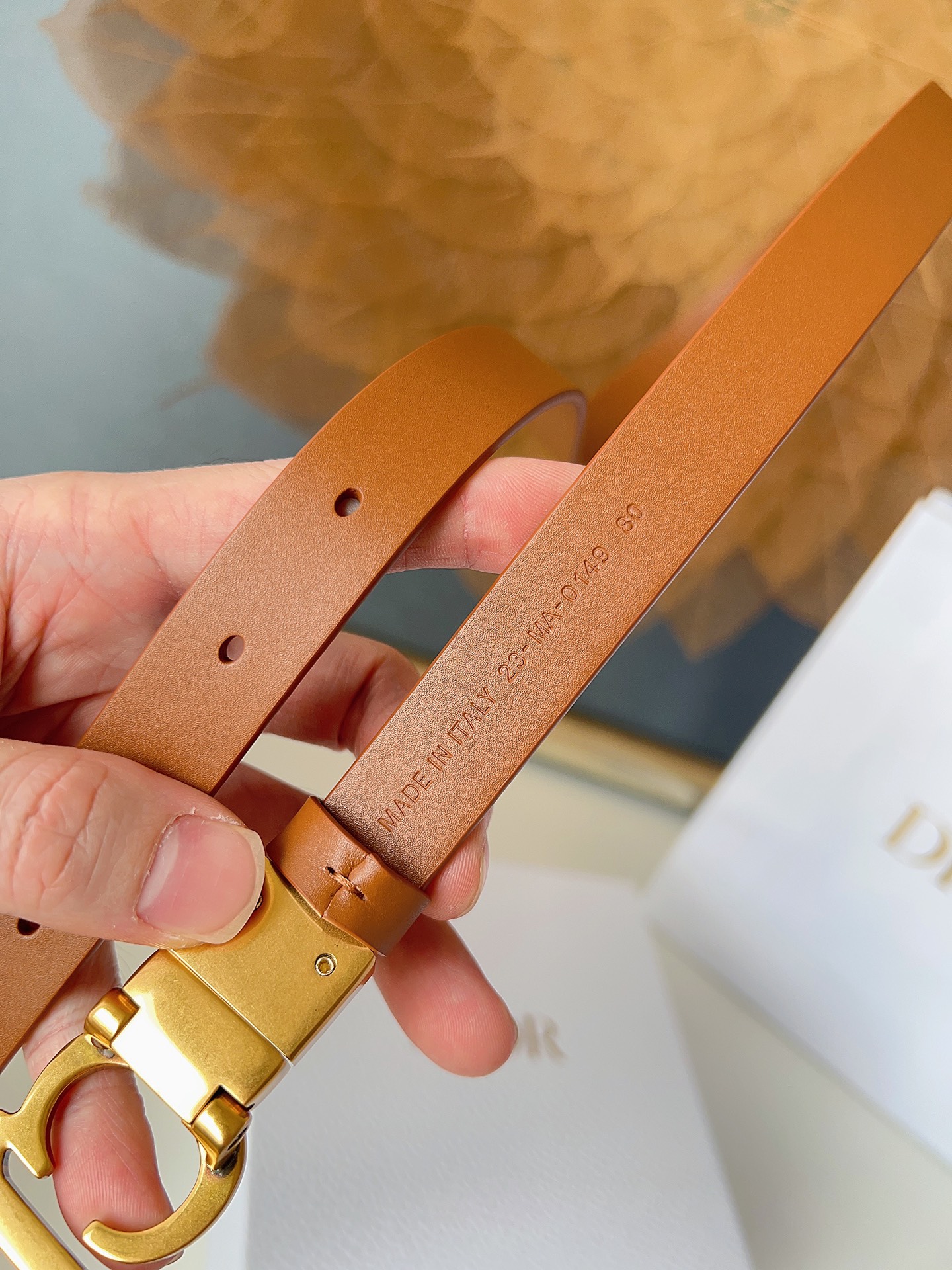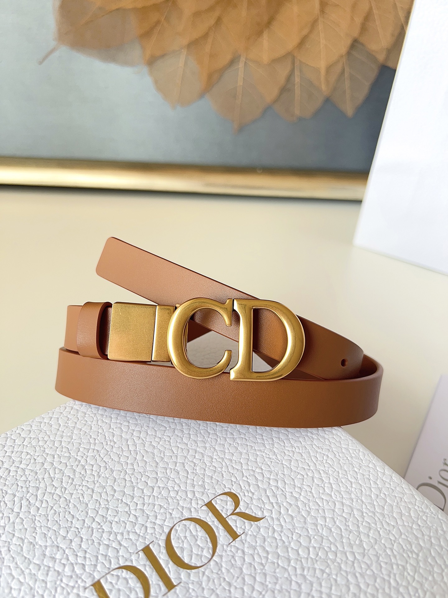 The Dior saddle belt is a classic accessory. Reinterpreted in grained calfskin, it features a fashionable and casual design adorned with a glossy metal rotating CD buckle. The slim style enhances your silhouette when paired with skirts, dresses, or trousers. Width 2.0cm