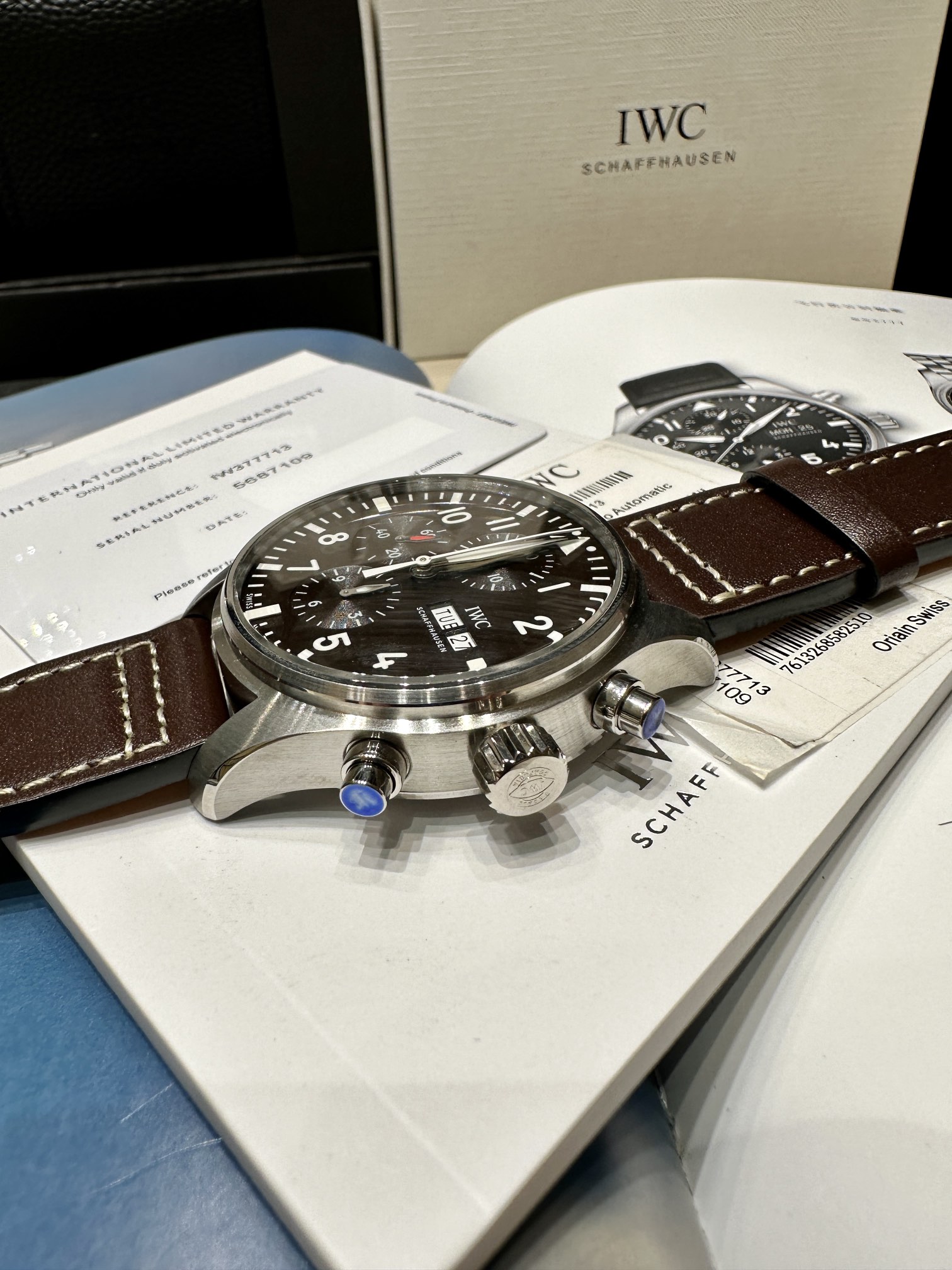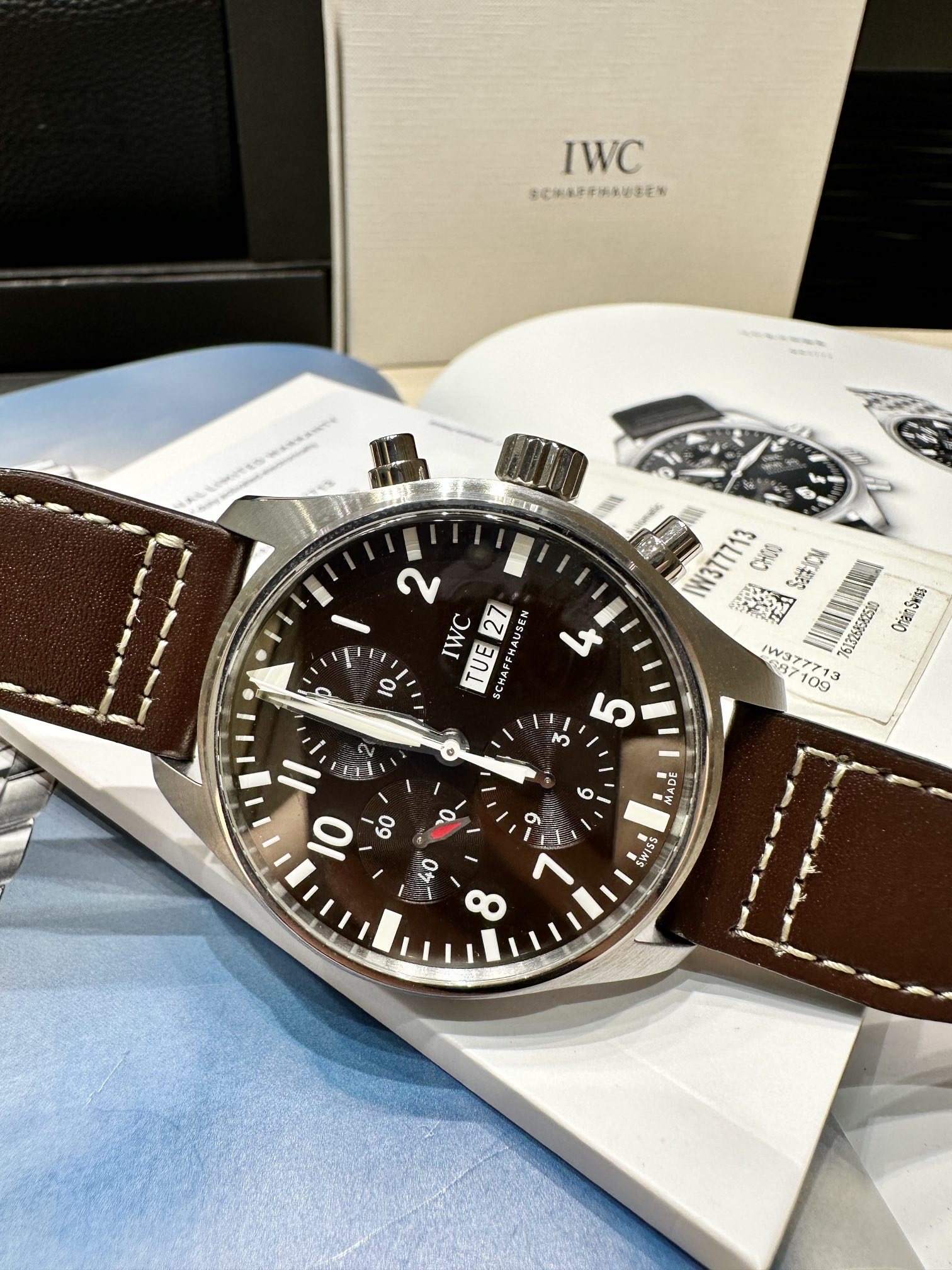 Model IW377713, premium item! Channel export order! Factory sealed! Only missing a distributor stamp to be authentic! IWC Pilot's Chronograph Watch, possessing the typical qualities of high-performance timepieces: accuracy, functionality, and reliability. Mechanical six-hand chronograph, this pilot's watch with a water resistance of up to 6 bar comes with a calfskin strap. Two movement options: equipped with either a Shanghai 7750 movement or an original Swiss ETA-7750 automatic mechanical movement (which IWC designates as the 79320). Anti-glare sapphire crystal, classic 43mm case diameter, timeless design, even authorized dealers struggle to keep it in stock! Warranty card and hang tag both feature the model number and watch serial number. Being able to obtain such perfect goods truly makes me happy for you! Unbeatable value for money, exclusive supply!!