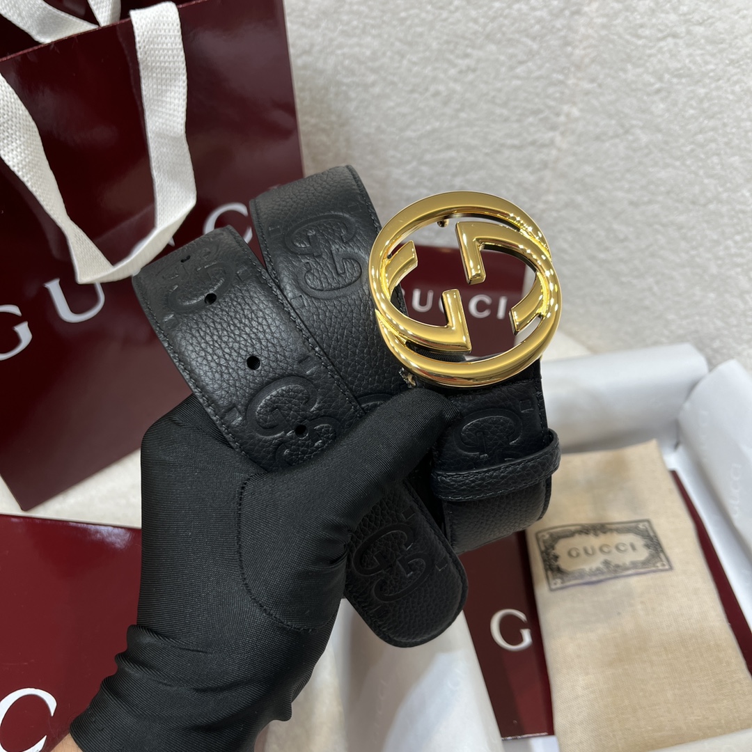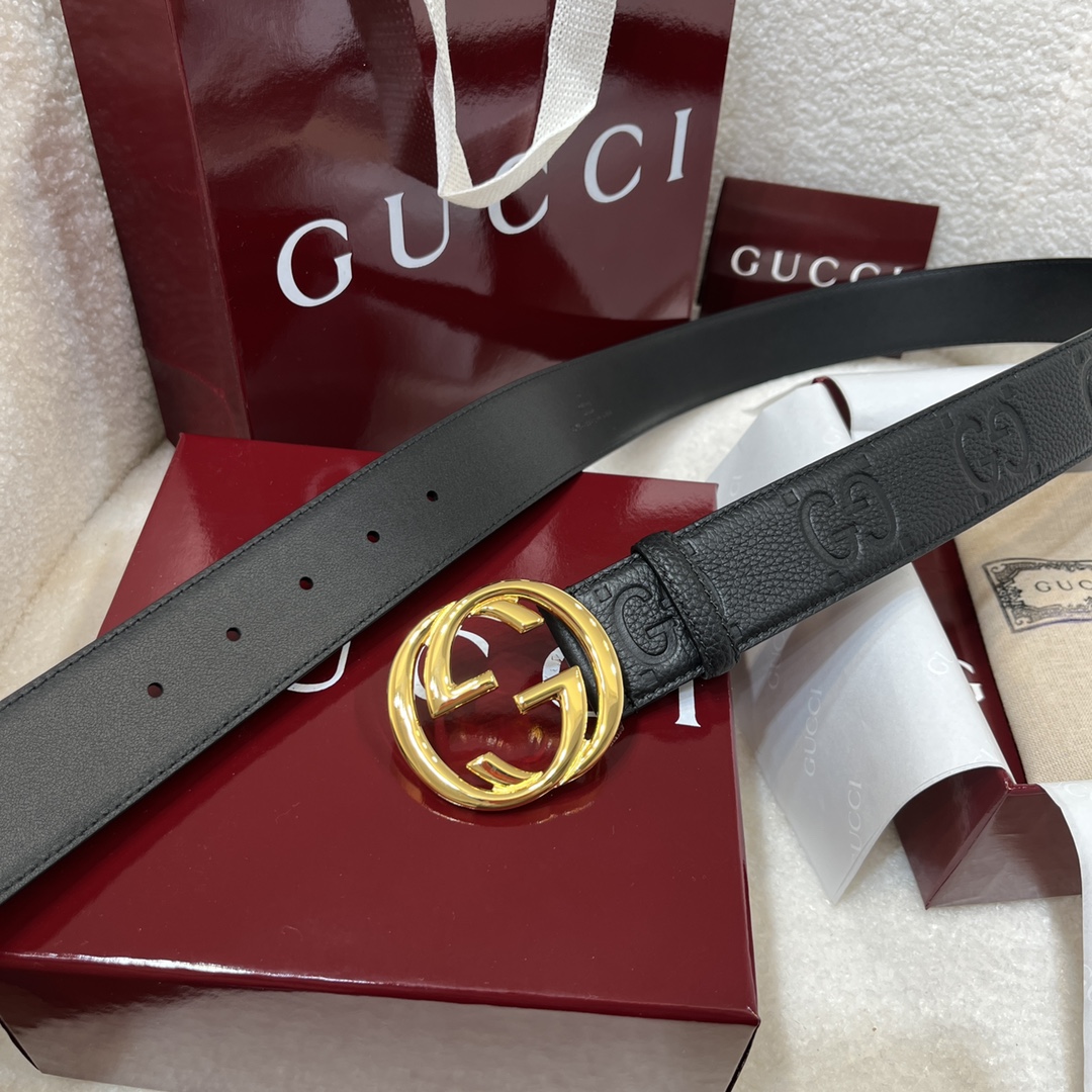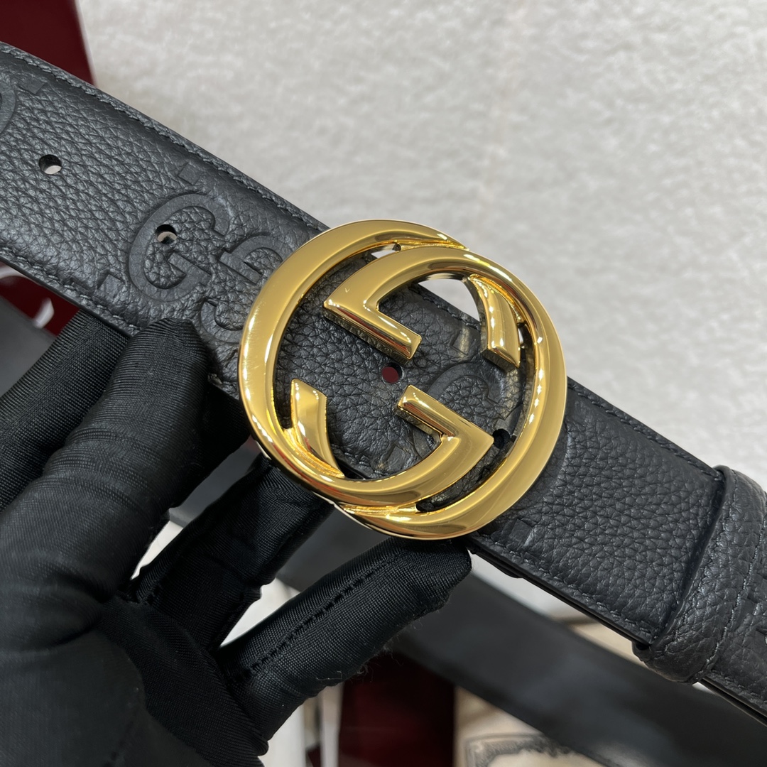 G's top-tier original single original version reissue production width 4.0 integrates new ideas into the classic new style belt body imported lychee pattern pressed with double G logo original factory cowhide sole brand new mold-opening new buckle matches the counter P160
