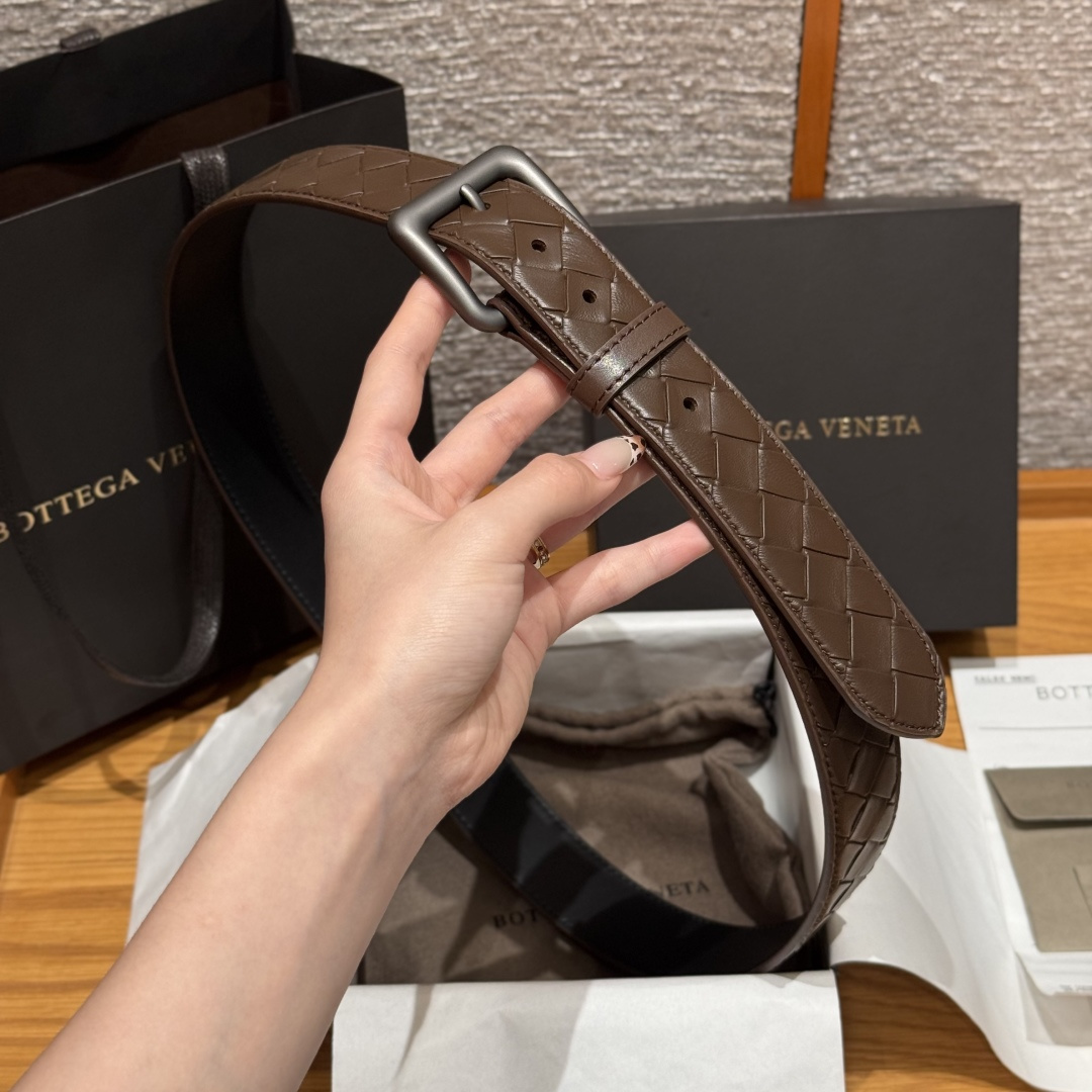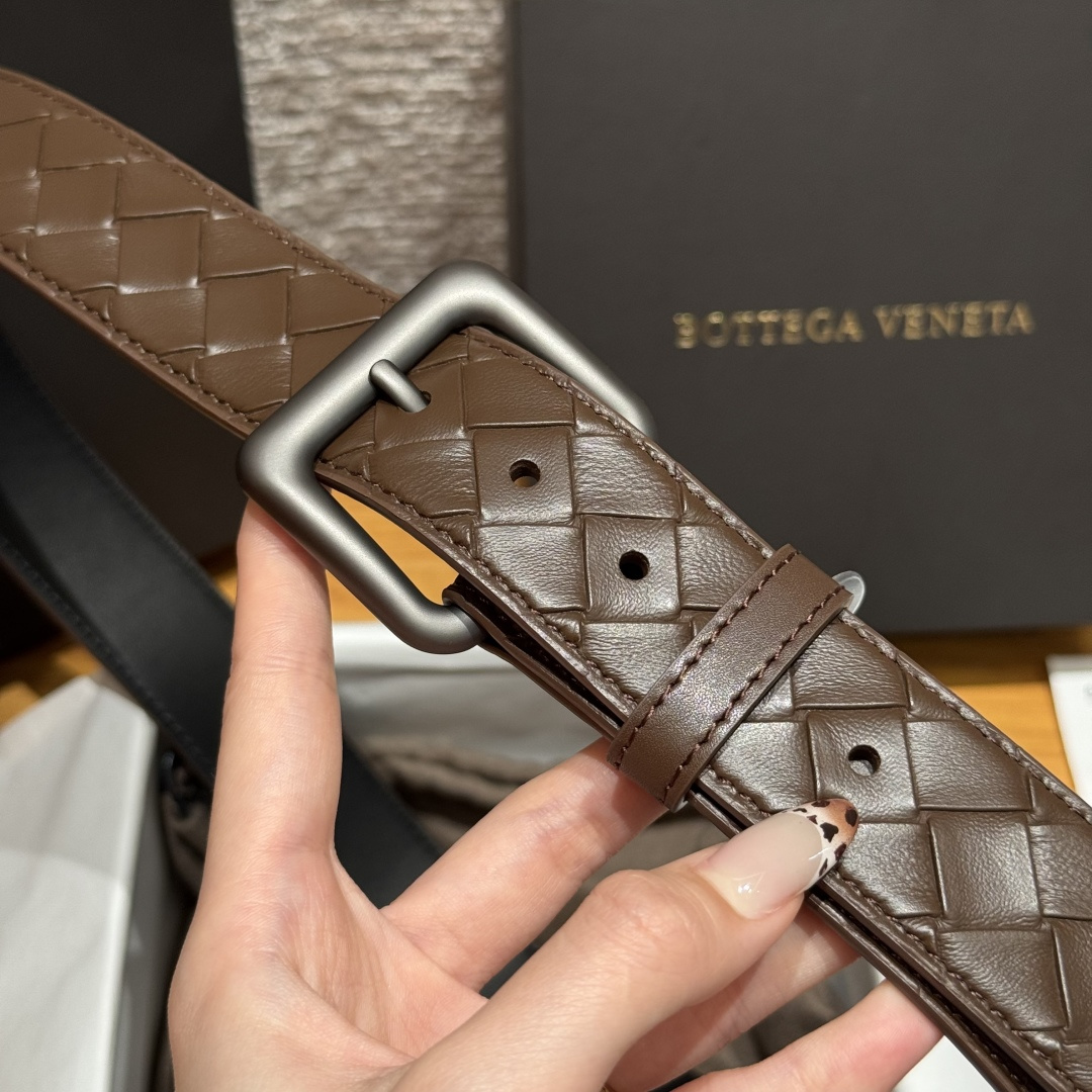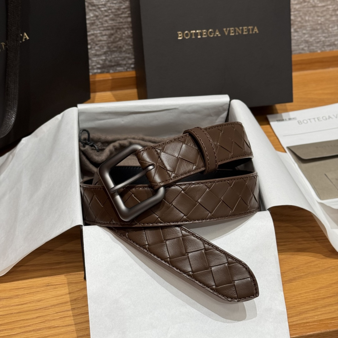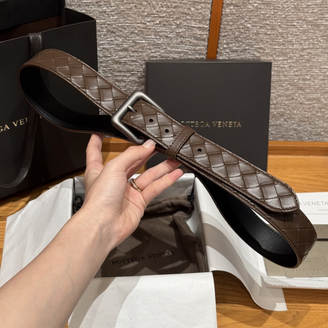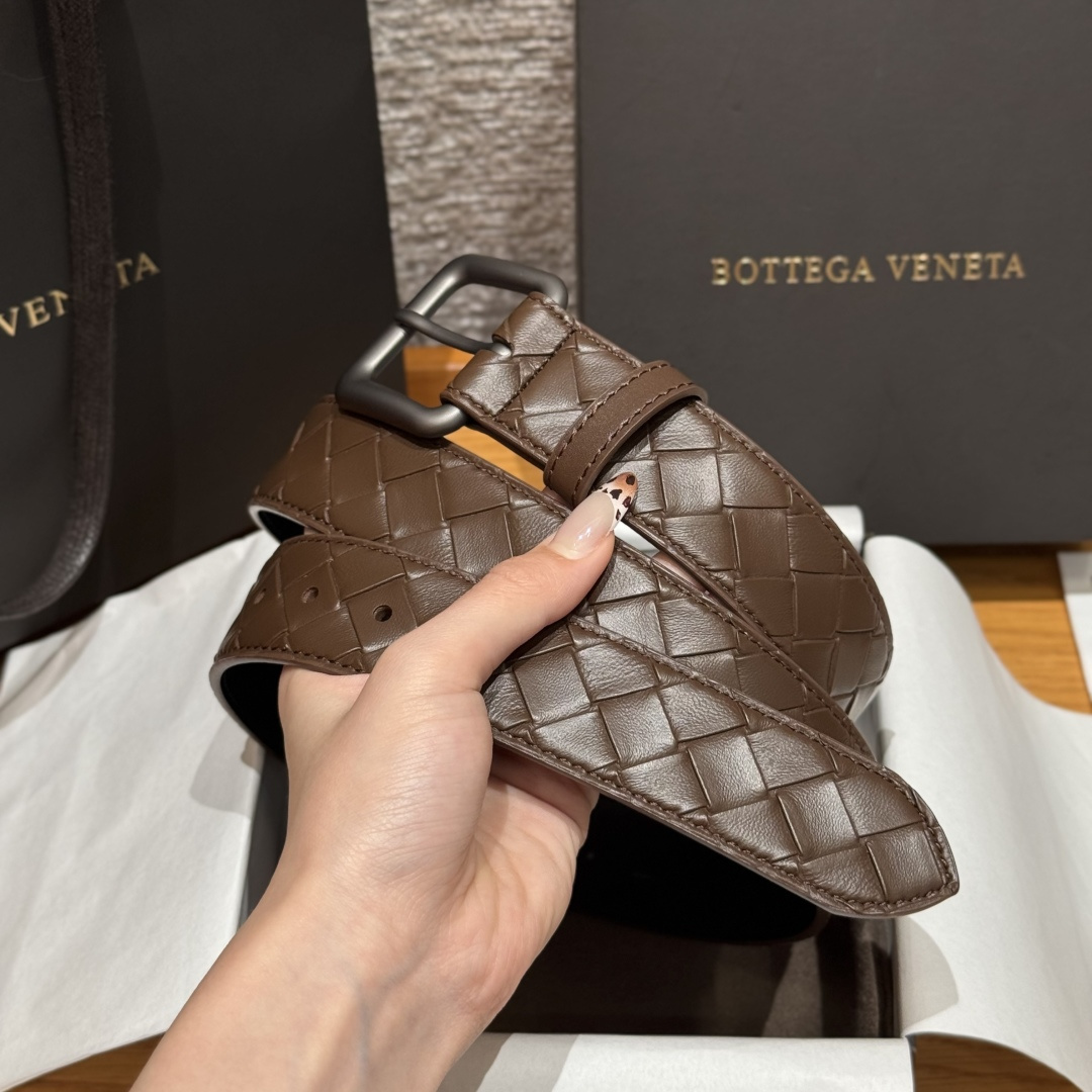 Oversized Intreccio woven belt, smooth leather backing, metal pin buckle, made of cow leather, a very versatile piece.