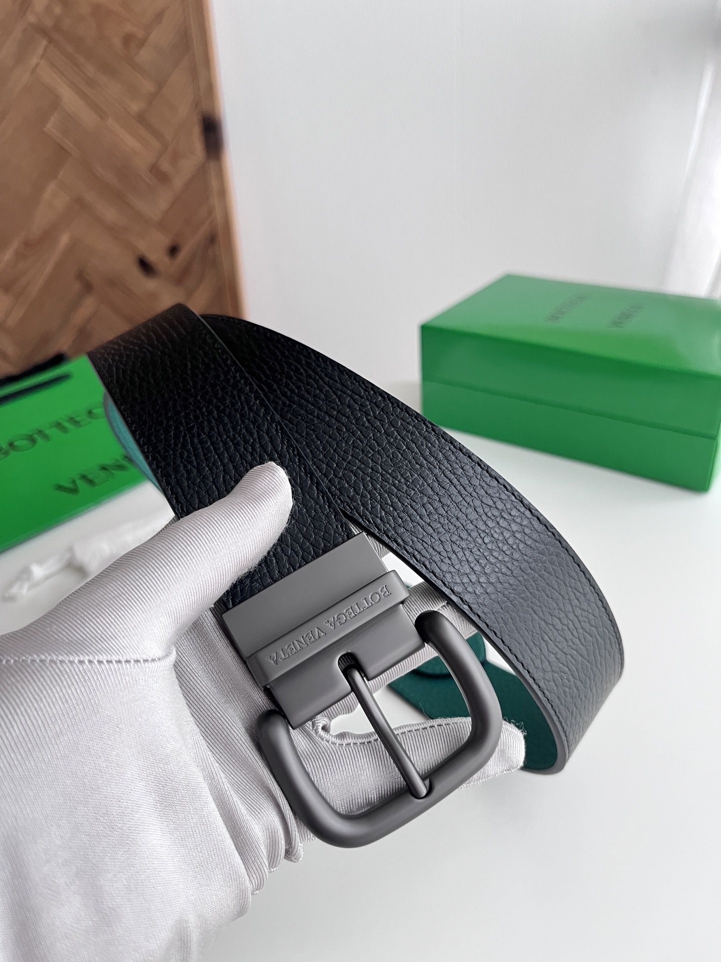 Bv 2025 latest edition men's wide flat belt, double-sided, double-sided Italian pebbled calfskin with rotatable vacuum gunmetal pin buckle, belt tapered tail design, hardware buckle front with logo, width 40MM