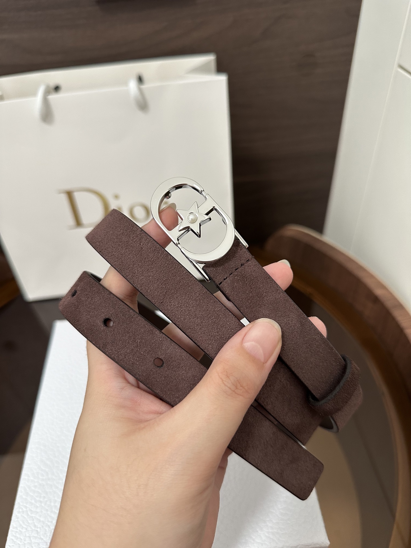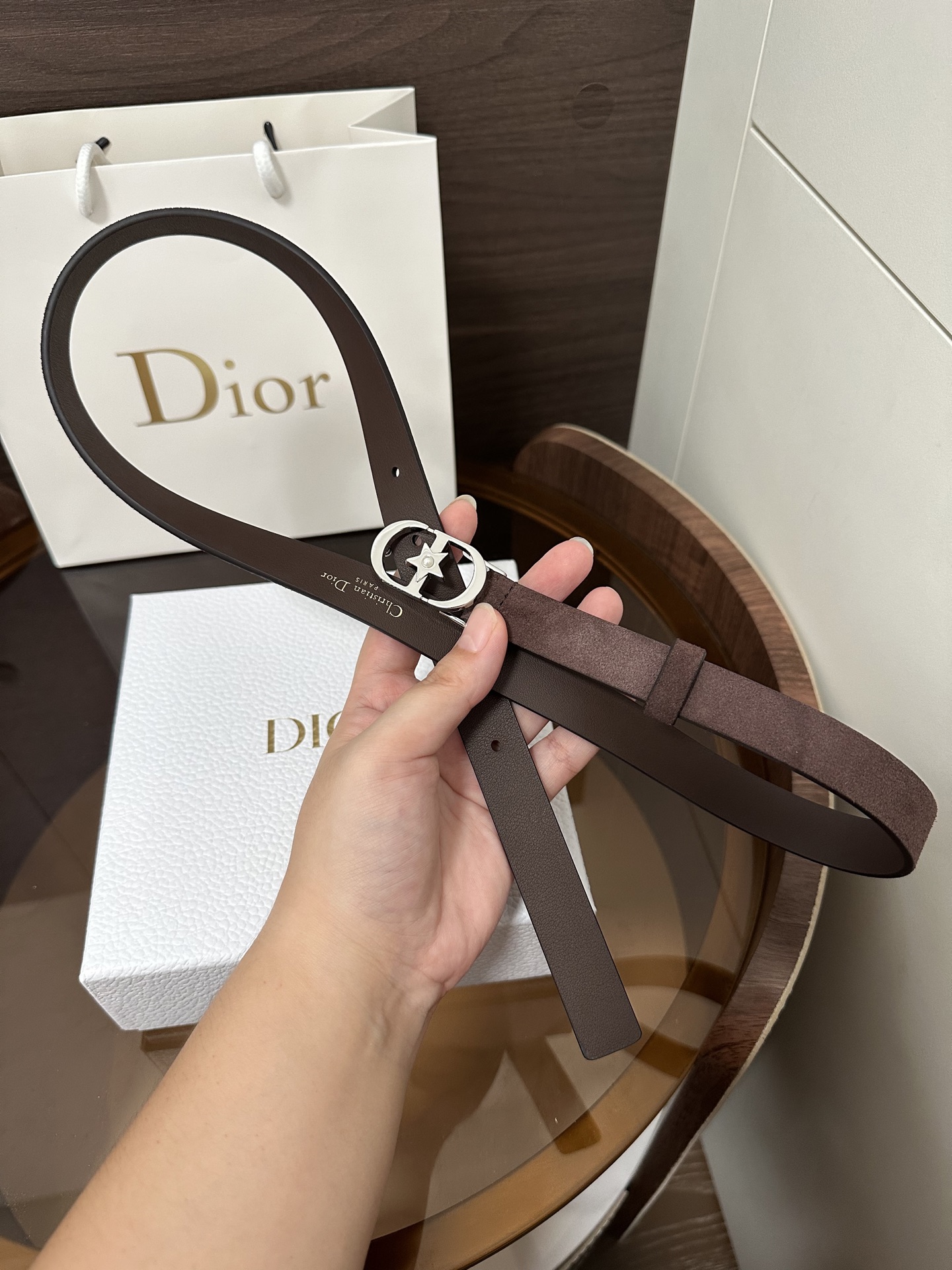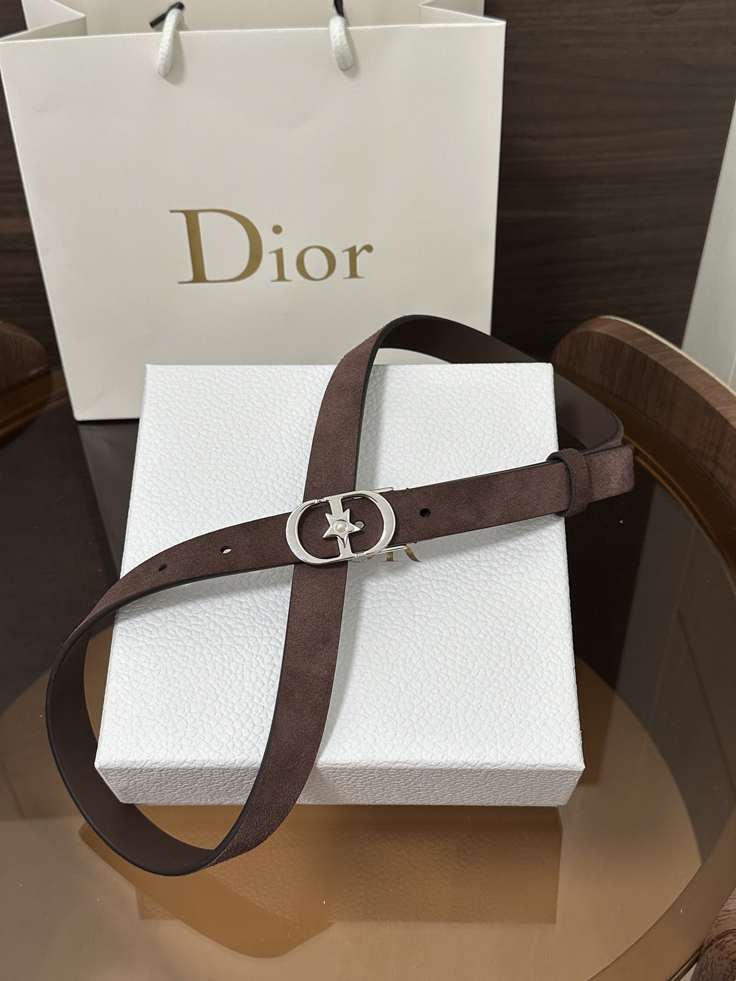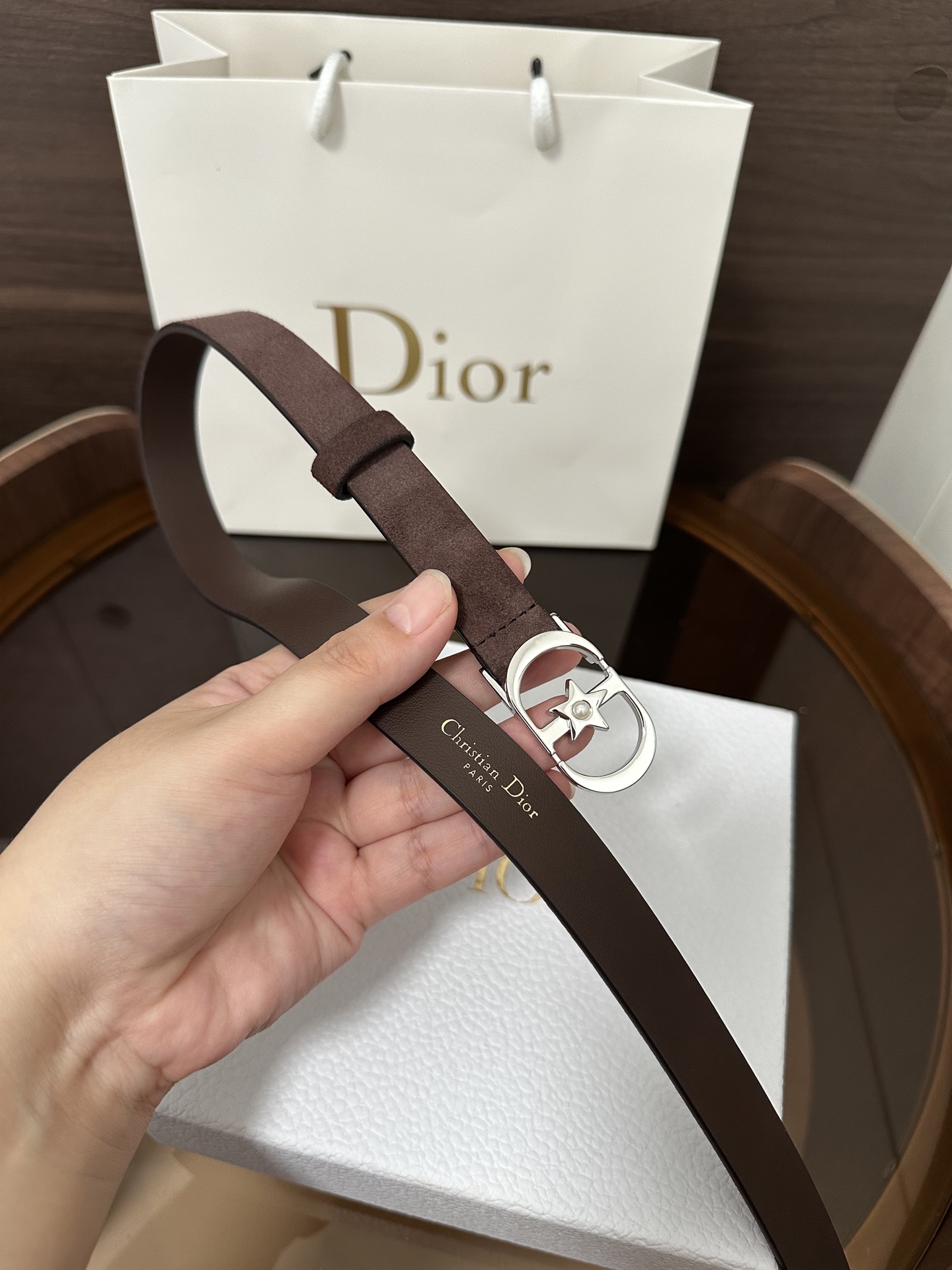 This Lucky 30 Montaigne Star belt is a new ready-to-wear piece from the Spring-Summer 2025 collection, highlighting one of the cherished symbols of Monsieur Dior. Meticulously crafted from smooth calfskin, it features a glossy gold-finished metal CD buckle, adorned with Dior's lucky star for elevated style, accented in the center with white resin beads.