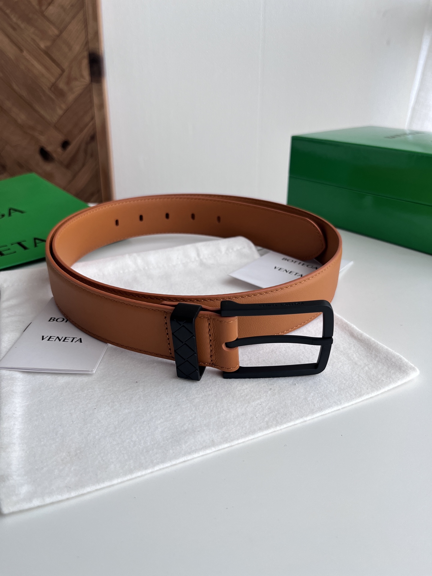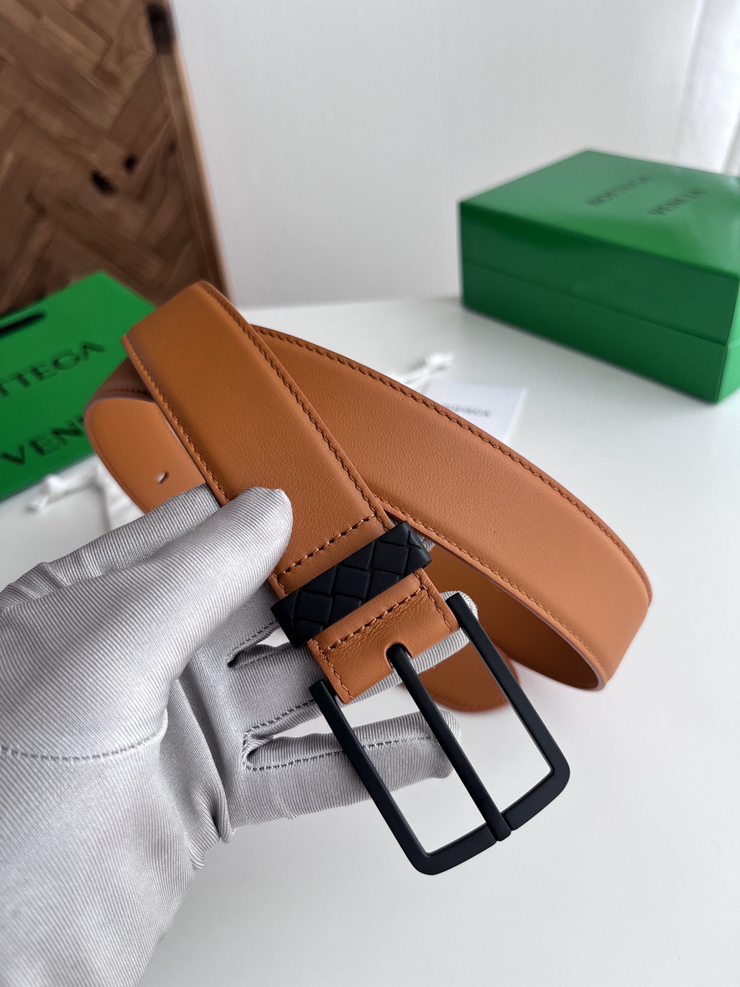 Bv 2025 men's belt, double-sided Italian calfskin, vintage silver buckle, 35mm width.