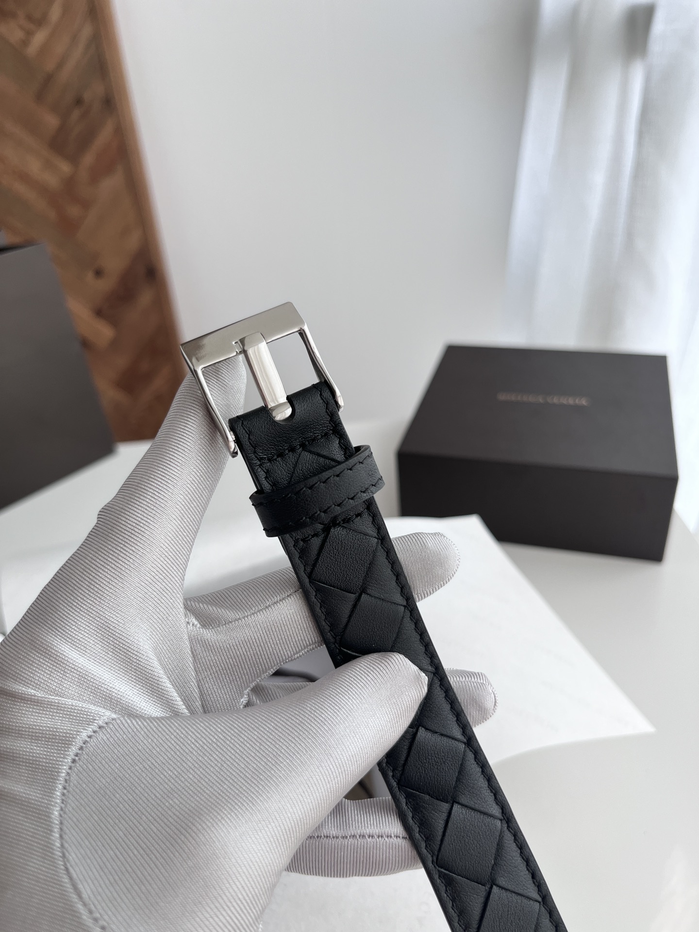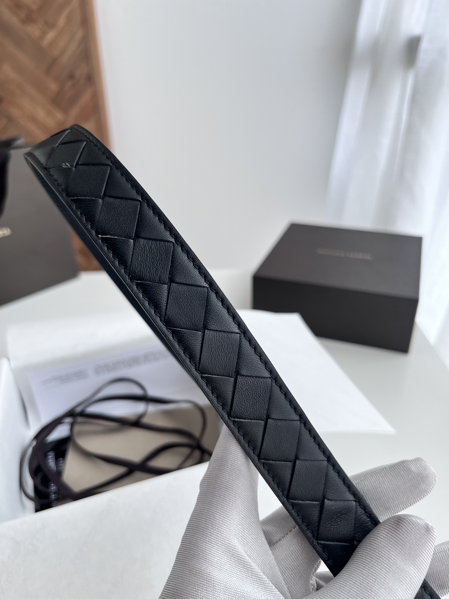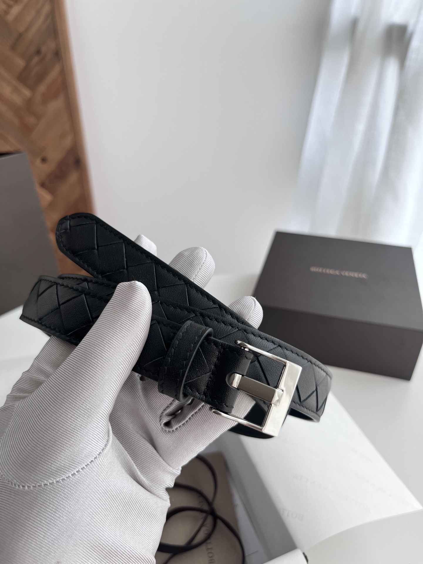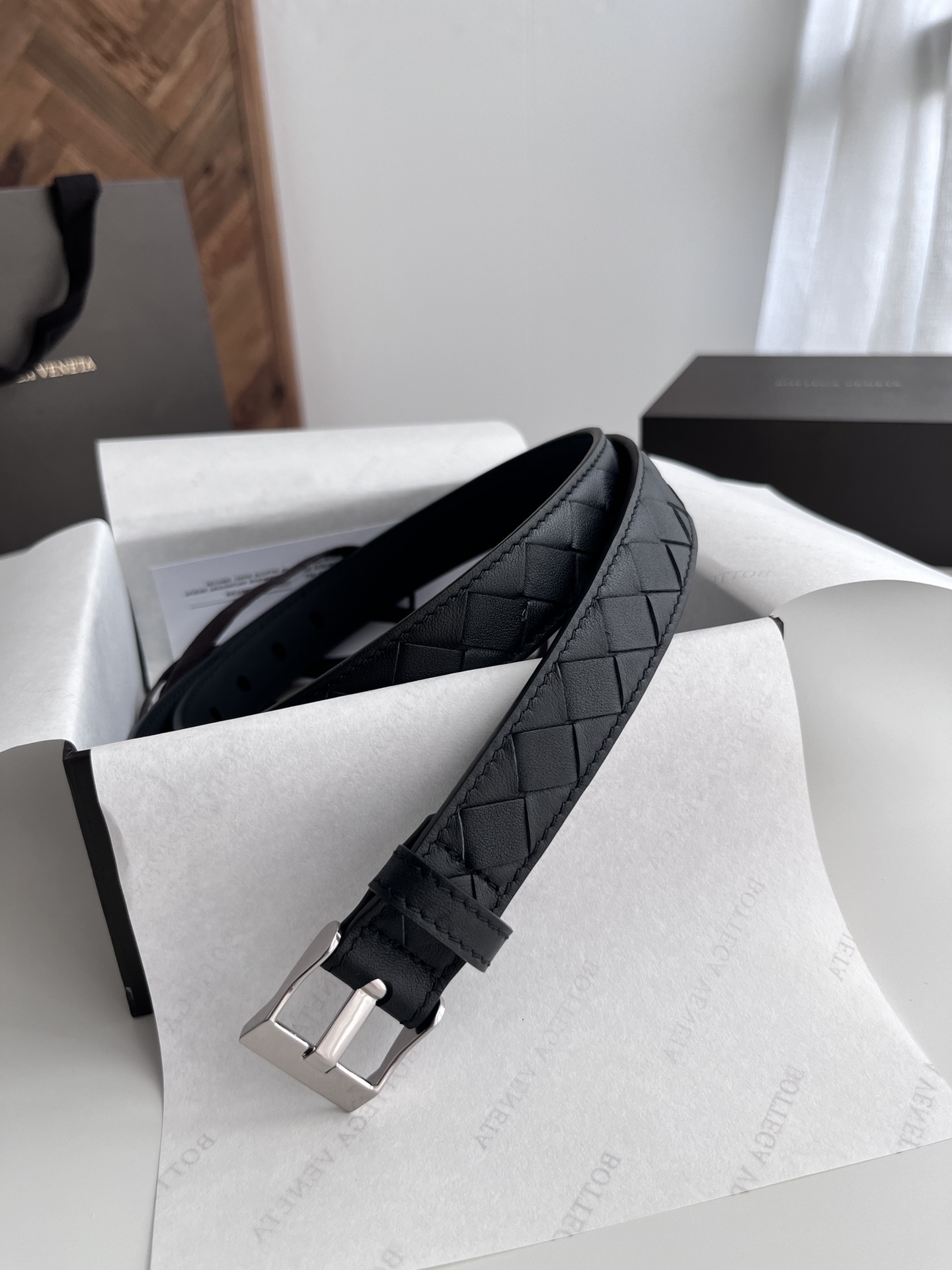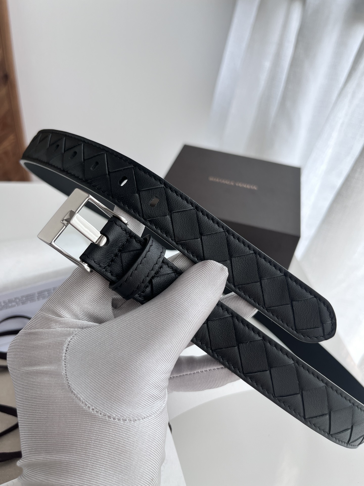 Bv latest women's narrow woven belt pure handwoven intreccio large grid weaving double-sided Italian calfskin with buckle design slightly retro silver buckle width 25MM color: black