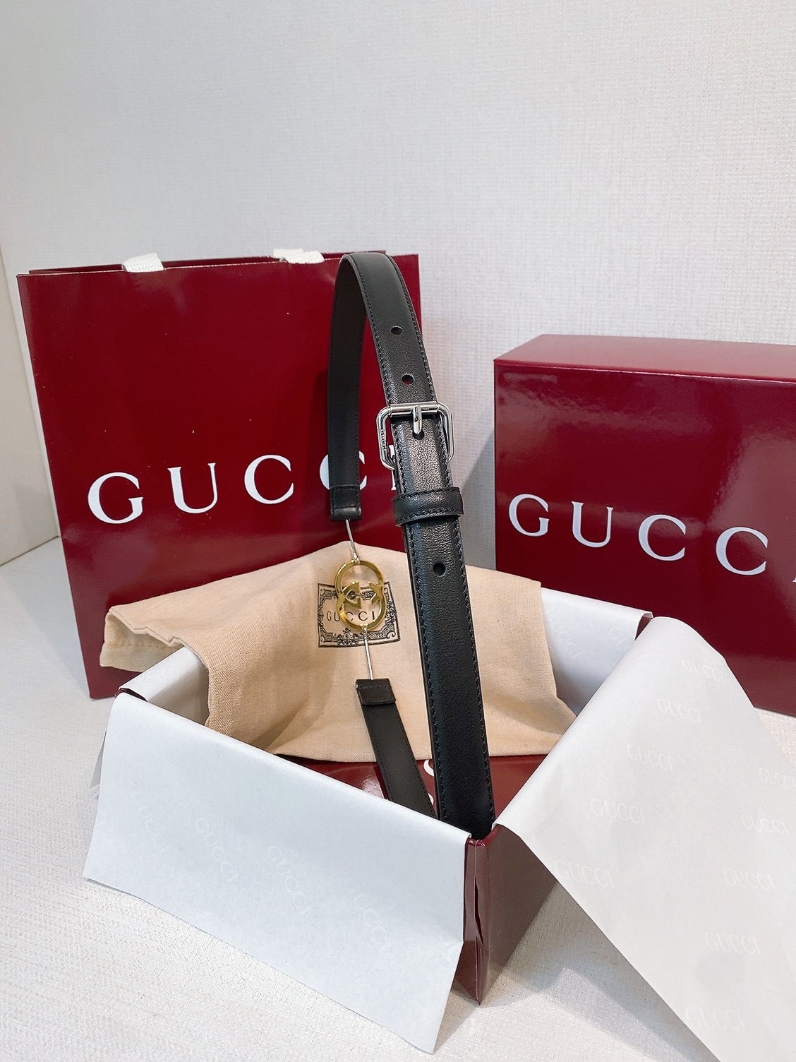 Classic leather goods are reinterpreted with new details, adding a fresh and stylish touch. This versatile belt is crafted from leather and features an elegant oval buckle, with double G details for an eye-catching accent.