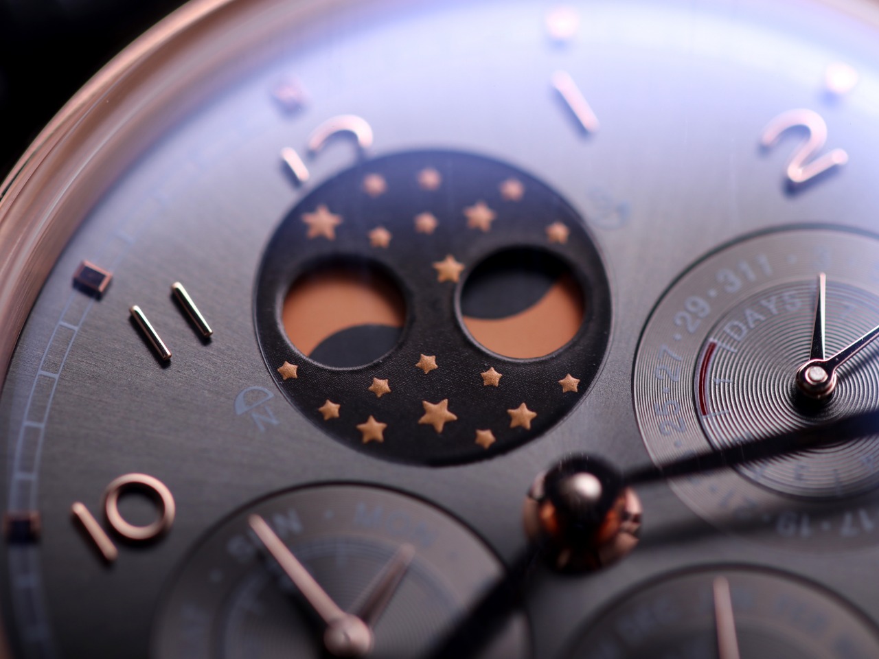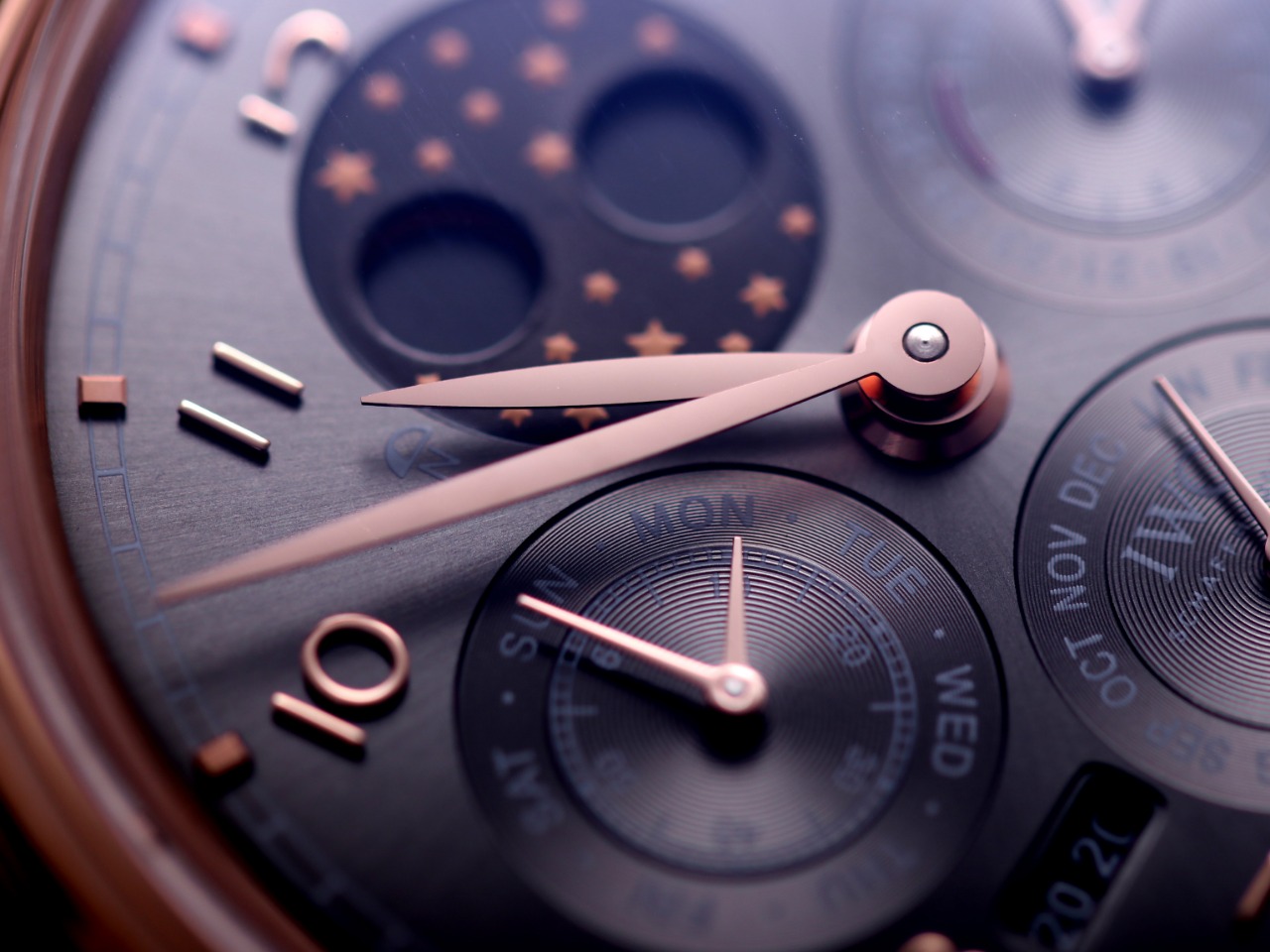 1. 【Perpetual Calendar】—The perpetual calendar year at the 8 o'clock position operates normally (2017-2024, the year module can be replaced free of charge in 2024). Like the original, it can be adjusted via hidden buttons on the case, and it is superior to the original as it allows reverse adjustment (the original year cannot be reversed; if adjusted incorrectly, it requires paid repairs).