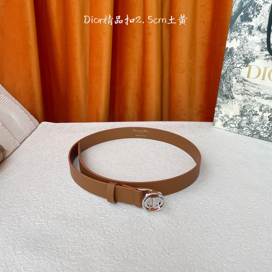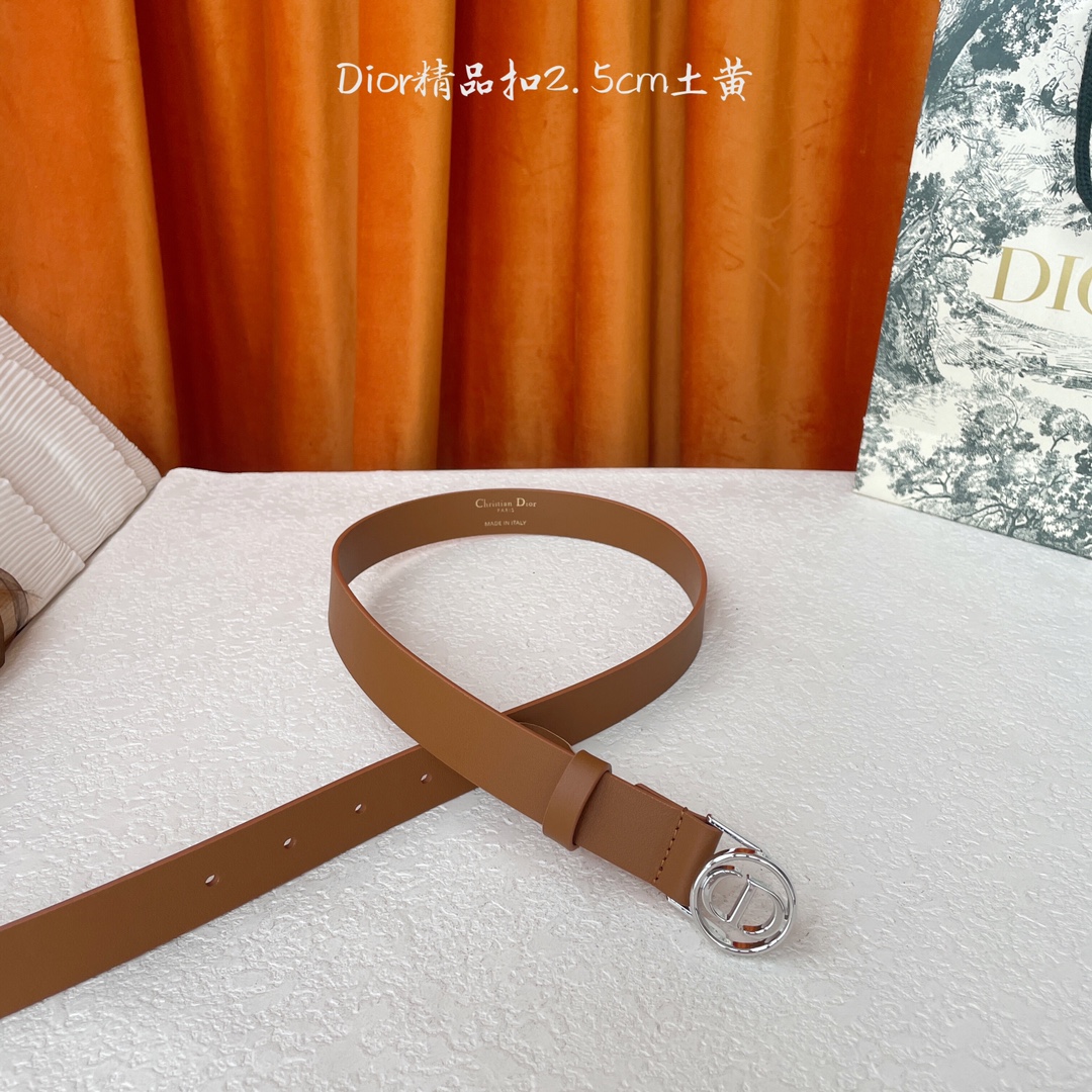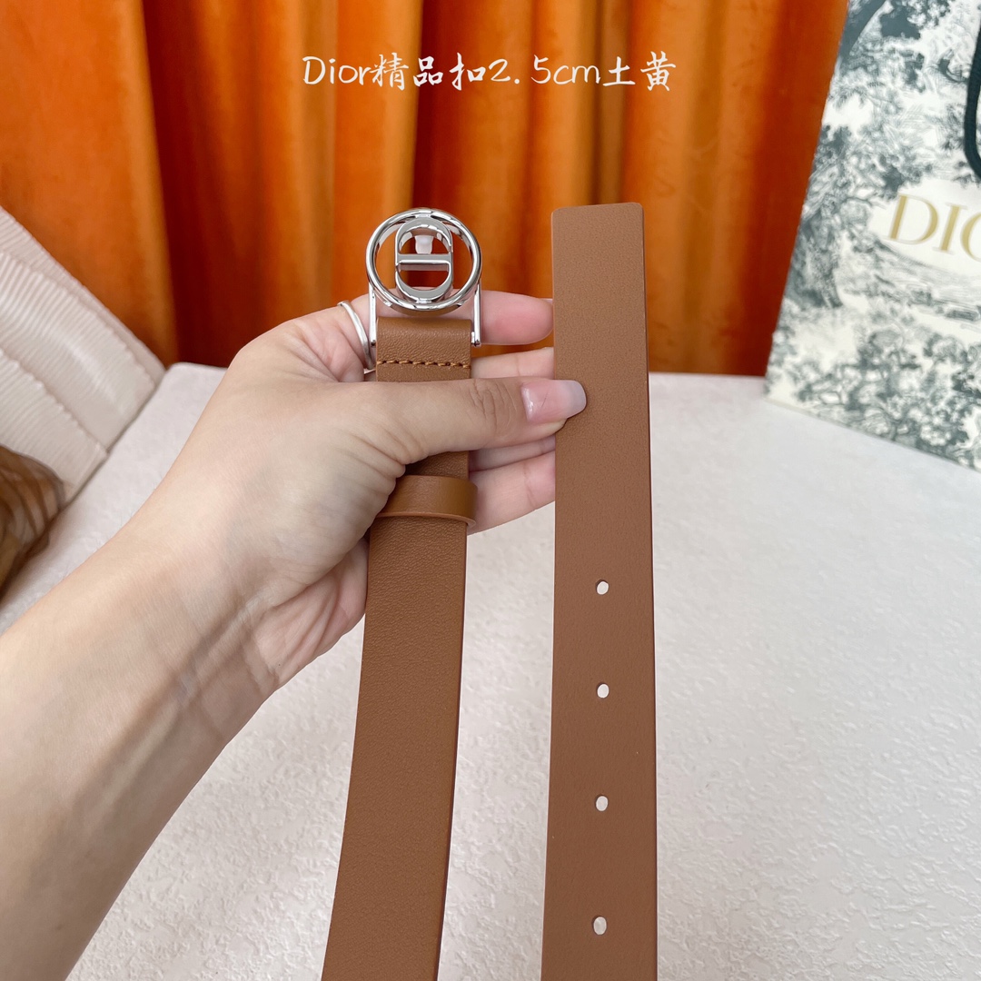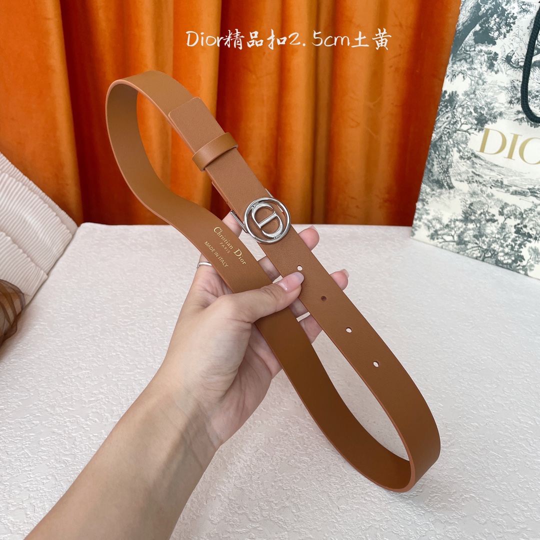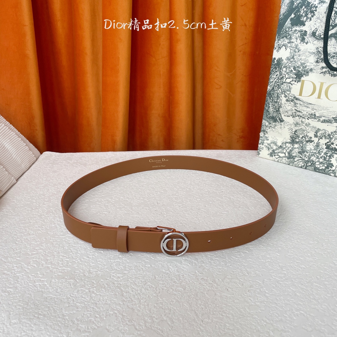 The Dior belt is meticulously crafted from smooth calfskin and other materials, featuring a glossy gold-finished metal CD buckle that enhances its style. It can be paired with classic blazers, dresses, or jeans to showcase a timeless and elegant temperament. Width 2.5cm