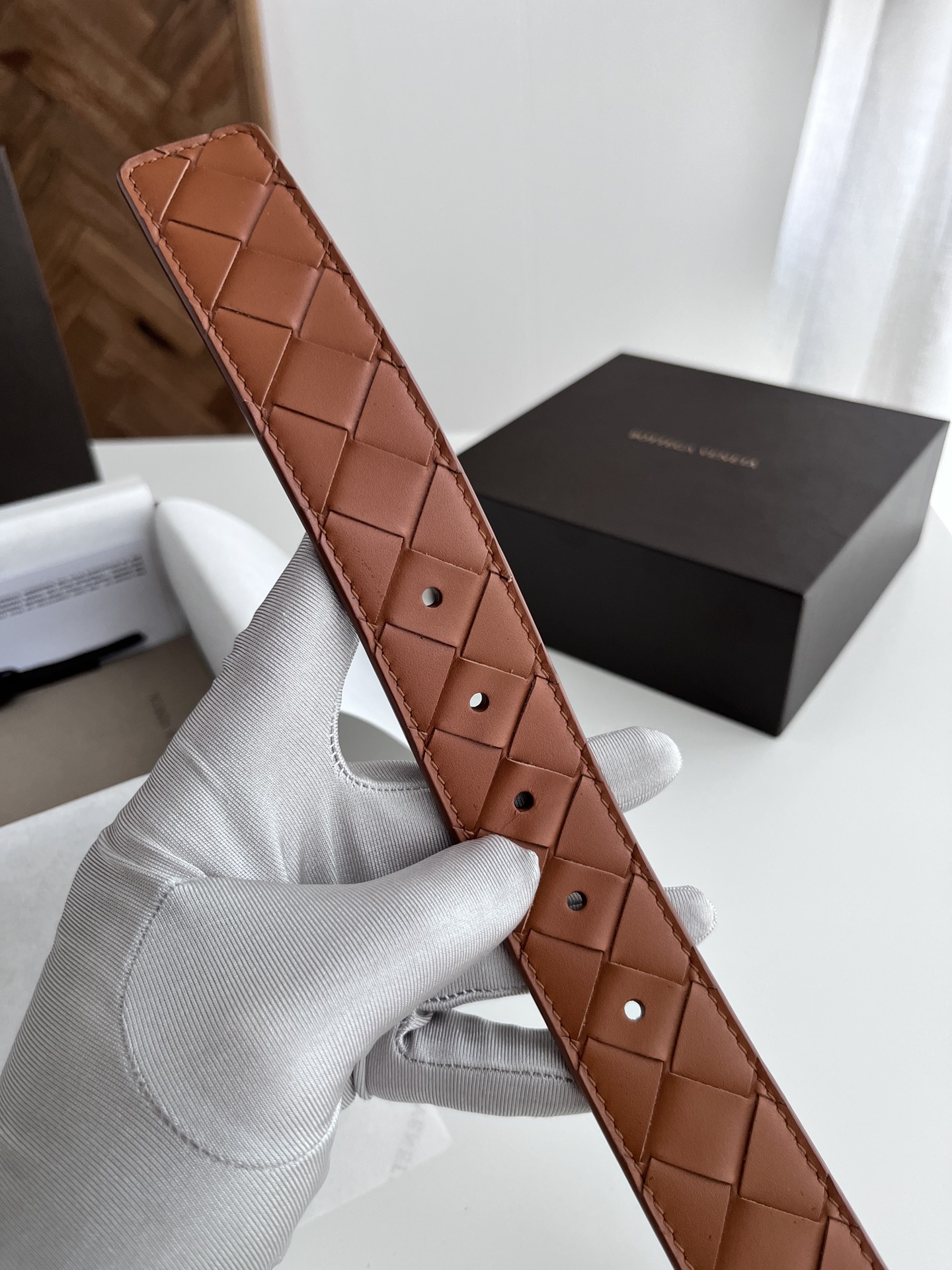 Bv latest men's woven belt, reversible, pure handmade intreccio large grid weaving, double-sided Italian calfskin with slightly retro silver rotating buckle, width 35MM, color: khaki plus coffee color