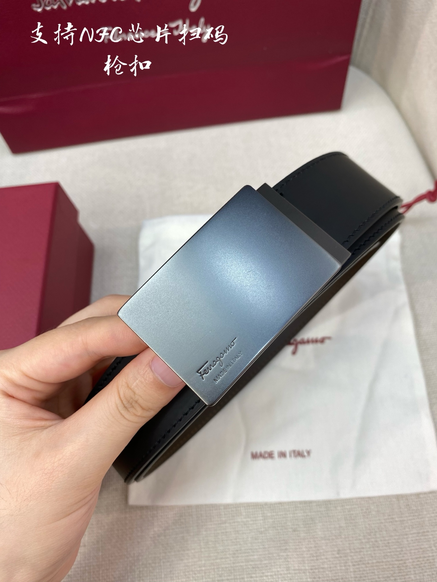 Gucci black leather, 4.0 cm, French materials, top quality.