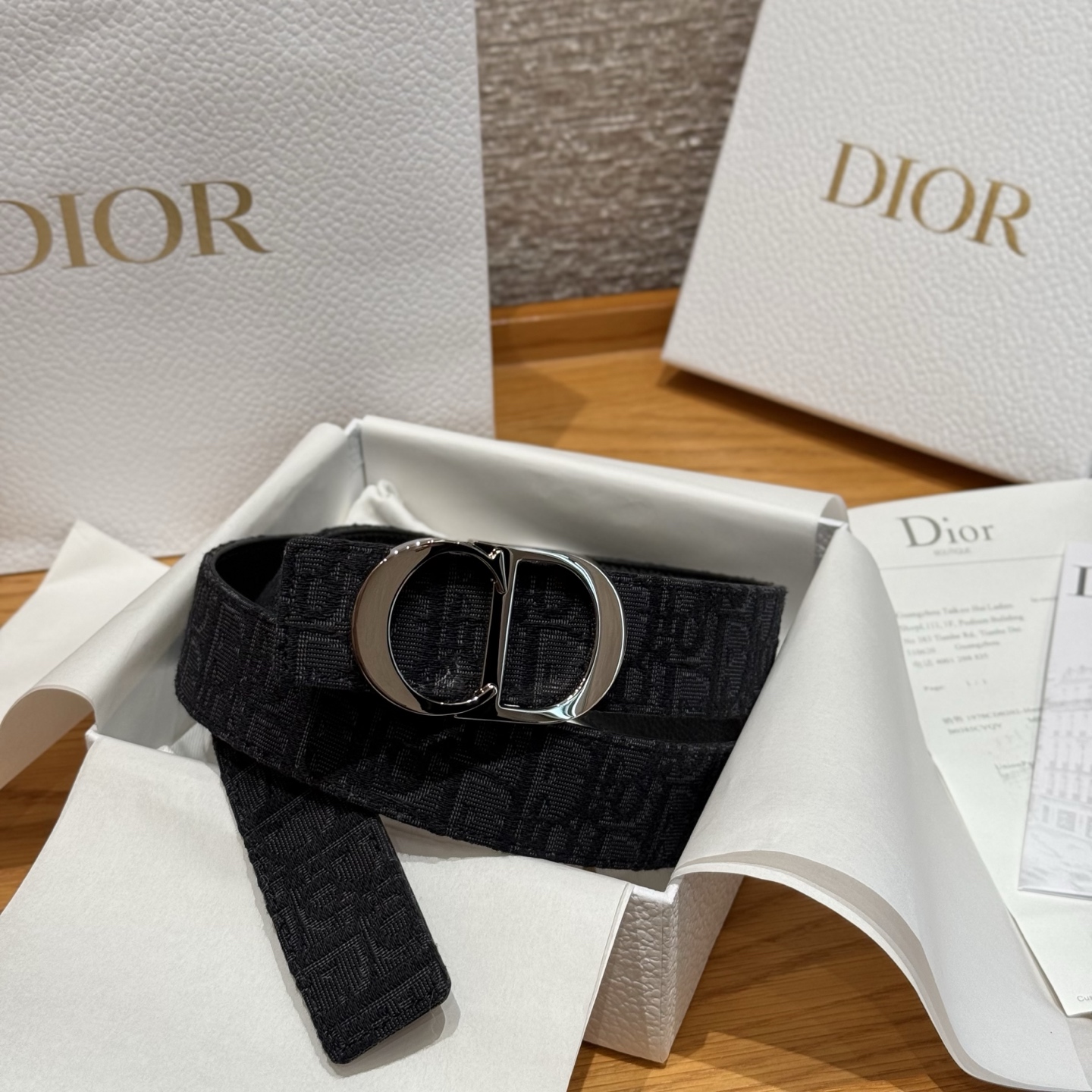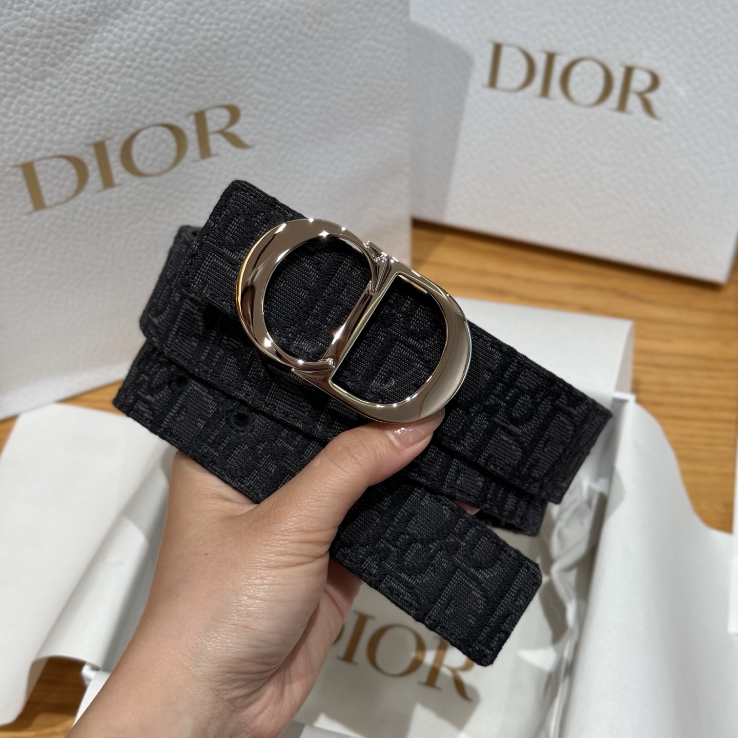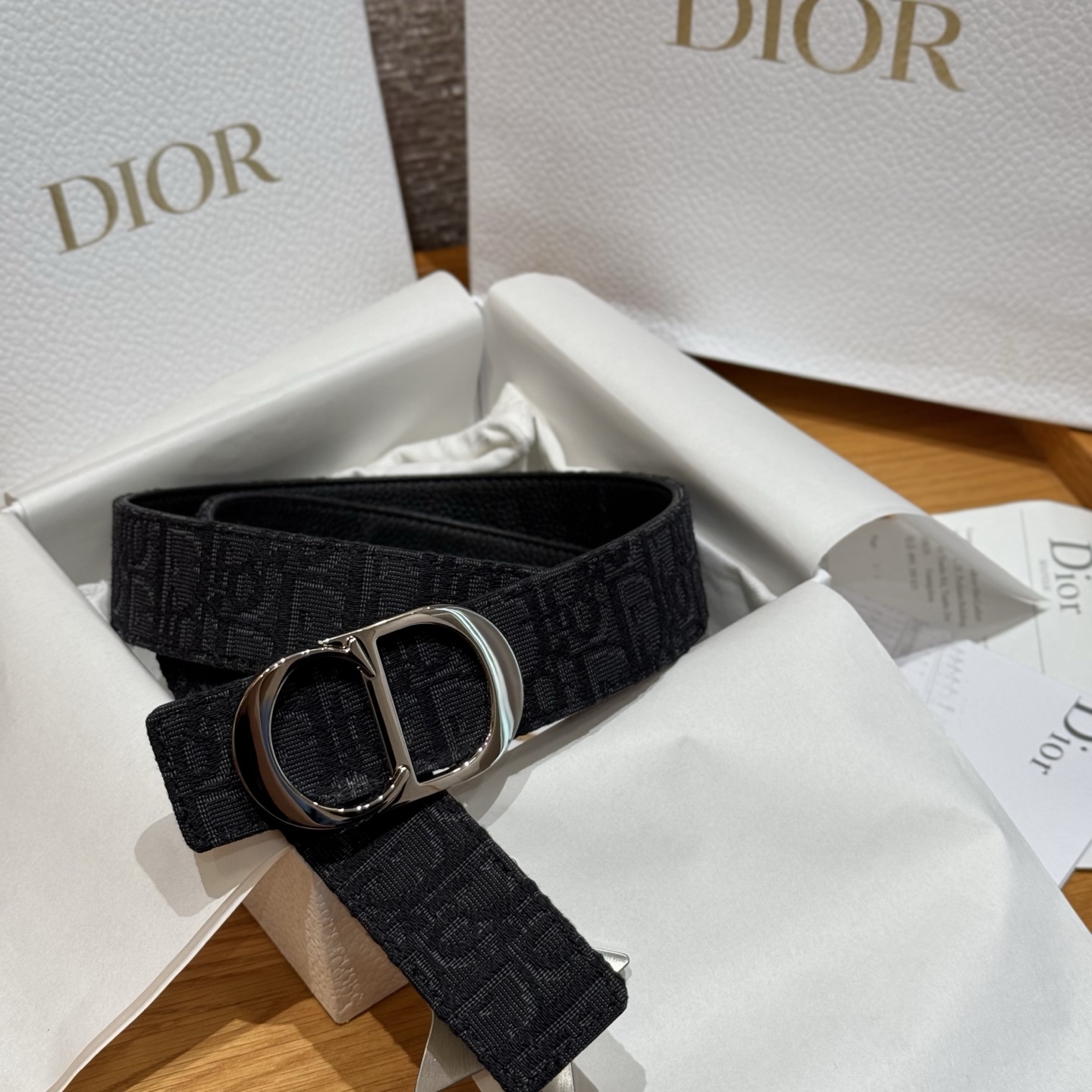 This belt buckle features a "CD" logo design, adorned on one side with a black super mini Oblique print, and on the other side with grained calfskin in the same tone. The belt length is adjustable, crafted with metal-coated brass for a striking effect. It can be freely paired with various 3.5cm belt buckles to enhance style and create an elegant, refined look.