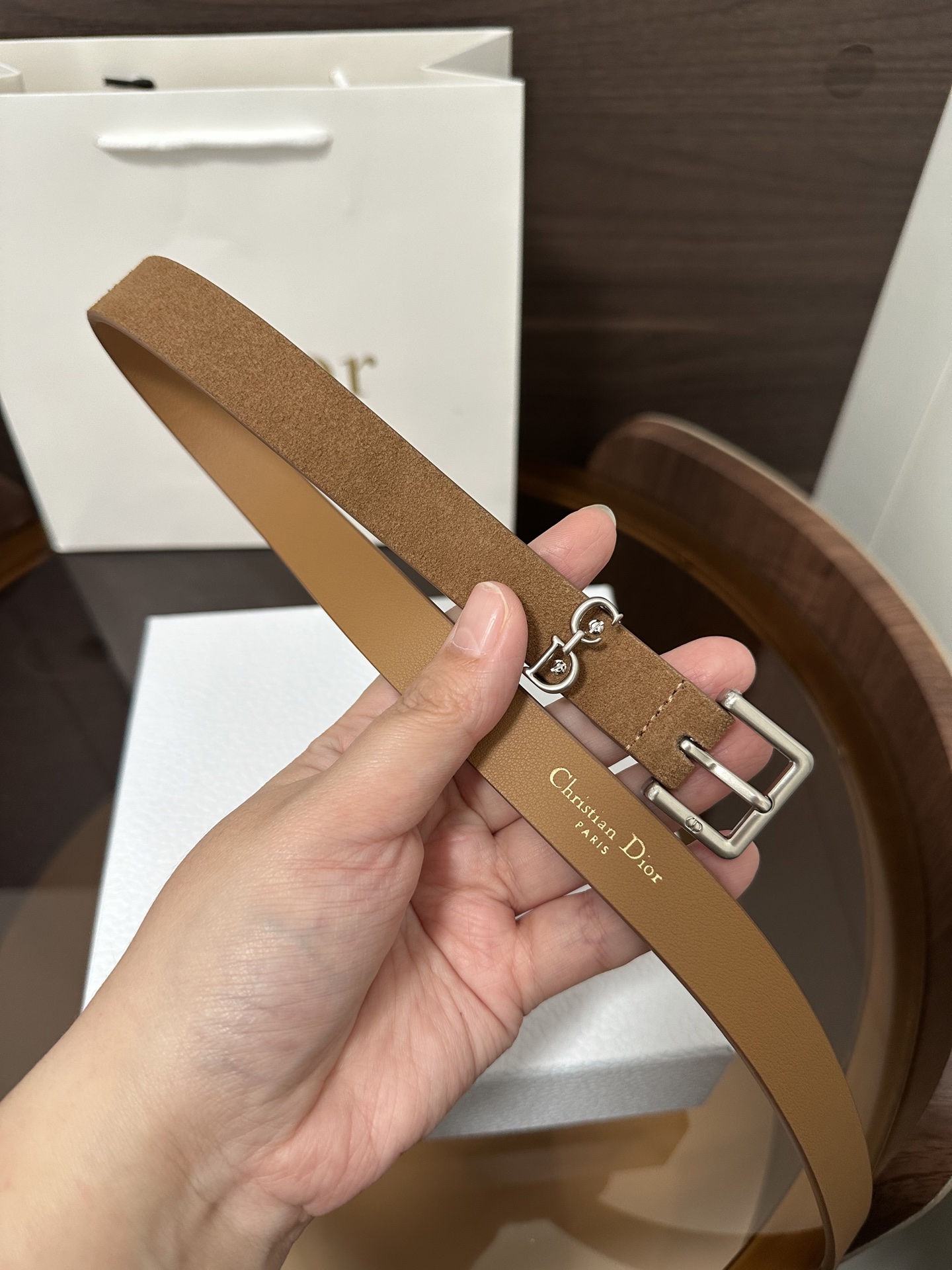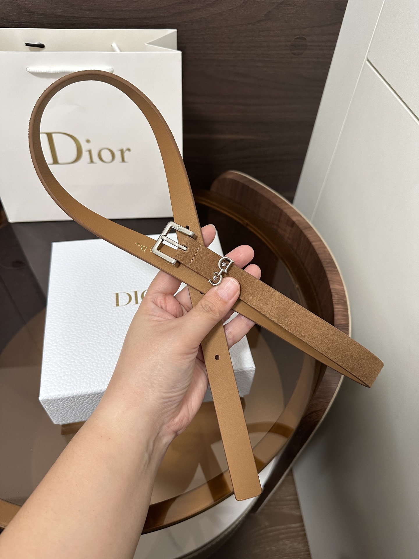 This Saddle Loop belt is a new item from the Fall 2025 collection, paying homage to the classic Dior bag of the same name. Meticulously crafted from suede calfskin, it features a CD pin buckle and is adorned with a CD logo belt loop to enhance the style,致敬 the Saddle motif. It can be paired with classic blazers, dresses, or jeans to showcase an elegant and timeless气质.