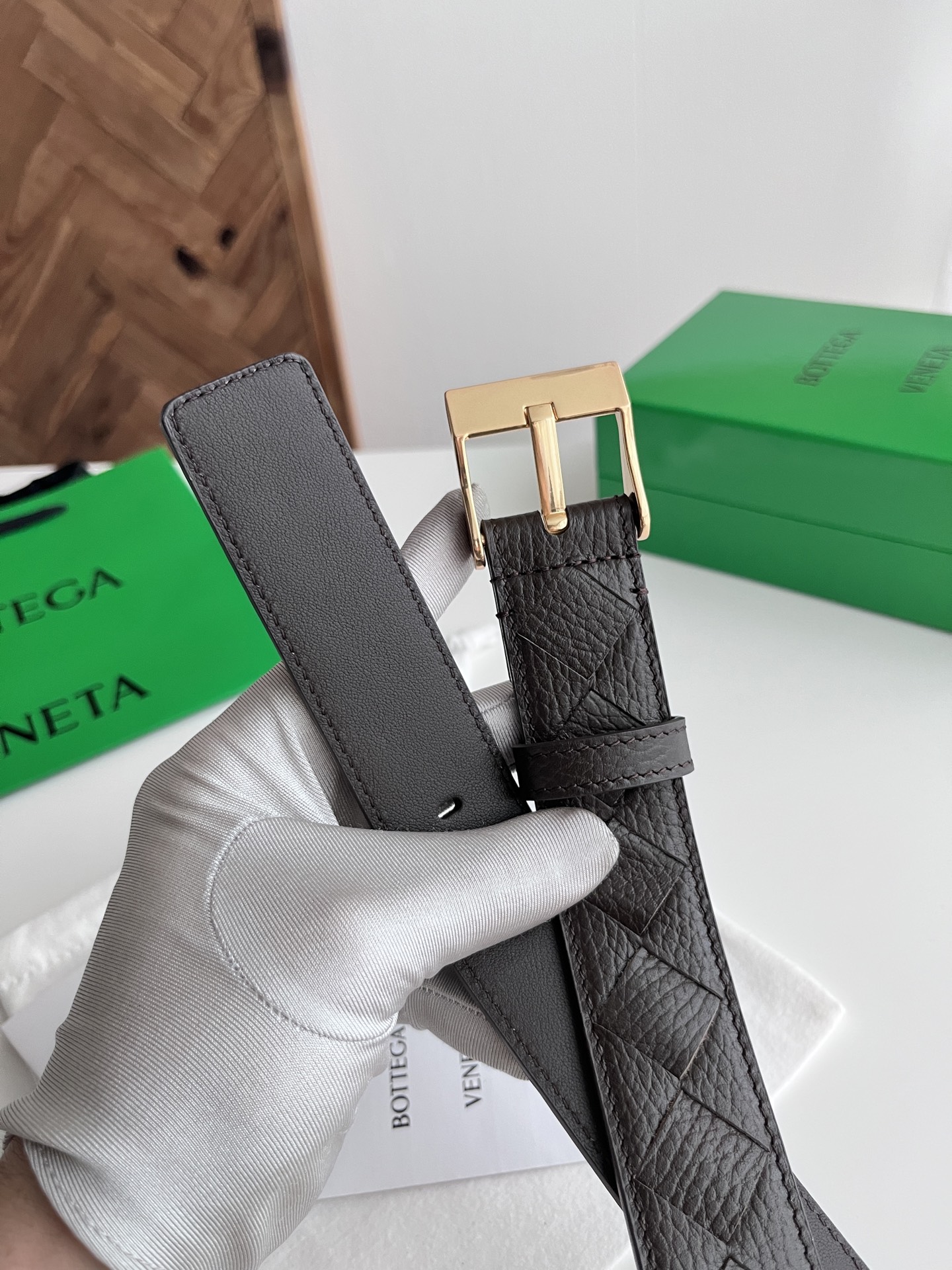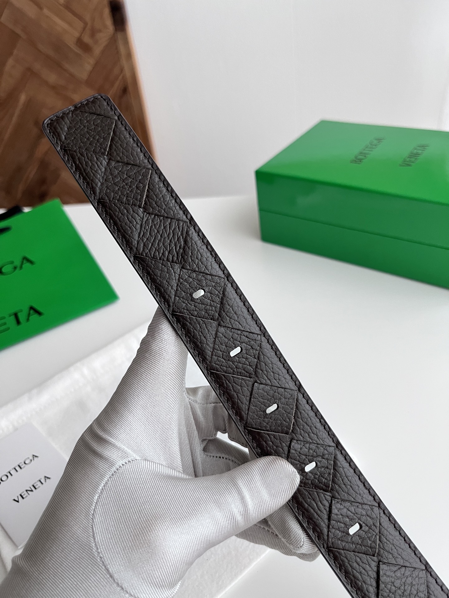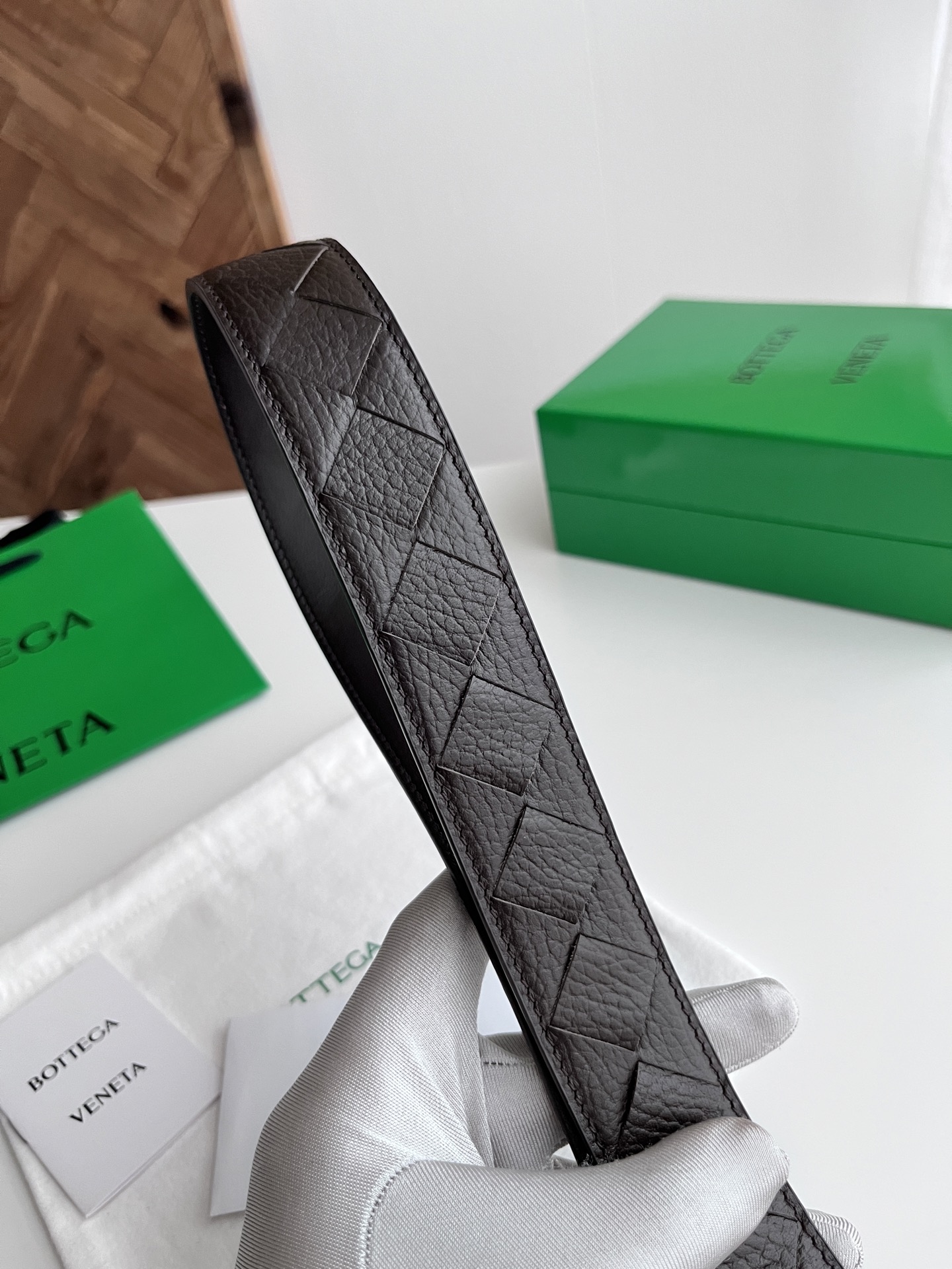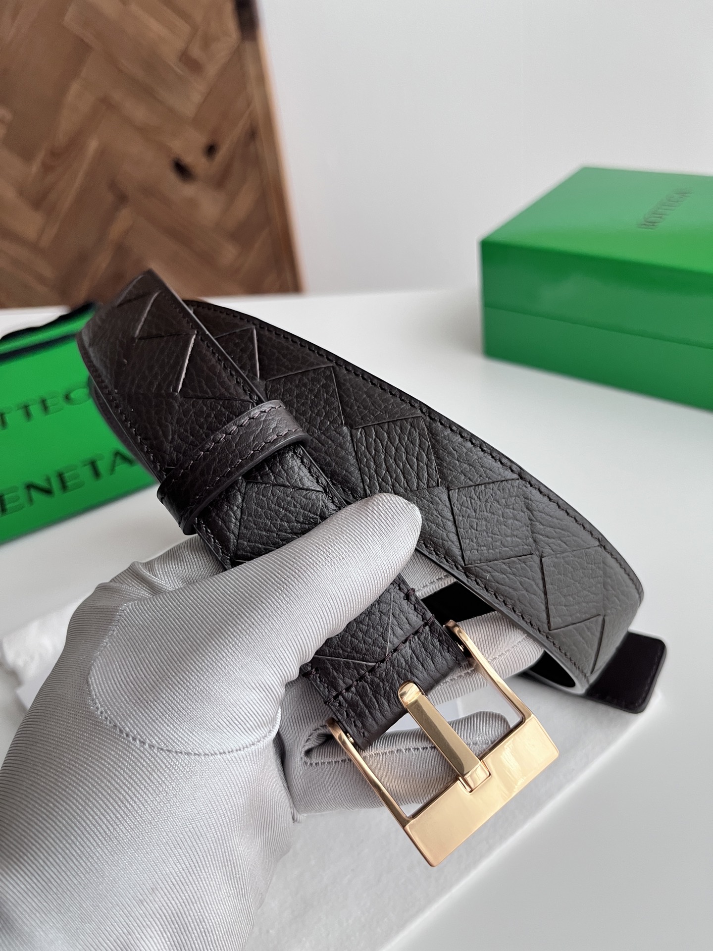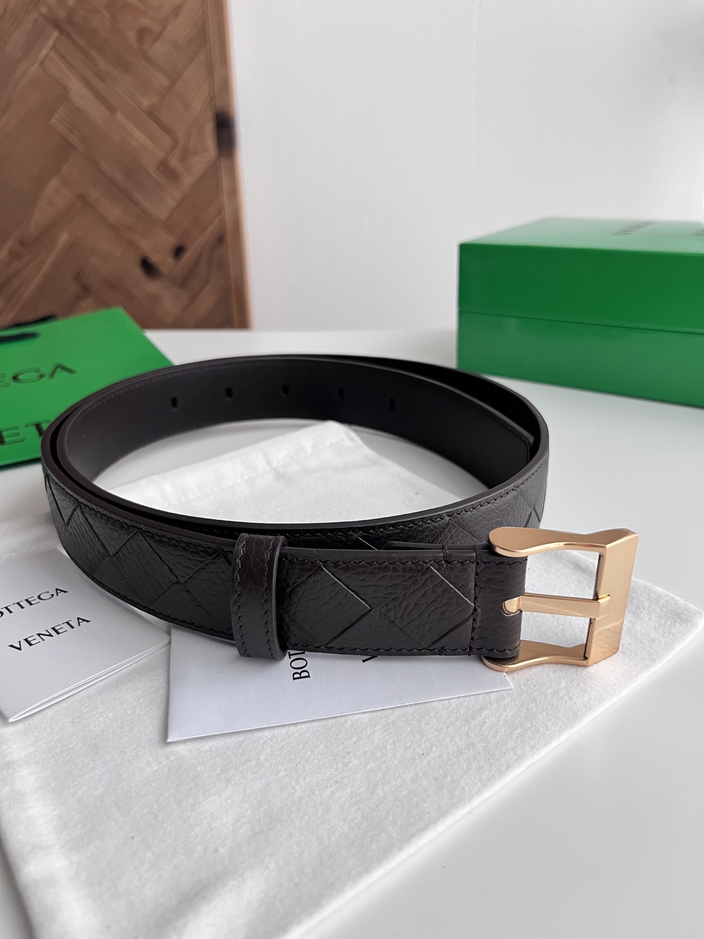 BV 2025 New Men's Belt Fully Handcrafted Large Intreccio Weave Italian Pebbled Calfskin Paired with New Buckle Design Vacuum Gunmetal Pin Buckle Belt Width 3.5cm