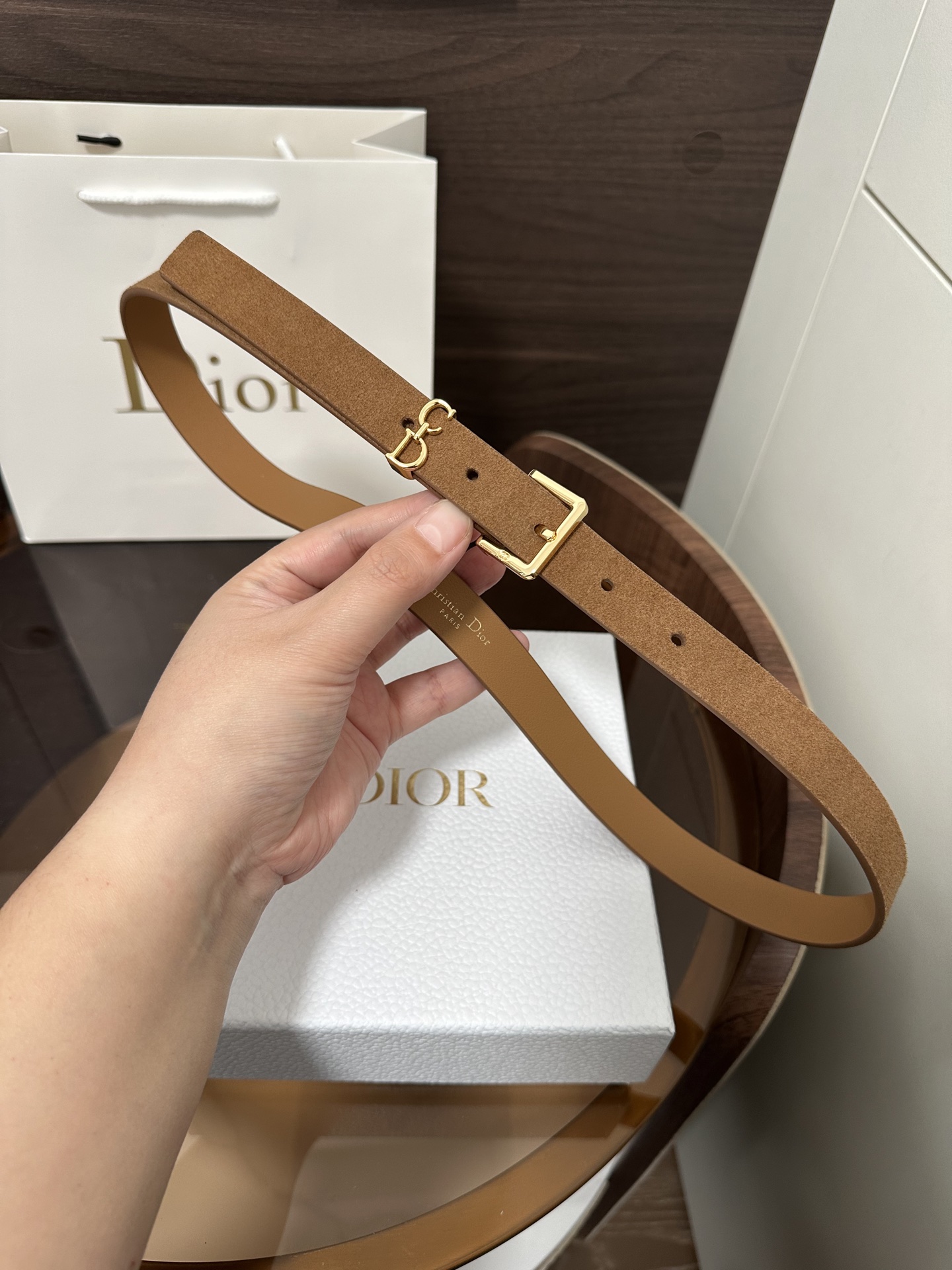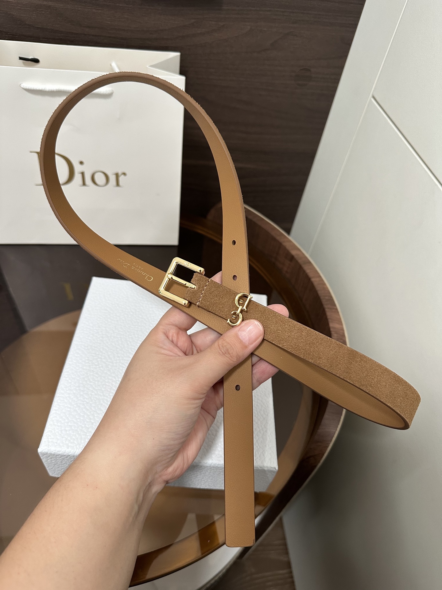 This Saddle Loop belt is a new item from the Fall 2025 collection, paying homage to the classic Dior bag of the same name. Meticulously crafted from suede calfskin, it features a CD pin buckle and is adorned with a CD logo belt loop to enhance the style,致敬 the Saddle motif. It can be paired with classic blazers, dresses, or jeans to showcase an elegant and timeless气质.