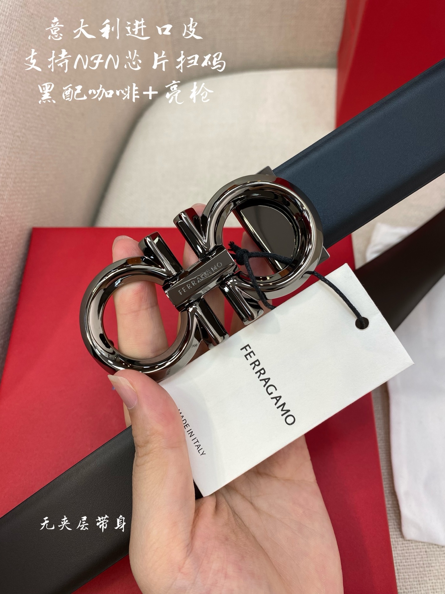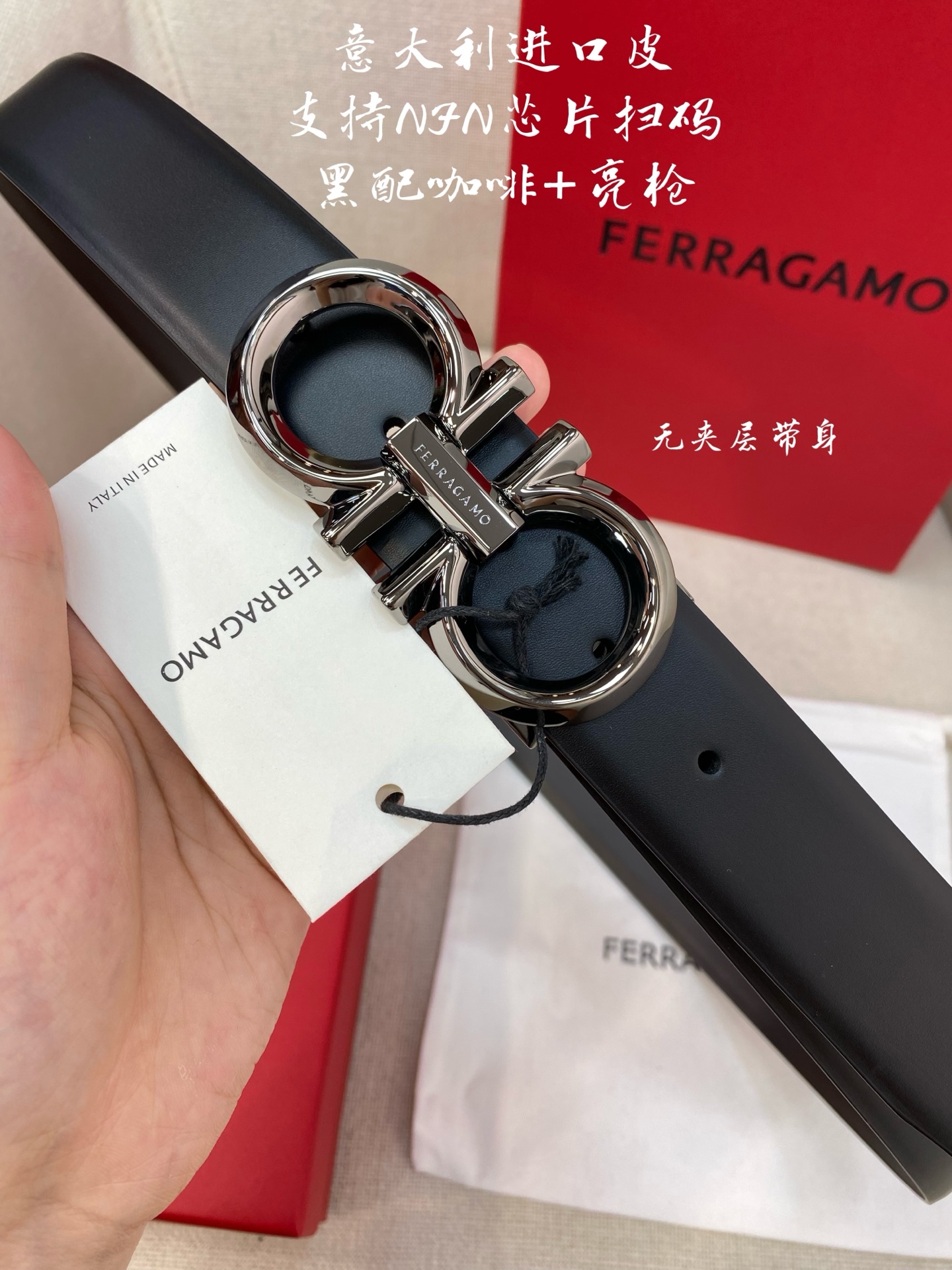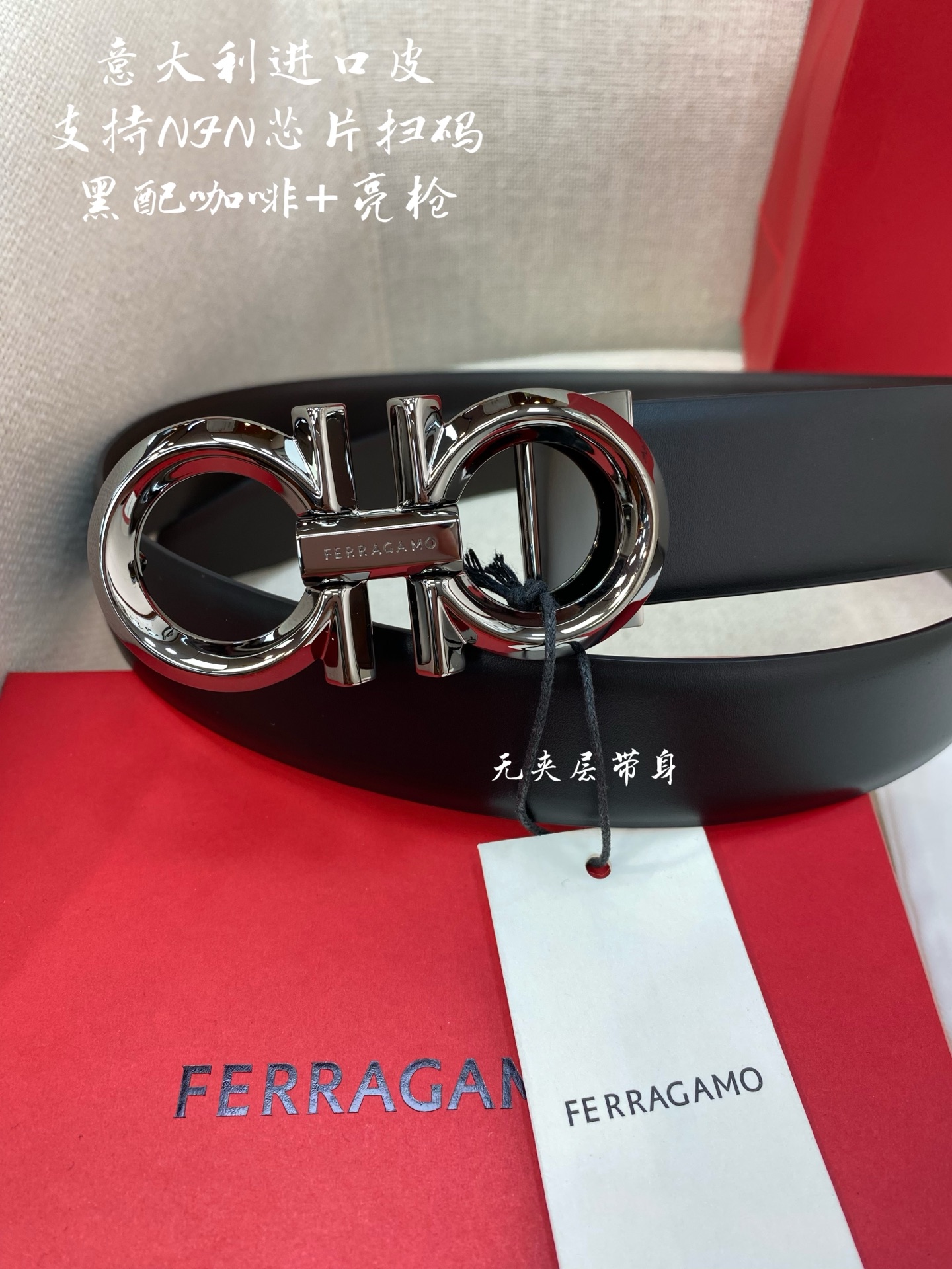 Ferragamo Ferragamo NFC chip scanning code version Genuine size 3.5cm Italian original factory leather