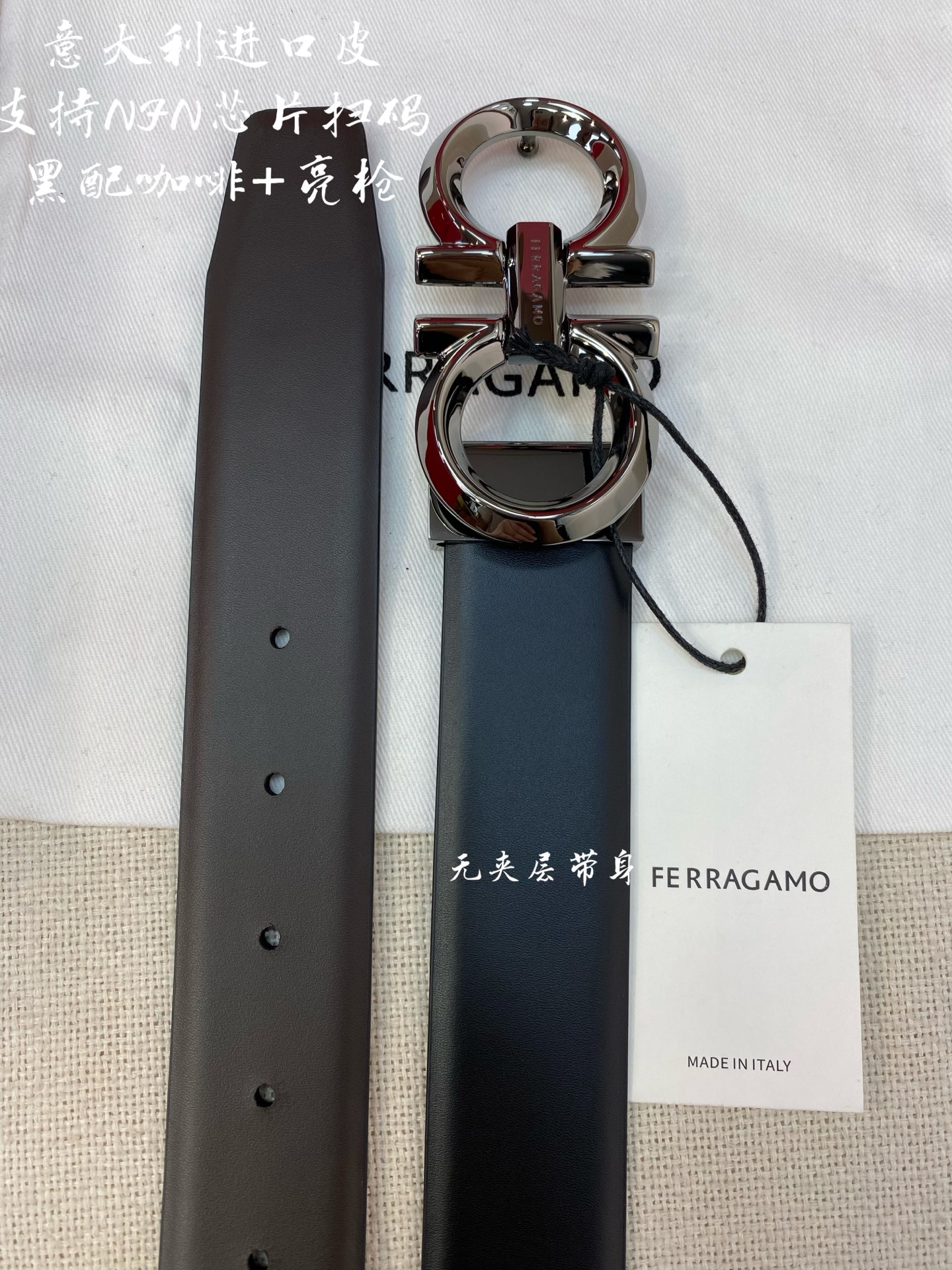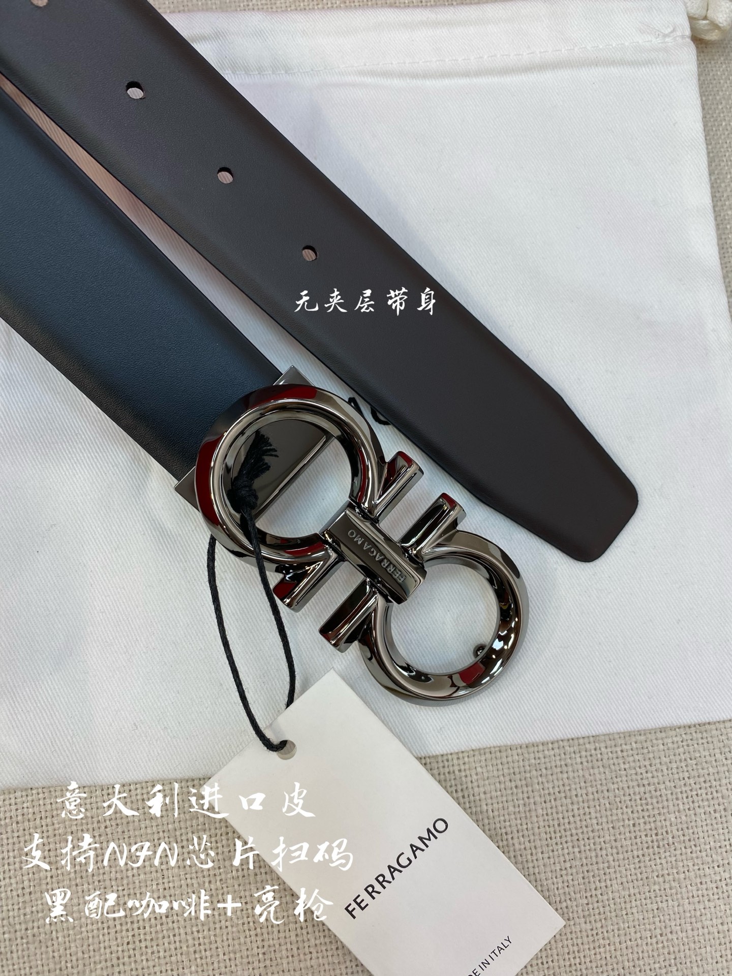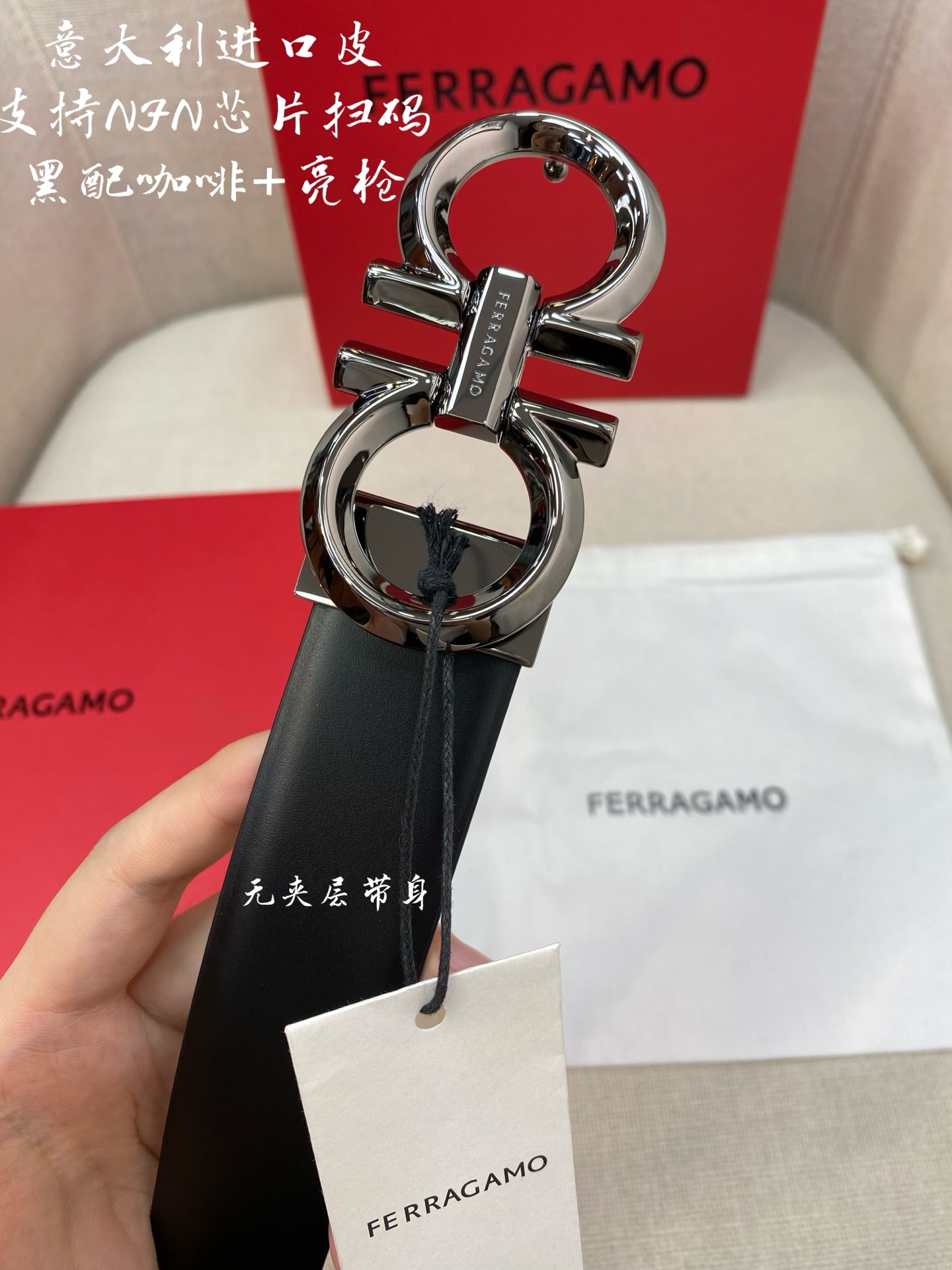 Ferragamo Ferragamo NFC chip scanning code version Genuine size 3.5cm Italian original factory leather