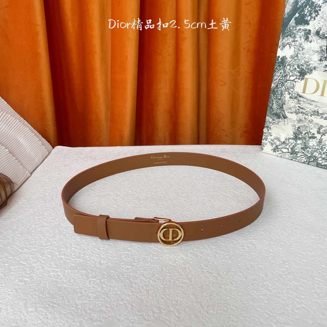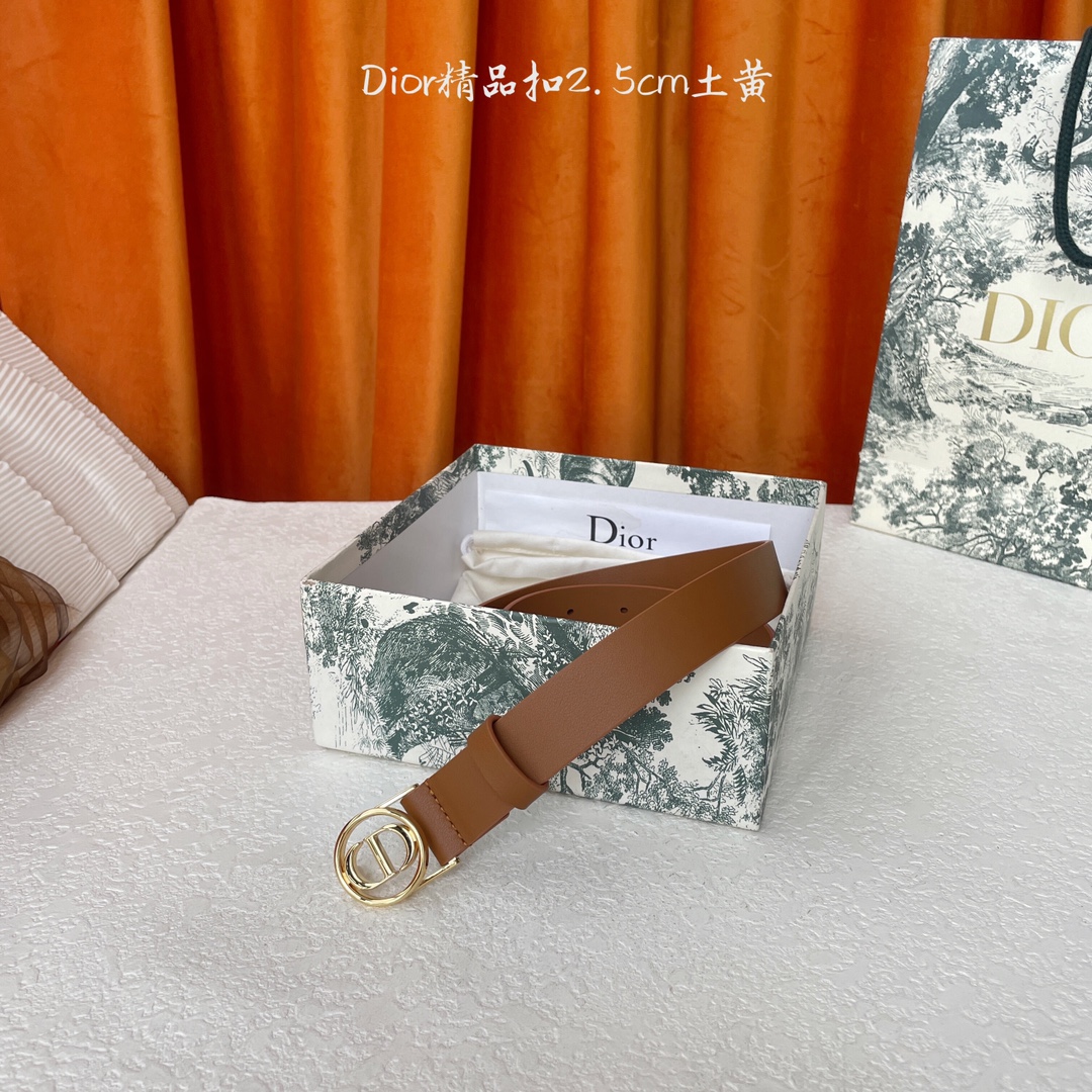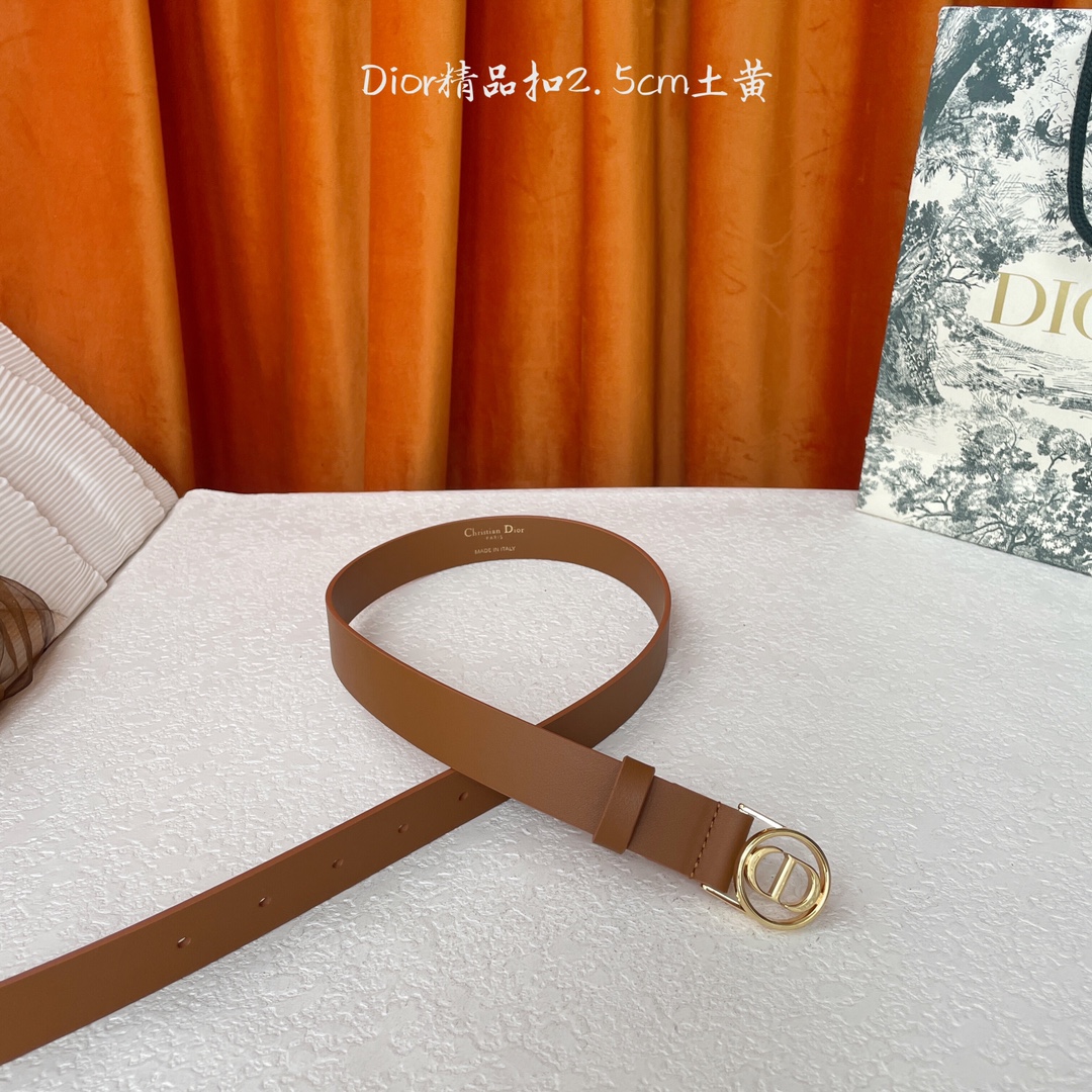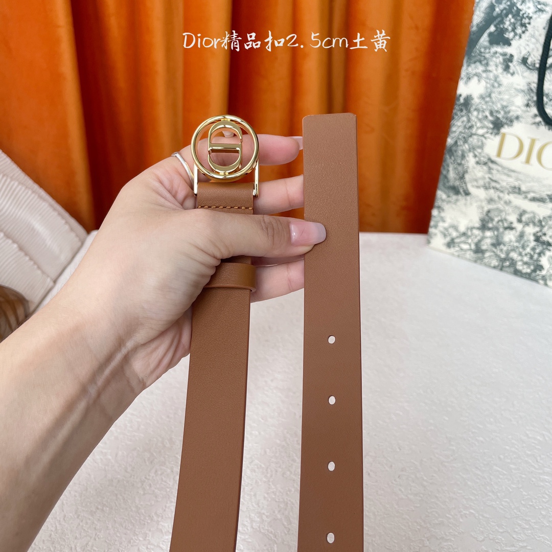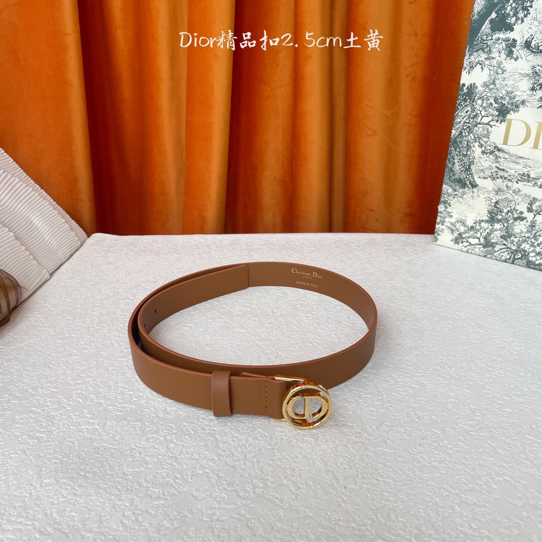 The Dior belt is meticulously crafted from smooth calfskin and other materials, featuring a glossy gold-finished metal CD buckle that enhances its style. It can be paired with classic blazers, dresses, or jeans to showcase a timeless and elegant temperament. Width 2.5cm