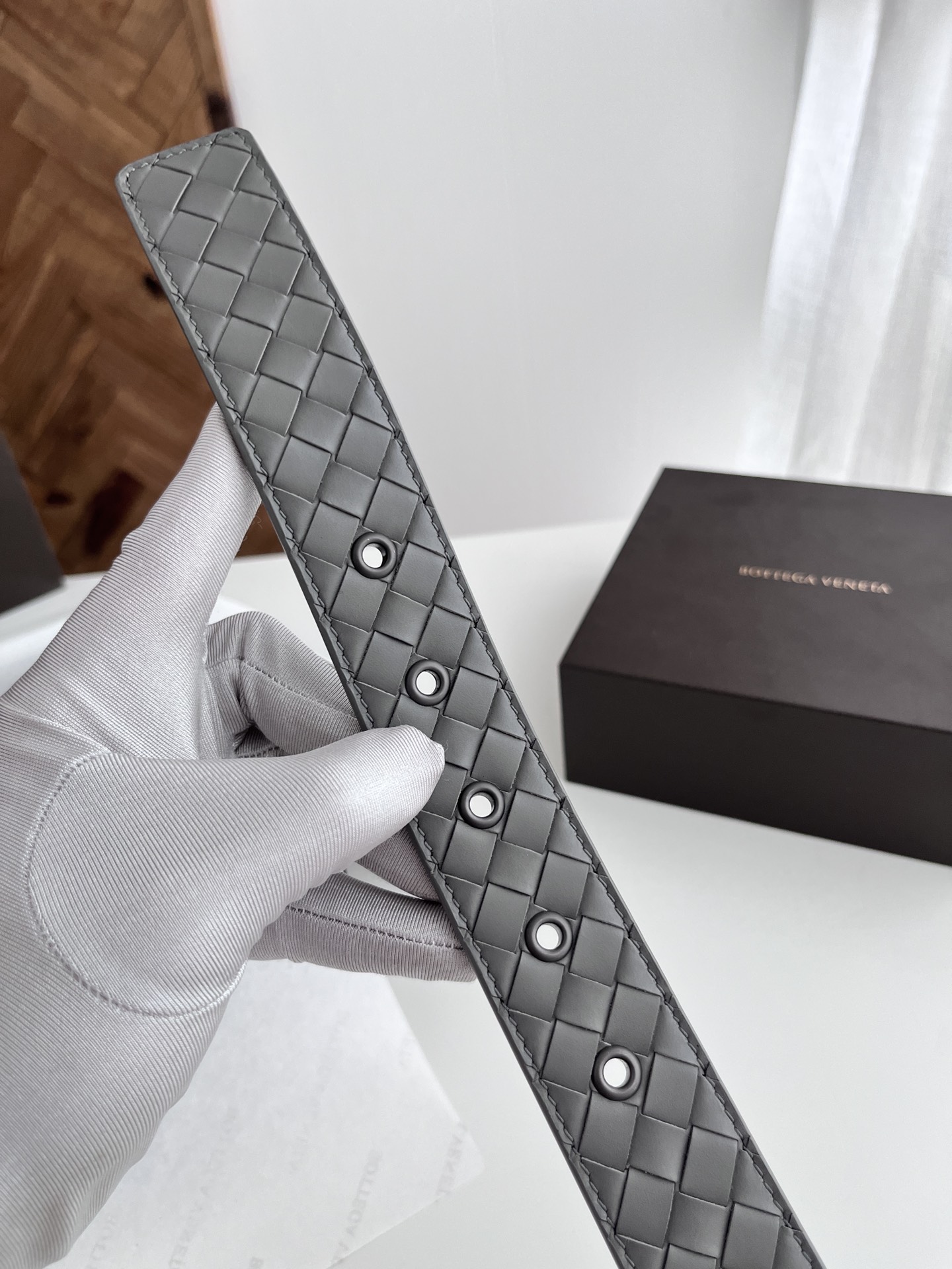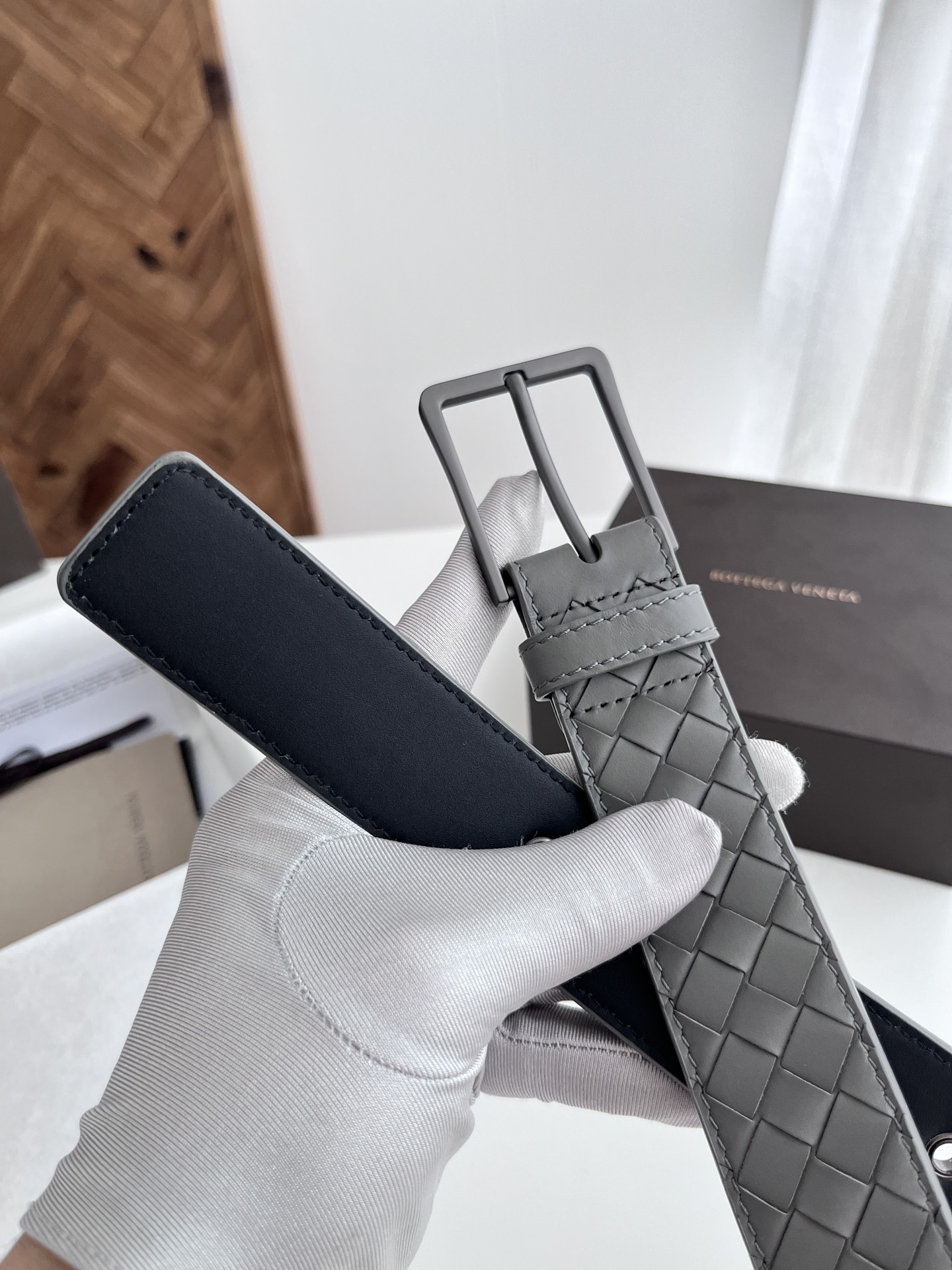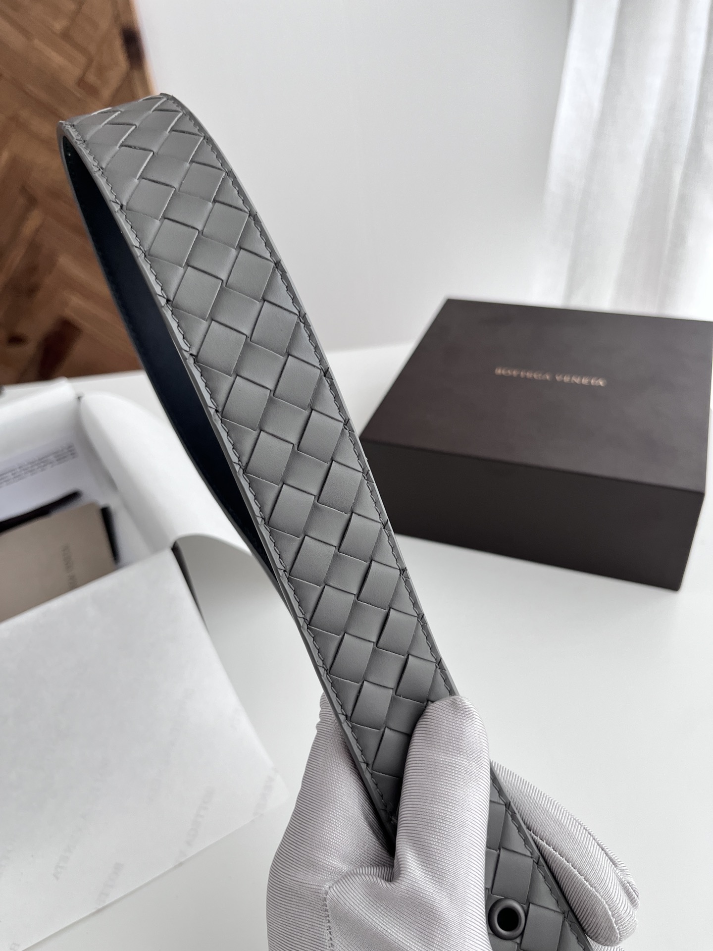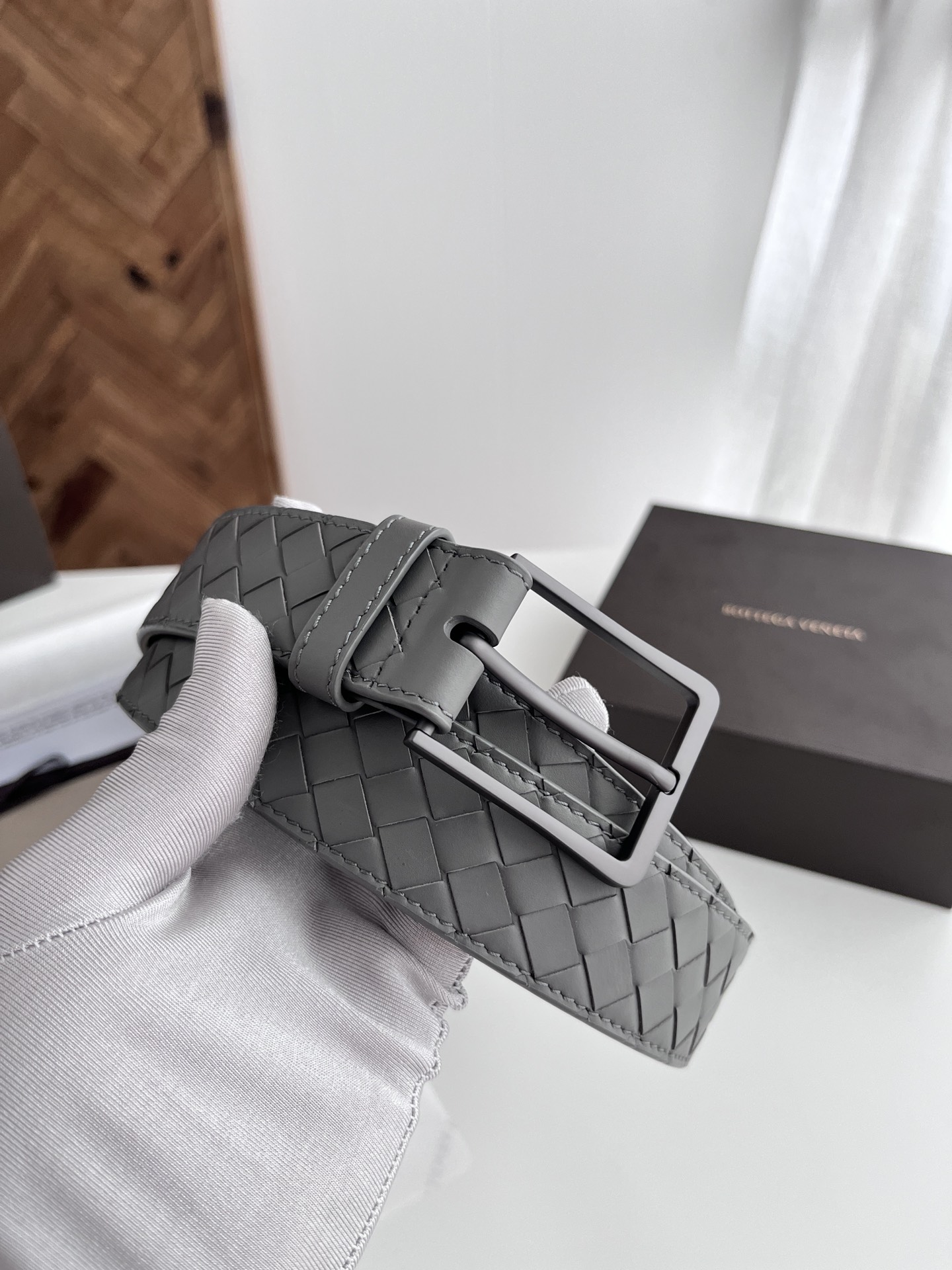 BV 2024 New Men's Belt Pure Handmade Small Check Intrecciato Piccolo Woven Italian Calfskin Paired with Vacuum Gun Metal Pin Buckle Belt Width 3.5cm Color: Gray