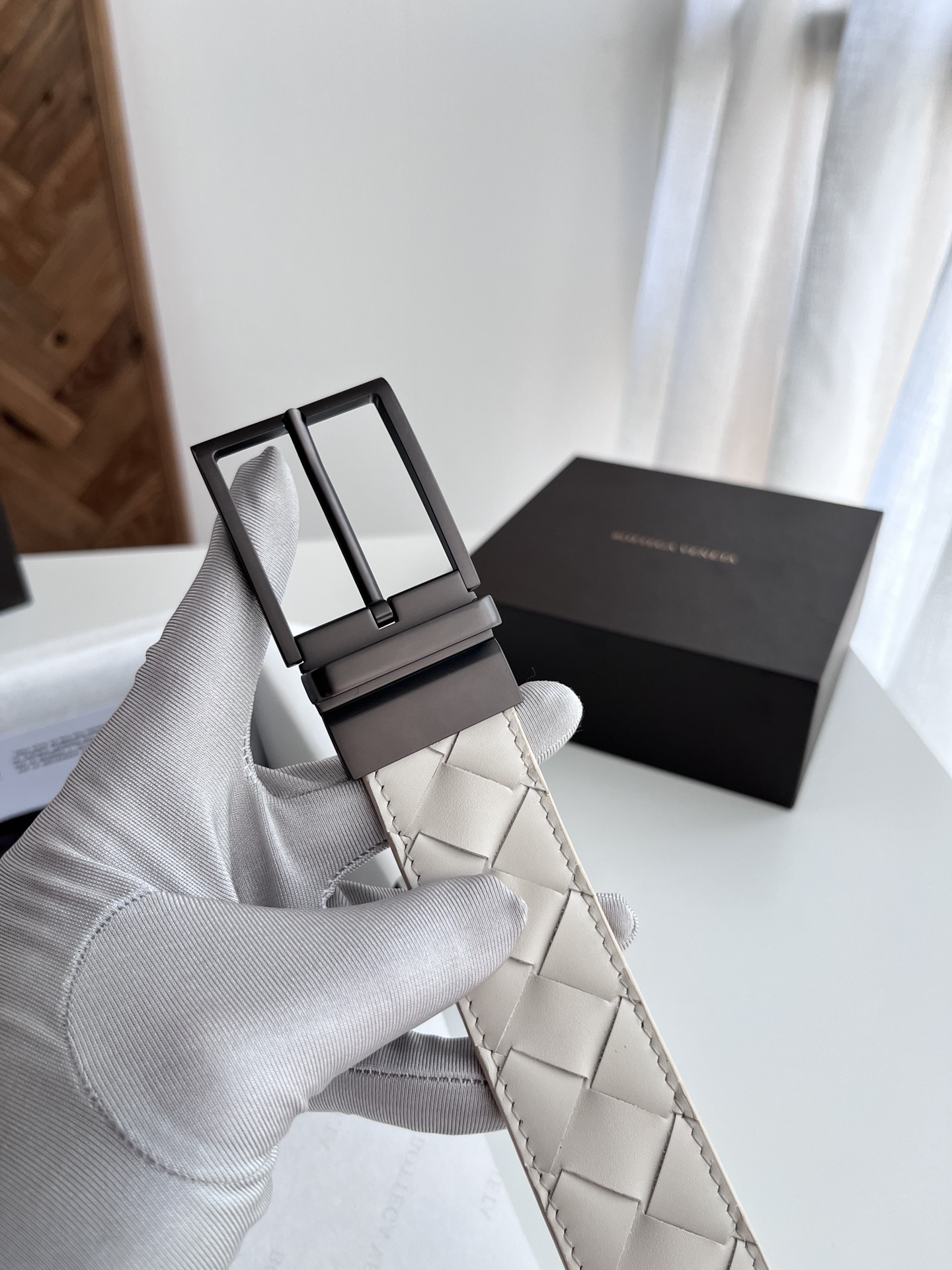 Bv 2024 latest men's woven belt double-sided use pure handmade intreccio large grid weaving double-sided Italian calfskin paired with slightly vintage silver rotatable pin buckle side with logo width 35MM
