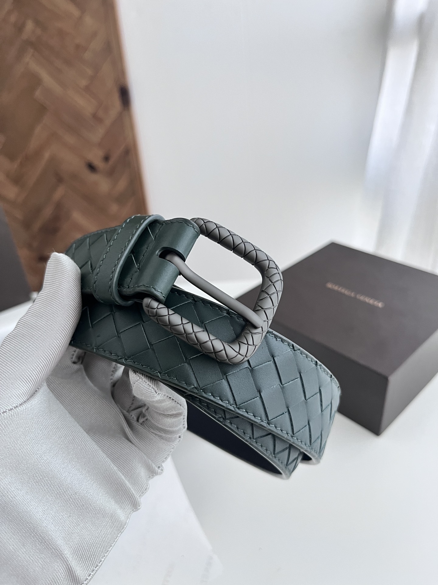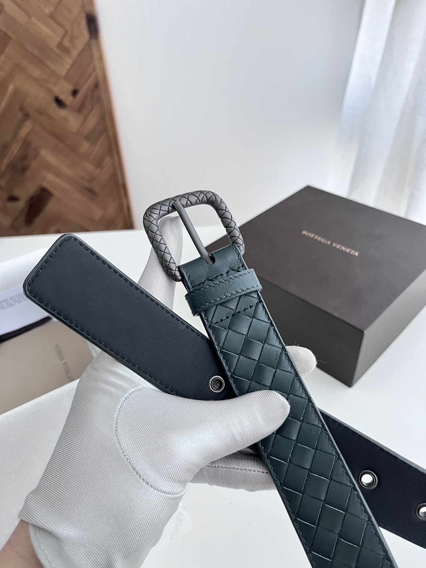 Bv 2024 latest men's woven belt pure handmade intreccio small grid weaving double-sided Italian calfskin with vacuum gun color woven pattern pin buckle width 35MM